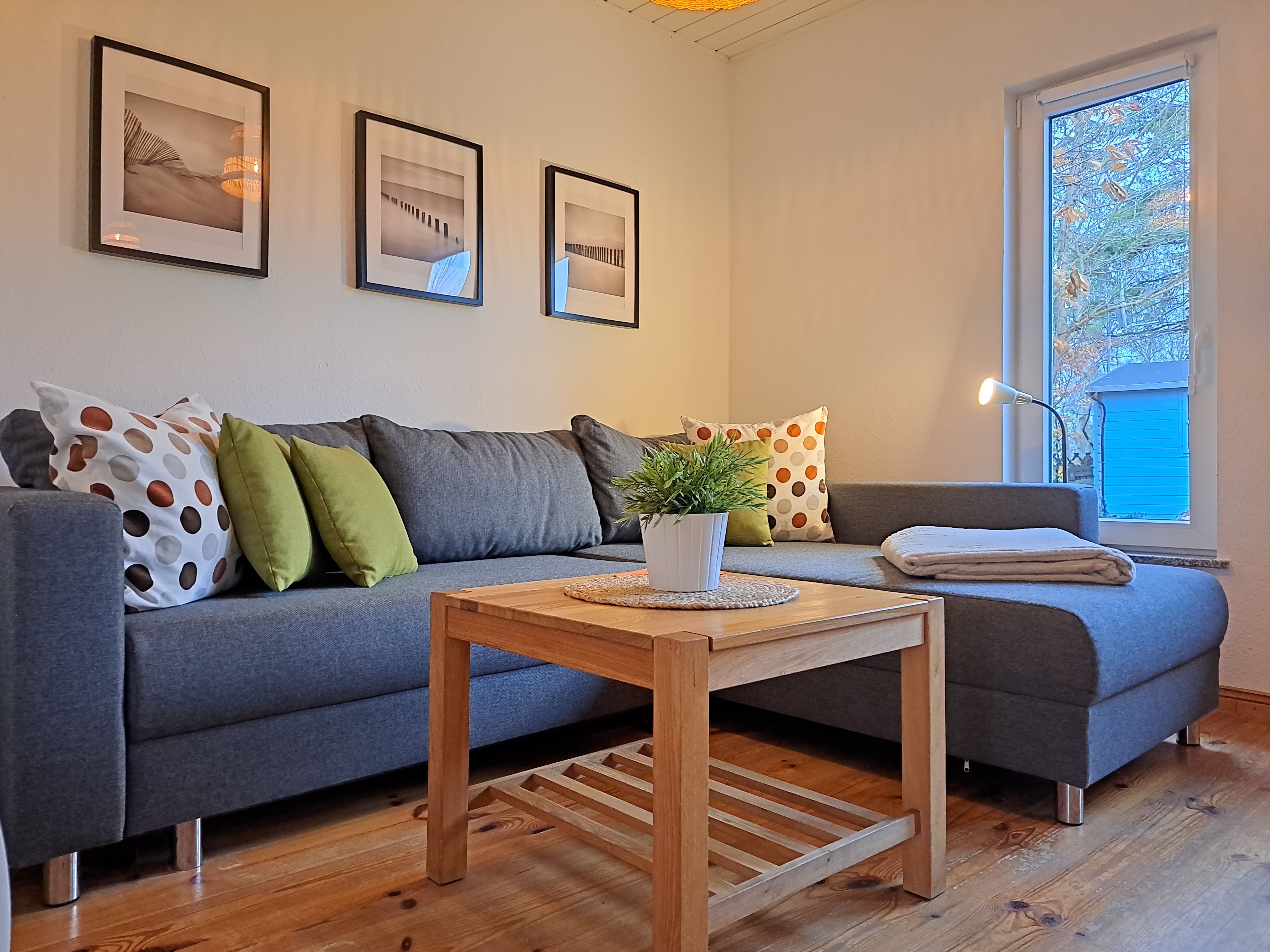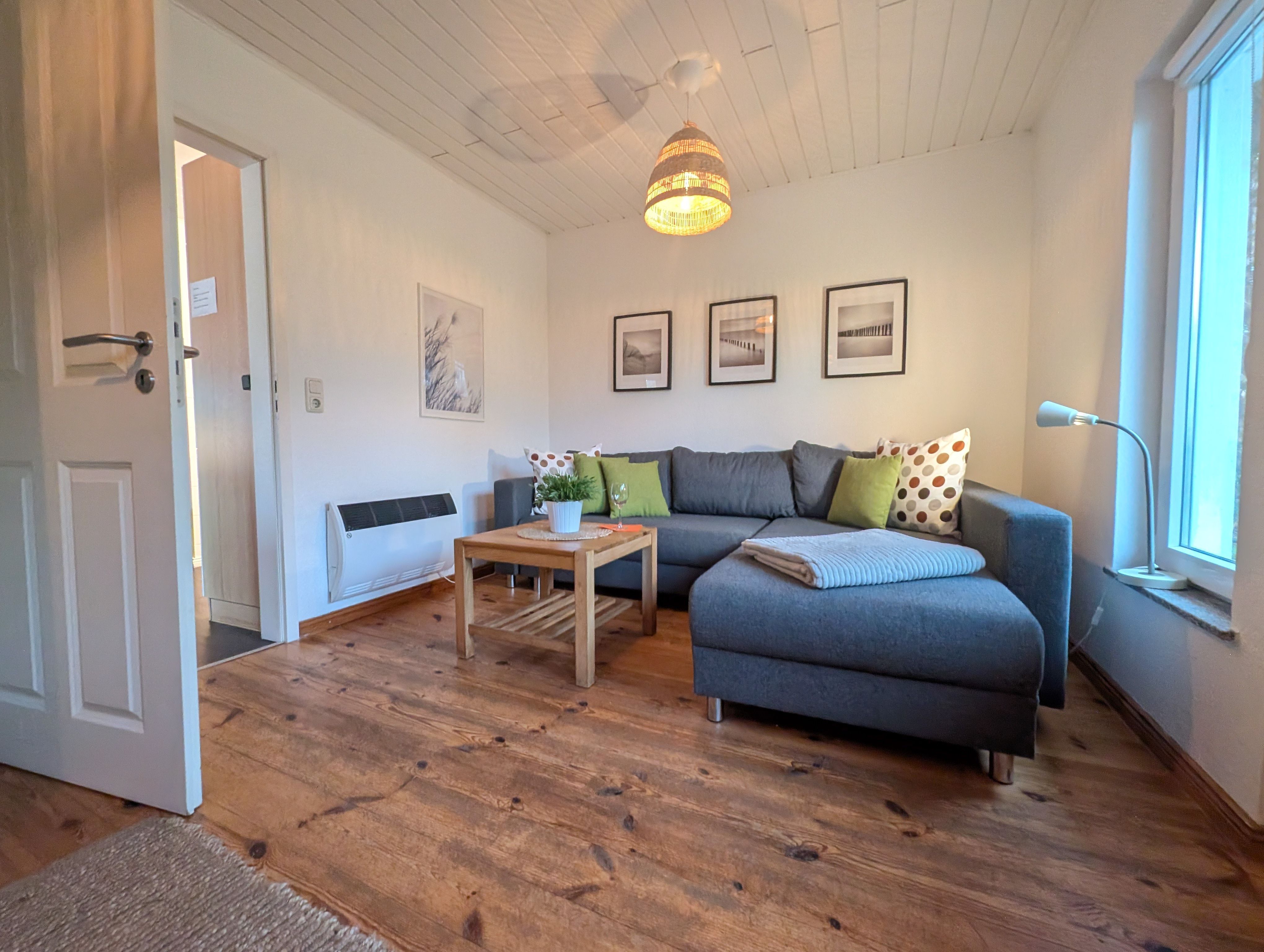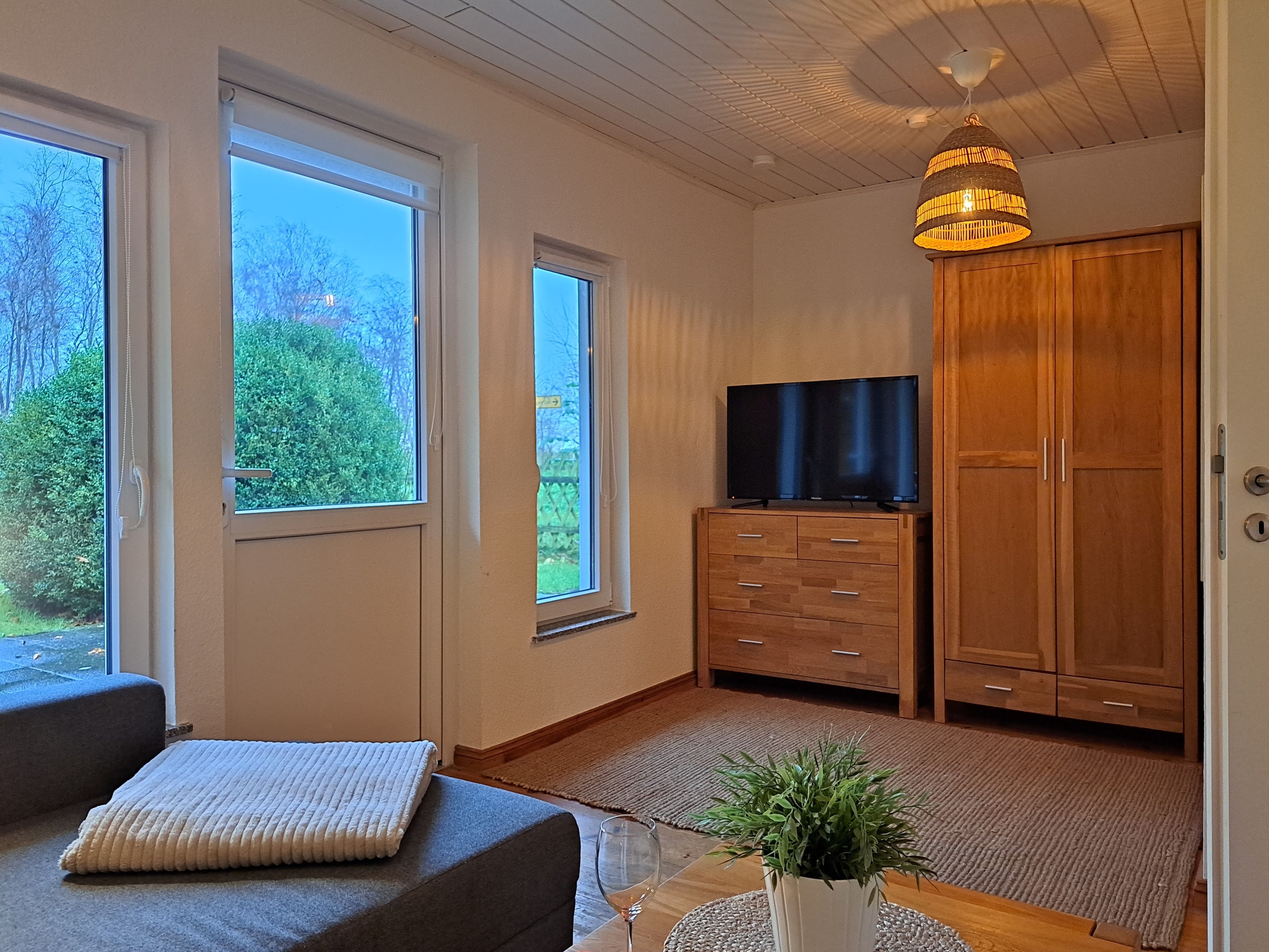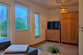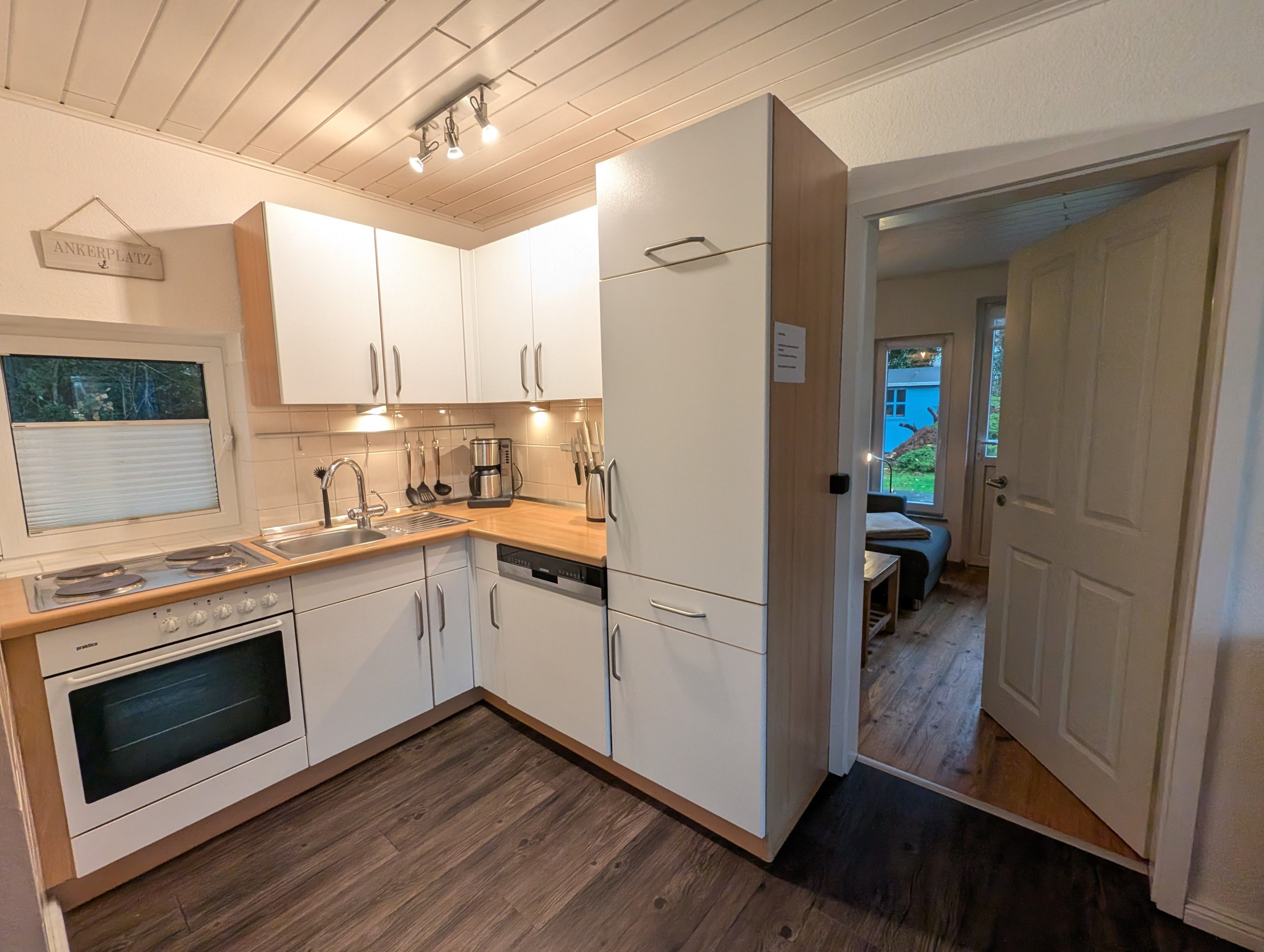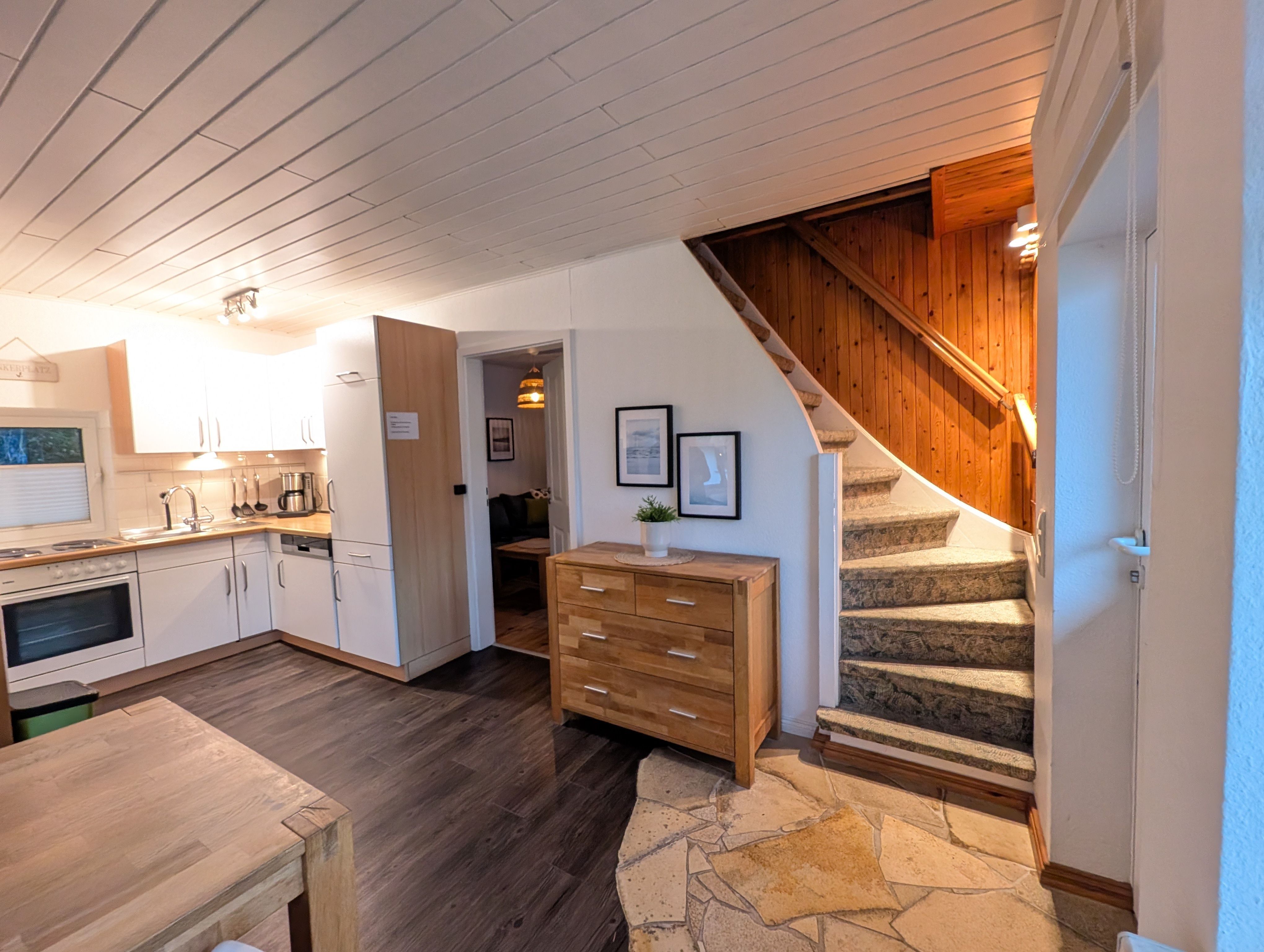 Ausstattung: Bad mit DU/WC: 1, Doppelbett: 1, Schlafsofa: 1, Elektroheizung, Fliegengaze, Küchenzeile, Kühlschrank, Gefrierfach im Kühlschrank, Geschirrspüler, Herd mit Backofen, Toaster, Kaffeemaschine, Wasserkocher, Spüle, TV, Radio, Treppe innen, separater Eingang