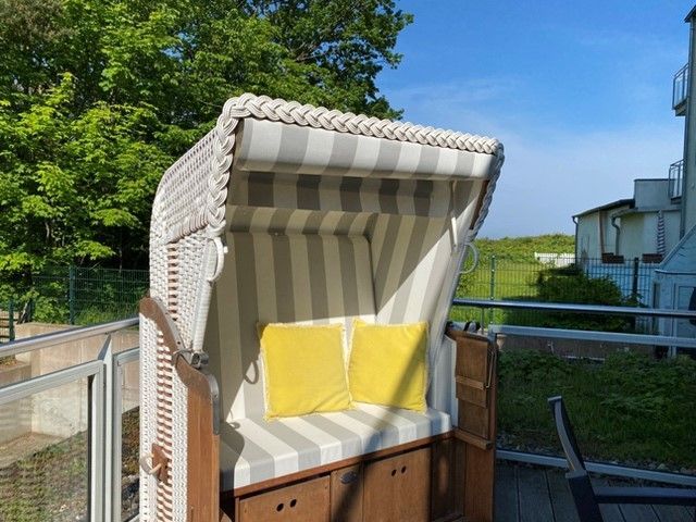 Die Ferienwohnung Traumsegler im Strandhaus Juliusruh, unmittelbar hinter der Düne des Ostseestrandes, überrascht Sie mit einer großen Terrasse und einem extragroßen Strandkorb zum Relaxen. Überdies steht Ihnen ein Elekrogrill für gemütliche Abende bei Speis und Trank auf der Terrasse zur Verfügung.