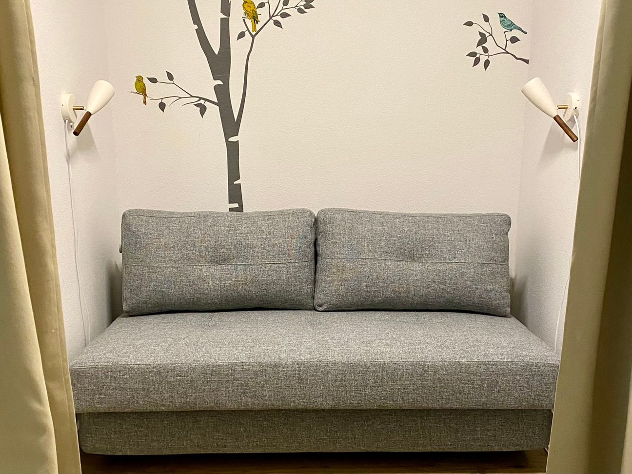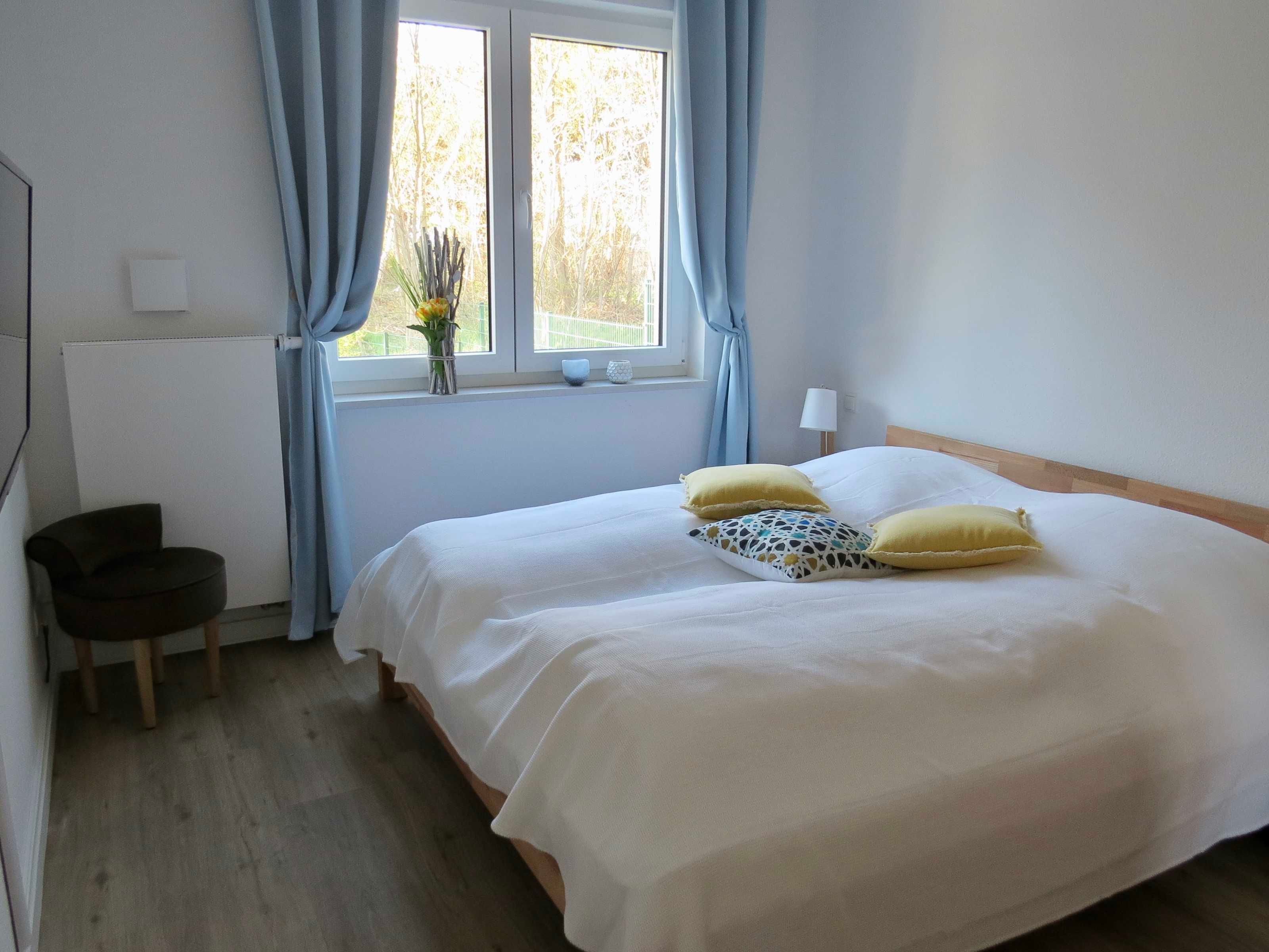 Die Unterkunft besitzt im Schlafzimmer ein komfortables Doppelbett. Obendrein steht Ihnen im Wohnbereich neben der Sitzecke noch eine separate Schlafcouch (160cm x 200cm) zur Verfügung.