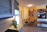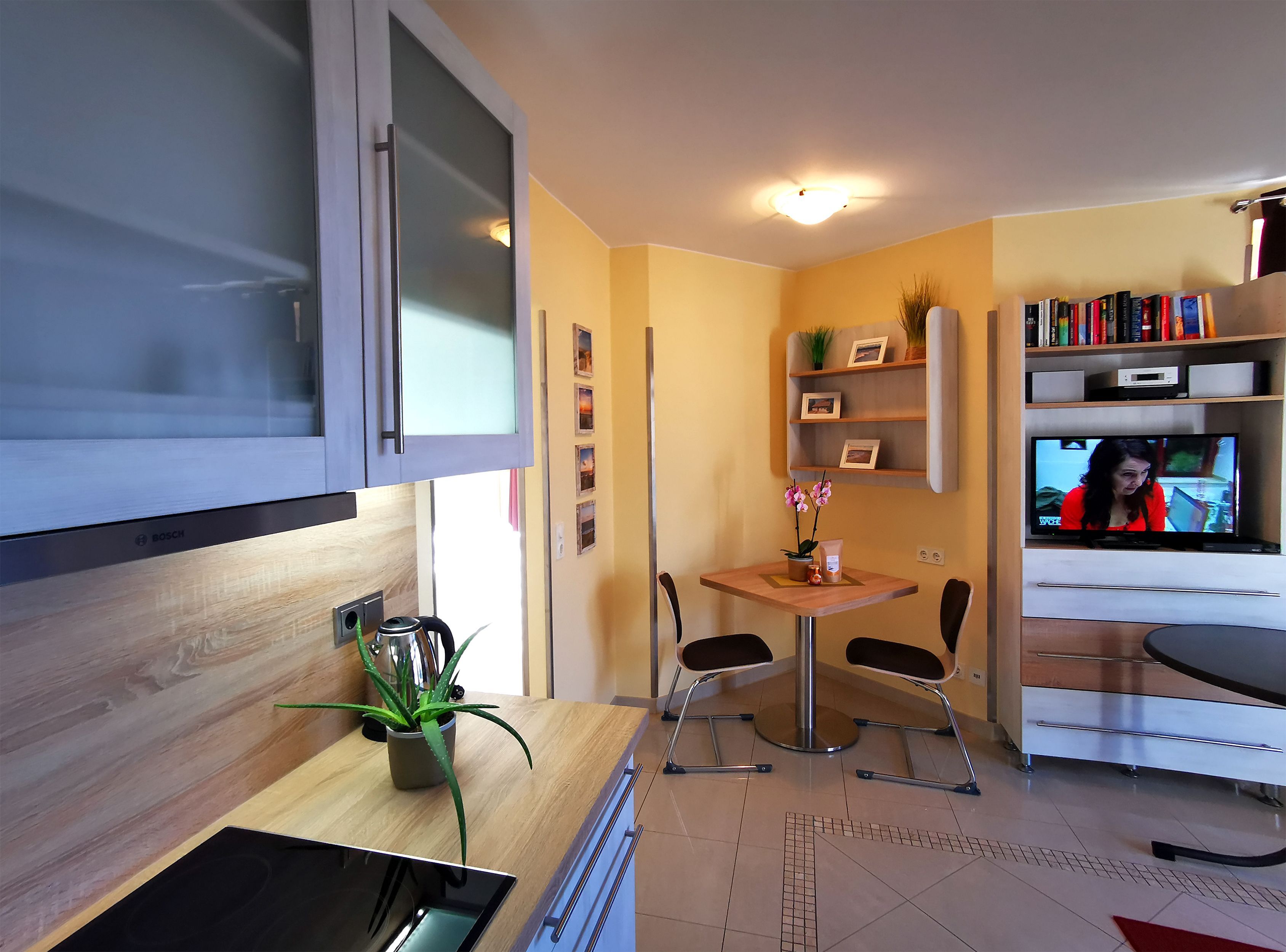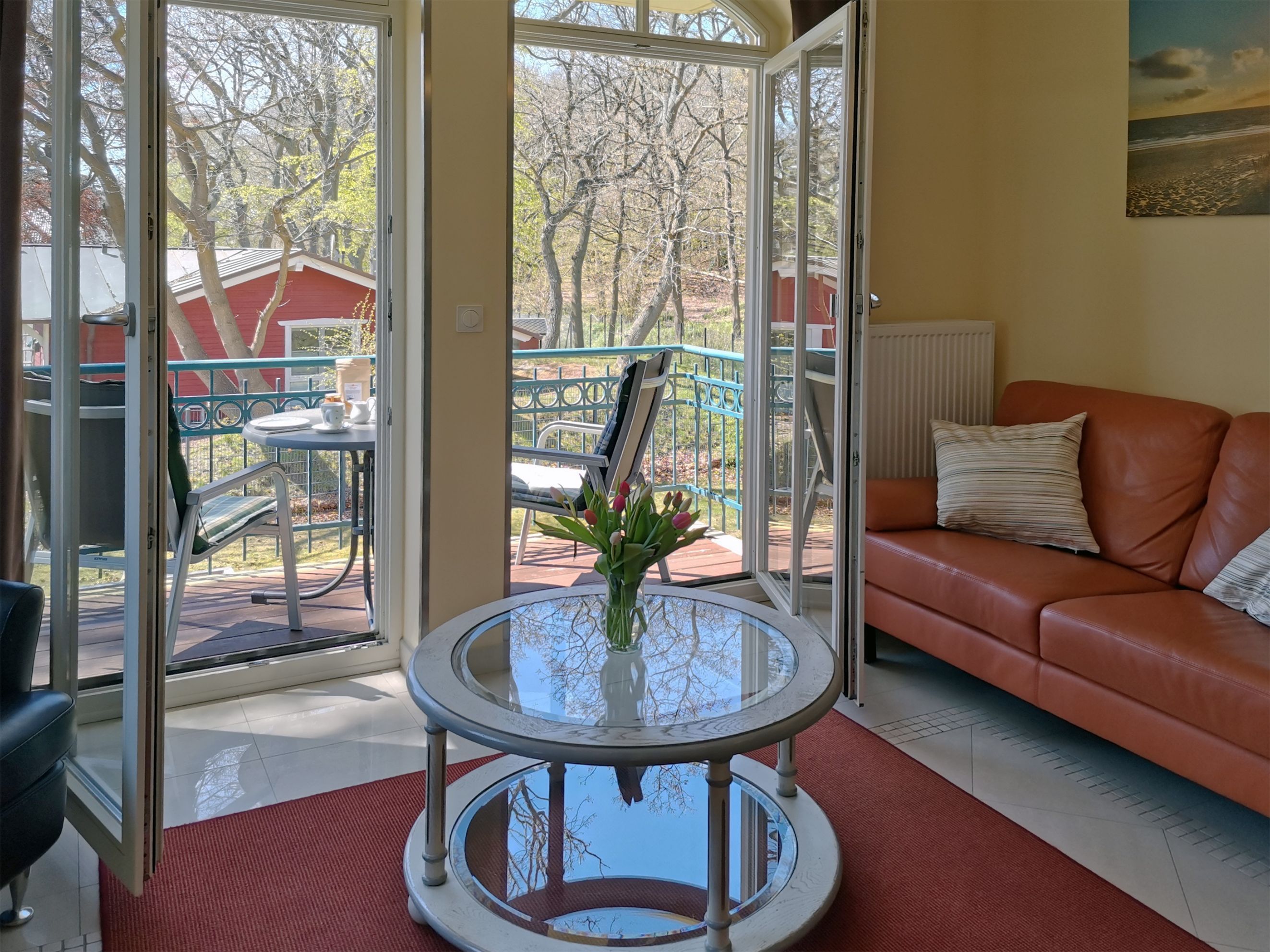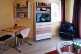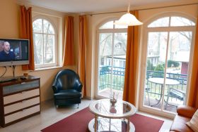 In dieser hellen 2-Zimmer-Ferienwohnung für 2 Personen in traumhafter Lage lässt sich Ihr Urlaub bestens genießen. Das Wohn-/Esszimmer verfügt sowohl über einen Essbereich als auch einen gemütlichen Wohnbereich mit Sofa, Sessel und Fernseher. Eine Minibibliothek, ein DVD-Player und ein Mini-Stereo-System sind ebenfalls vorhanden. Die integrierte Küchenzeile ist modern ausgestattet mit Ceranfeld, Kühlschrank, Geschirrspülmaschine, Mikrowelle, Wasserkocher, Kaffeemaschine und Toaster. Aufgrund der Fensterfront ist dieses Zimmer herrlich hell. In dem Schlafzimmer befindet sich ein Doppelbett und ein großer Kleiderschrank. Genießen Sie das Meeresrauschen auf dem südlich ausgerichteten Balkon.