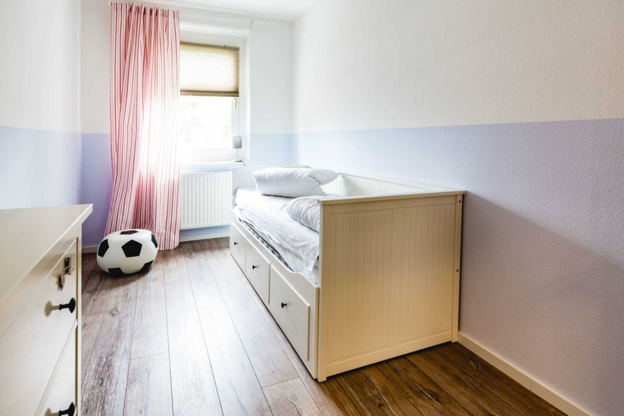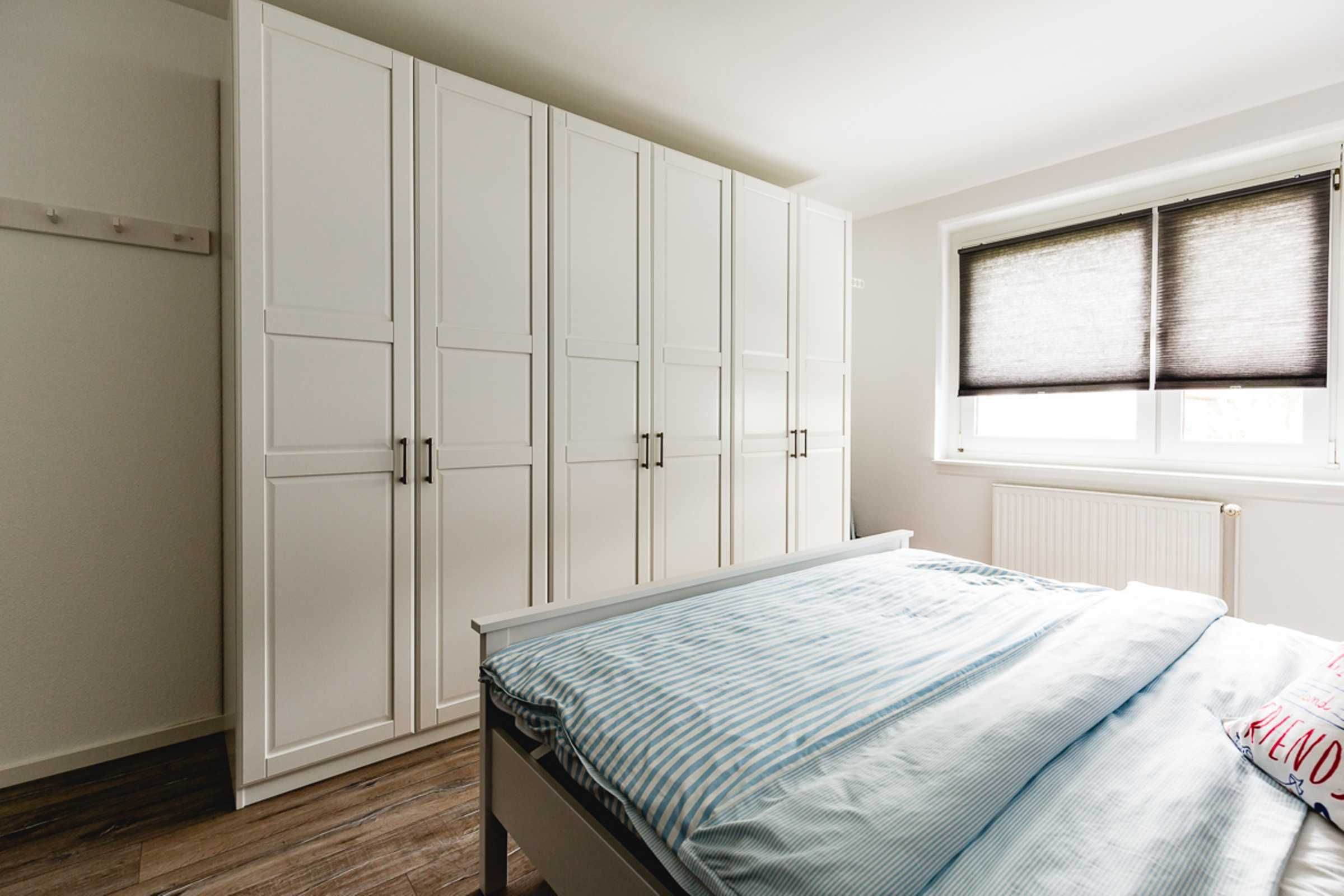 Zwei Schlafzimmer mit bequemen Betten sorgen für erholsamen Schlaf. Große Schränke und Kommoden bieten reichlich Stauraum. Die moderne Einbauküche ist voll ausgestattet und verfügt über eine geräumige Tiefkühlkombination. Eine Waschmaschine und ein Wäscheständer stehen Ihnen auf dem Balkon zur Verfügung. Das helle Bad hat Dusche und WC. Sie haben einen eigenen kostenfreien Parkplatz sowie kostenfreies WLAN.