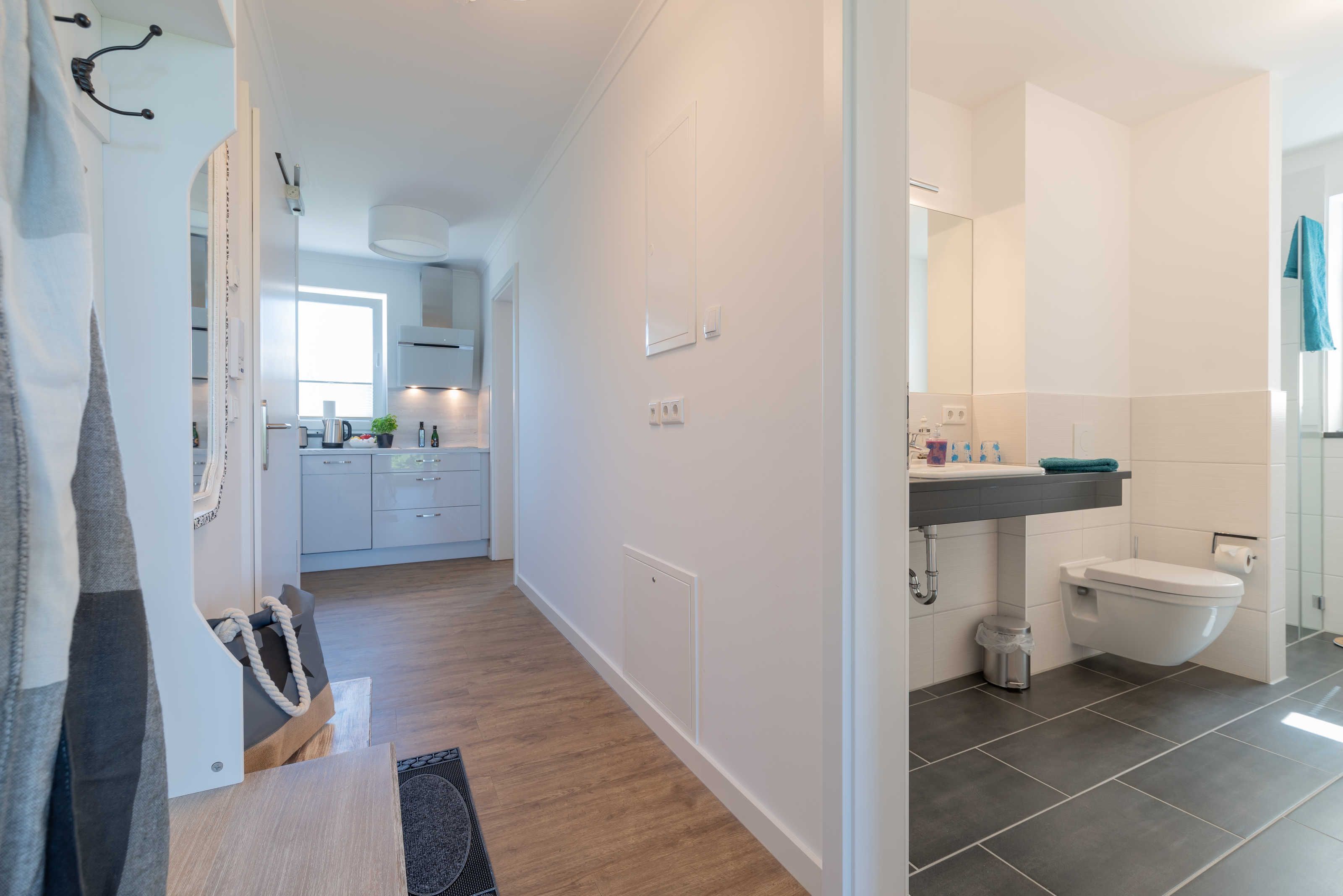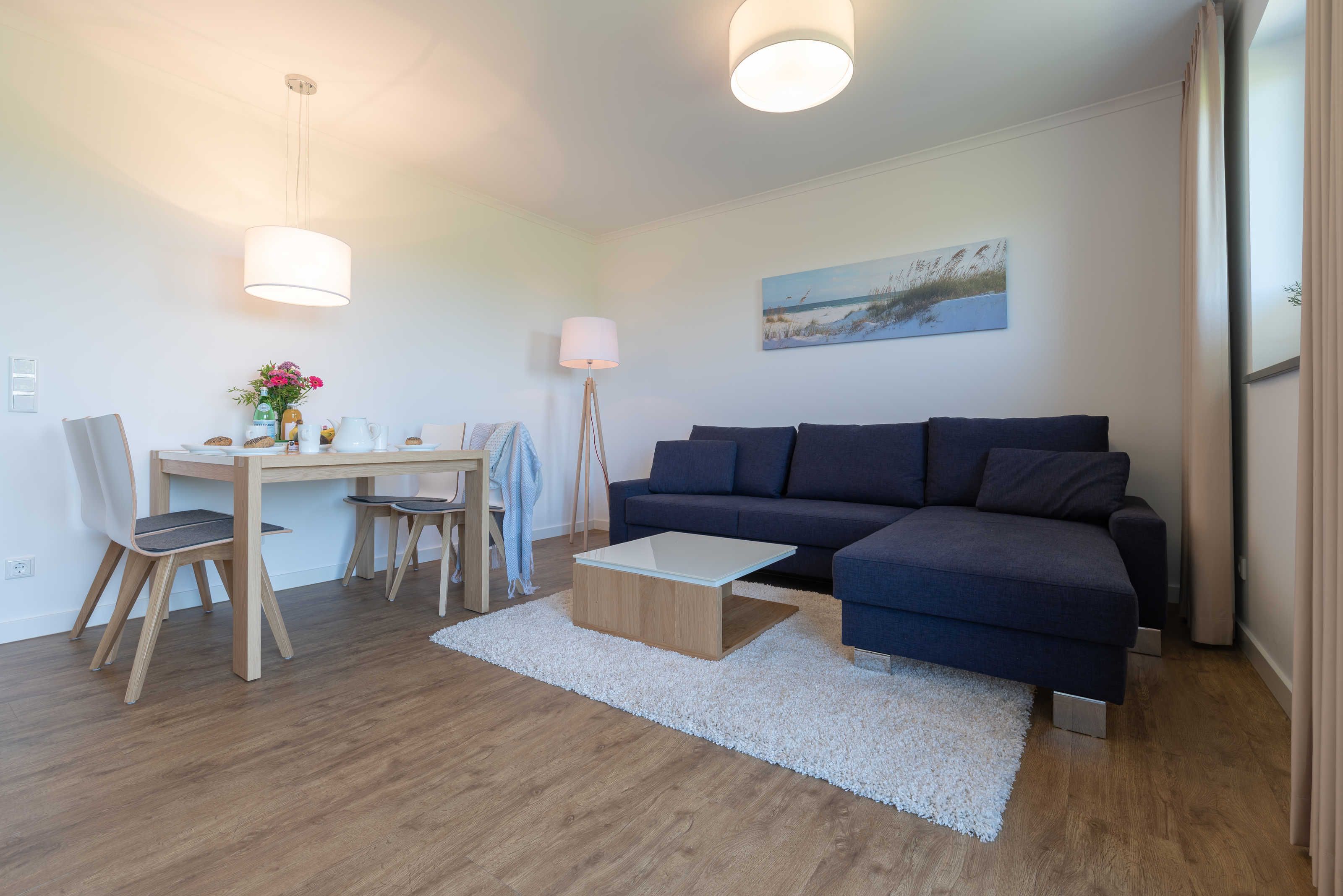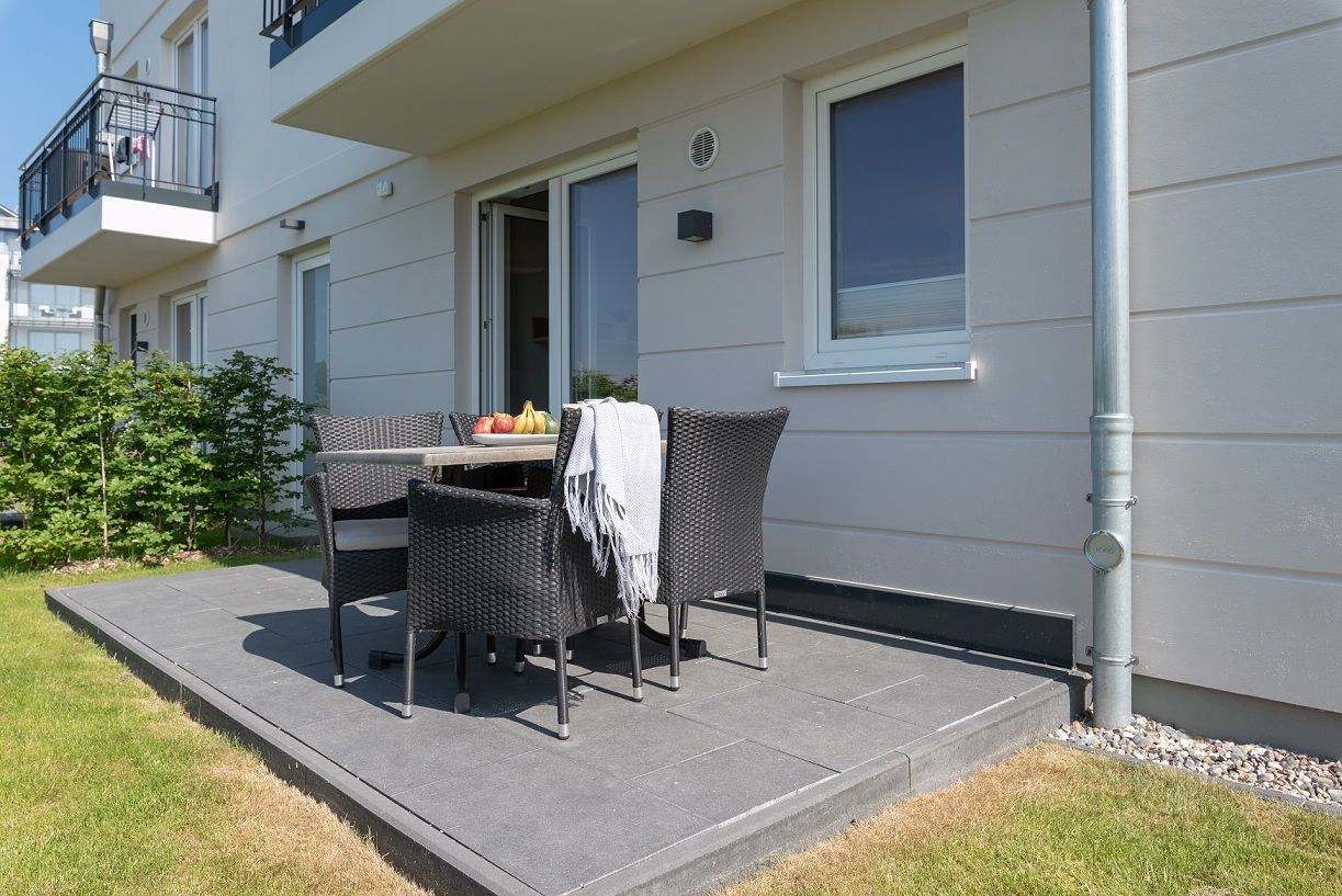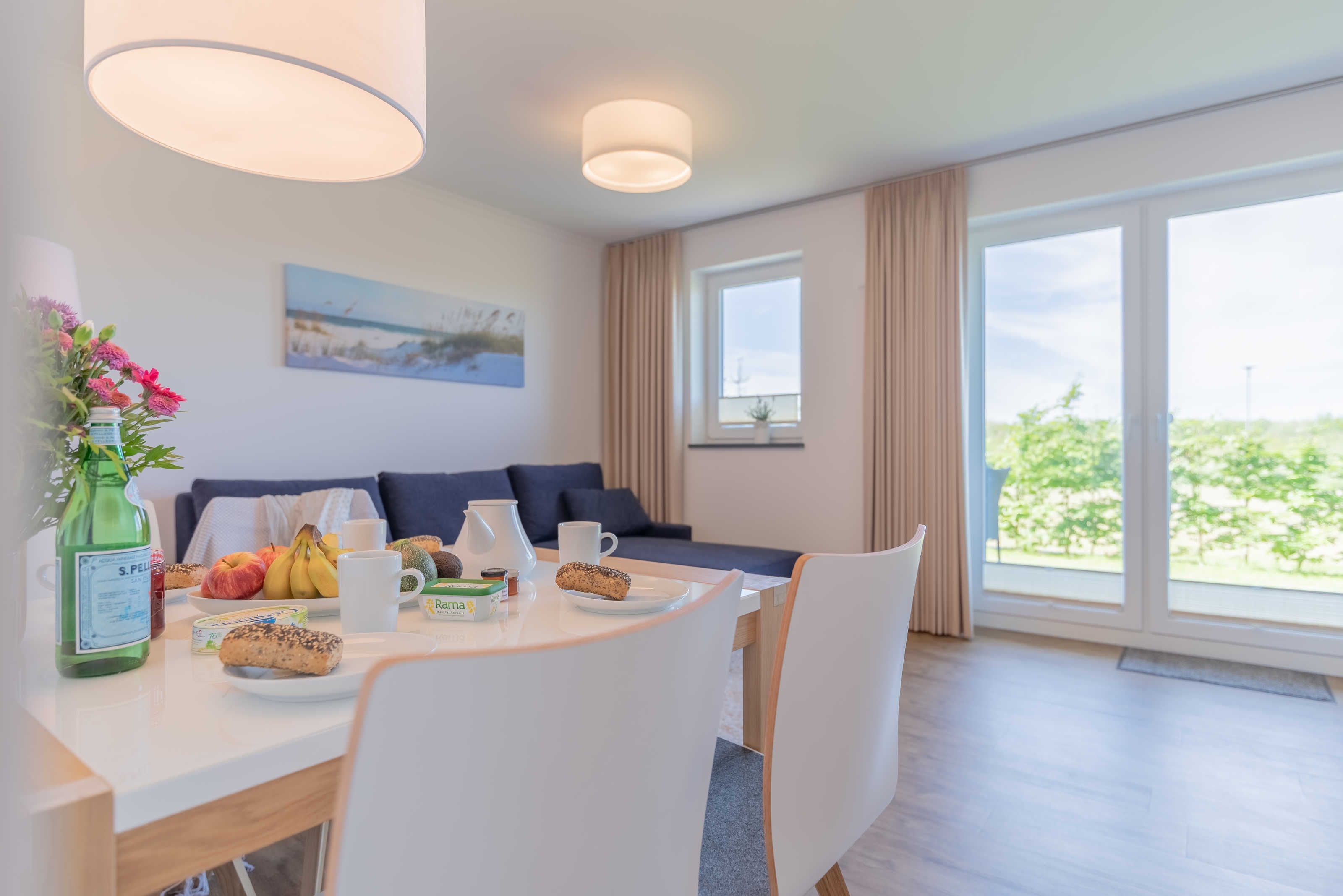 Es erwartet Sie eine Unterkunft mit einem gemütlichen Wohnraum. Hier finden Sie eine bequeme Eckcouch, einen einladenden Essbereich, eine kleine Stereoanlage und einen Flat Screen-TV. Im offenen Kochbereich stehen Ihnen in einer gut ausgestatteten Einbauküche Geschirrspüler, Kühlschrank inklusive Gefrierfach, Mikrowelle mit integriertem Backofen, Kochstelle mit Ceranfeld, Kaffeemaschine, Wasserkocher und Toaster zur Verfügung. Das Schlafzimmer bietet Ihnen ein großes Doppelbett, einen Kleiderschrank mit viel Stauraum und einen Flatscreen-TV. Ein elegantes Duschbad mit einer bodengleichen Dusche, einem großzügigen Waschtisch und Fön findet Sie hier ebenfalls vor. Die Terrasse sorgt mit einem herrlichen Blick auf die Dünen für das entsprechende Urlaubsfeeling unterstützt durch das Meeresrauschen der herrlichen Ostsee. Für erholsame Stunden können Sie hier vier Rattanstühle und einen Tisch zum Lesen und Entspannen nutzen.
