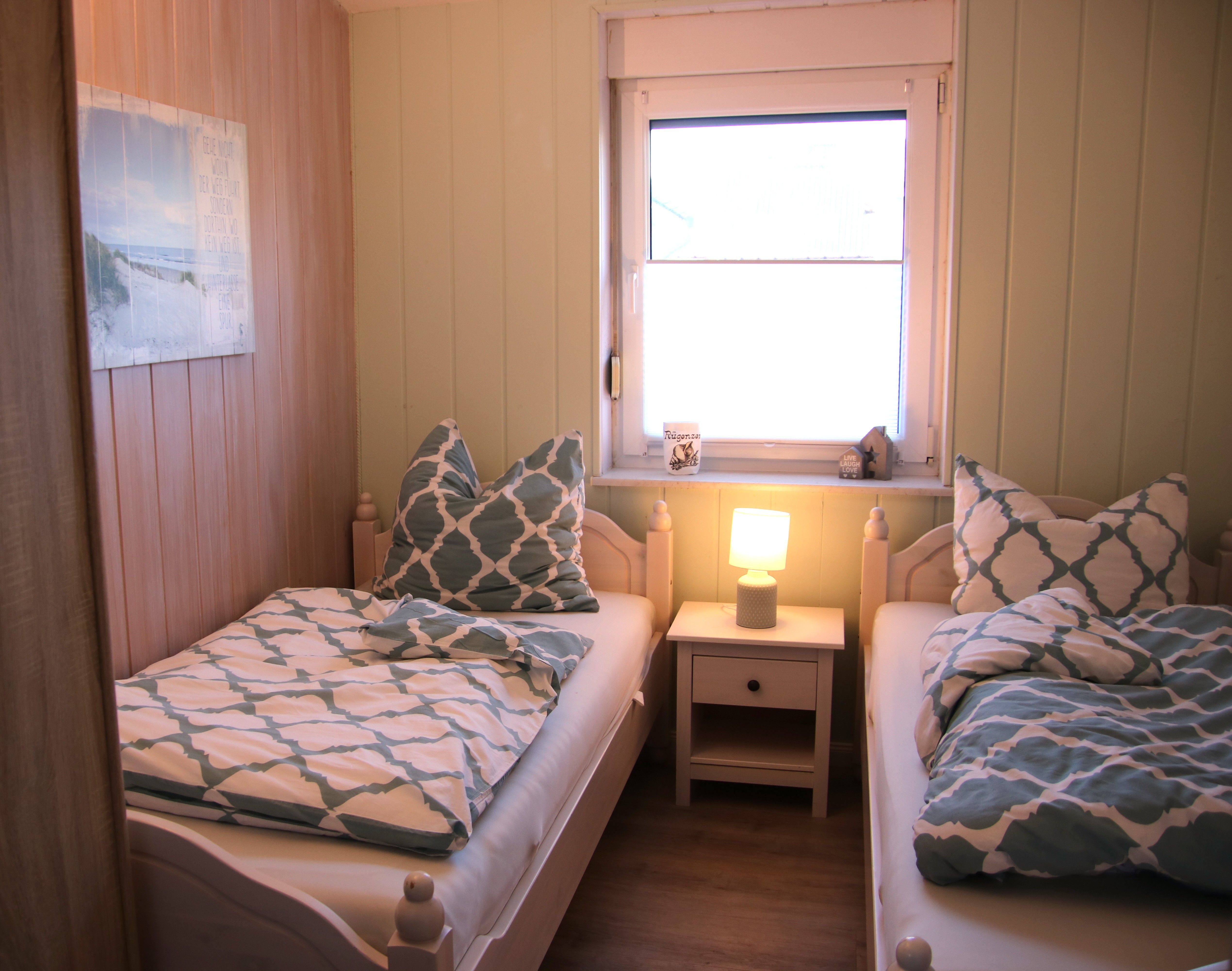 Das separate Schlafzimmer befindet sich direkt nebenan, Fenster mit Insektenschutz.
