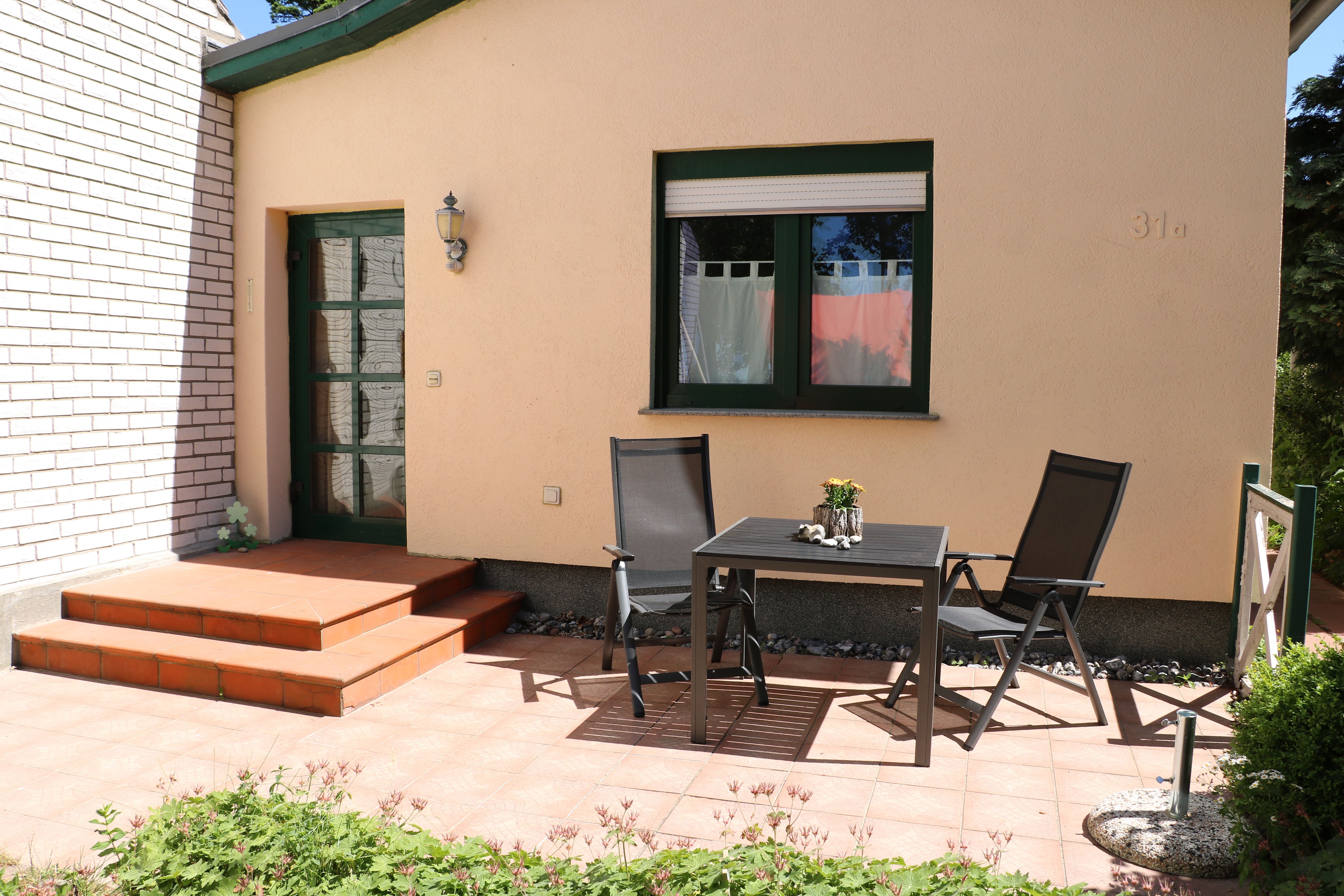 Die zwei Ferienappartements liegen direkt beieinander, angrenzend an den Garten: die 'Wohnung Bodden' mit Blick auf das Wasser und 'Wohnung Garten', direkt dahinter landeinwärts gelegen, jeweils mit eigener Terrasse und Sitzmöglichkeit. Jedes Appartement ist optimal für bis zu 2 Personen, eine dritte Schlafmöglichkeit besteht im Wohnraum durch ausziehbare Schlafcouch.