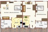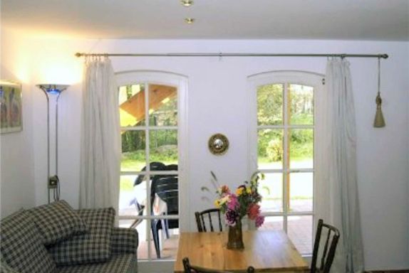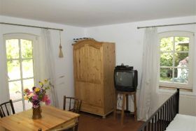 Kleine, gemütlich eingerichtete Ferienwohnung für 2 Personen. Kombinierter Wohn-/Schlafraum mit Doppelbett, kleine separate Küche, Dusche/WC, überdachte Terrasse, WLAN.