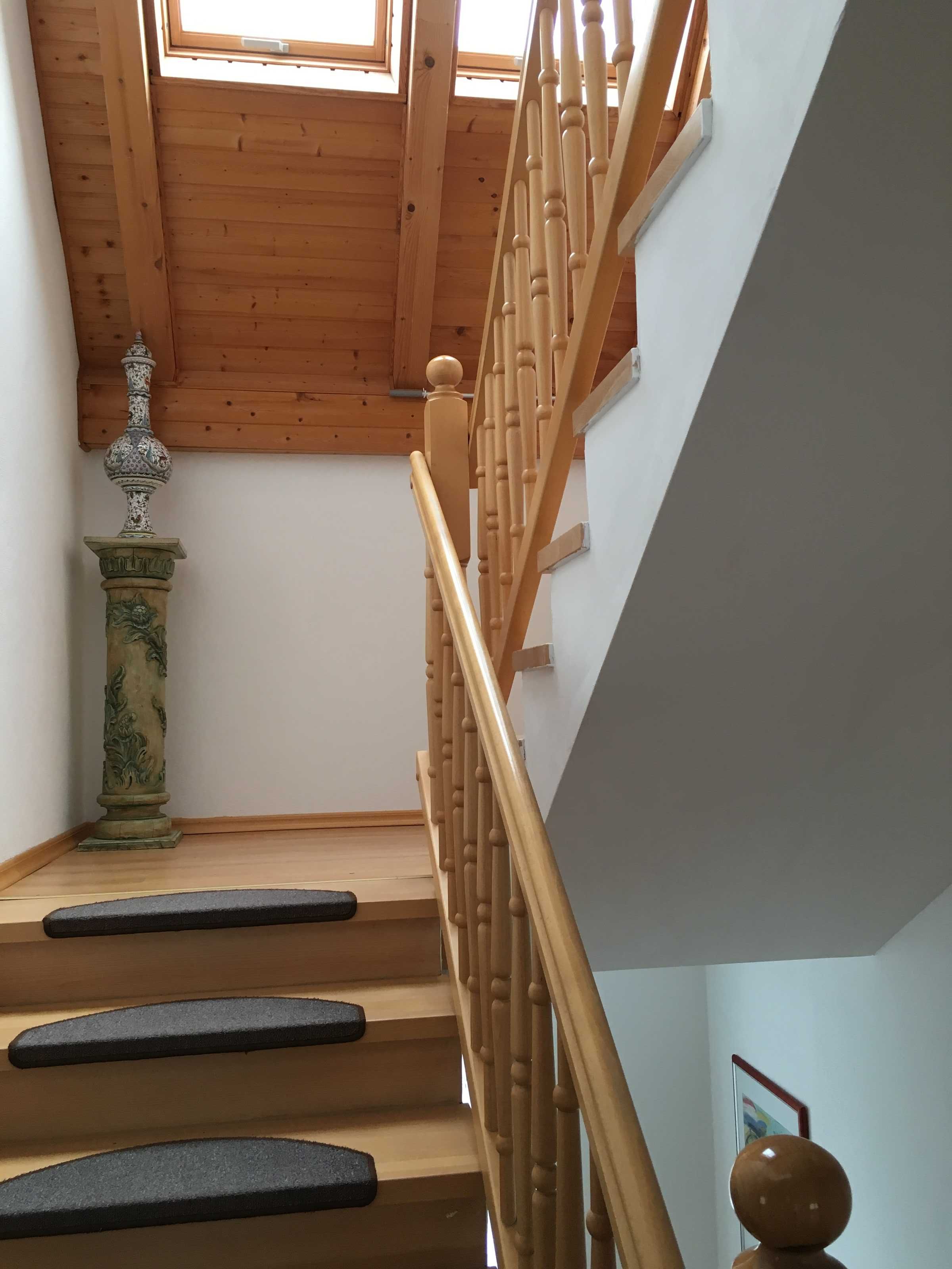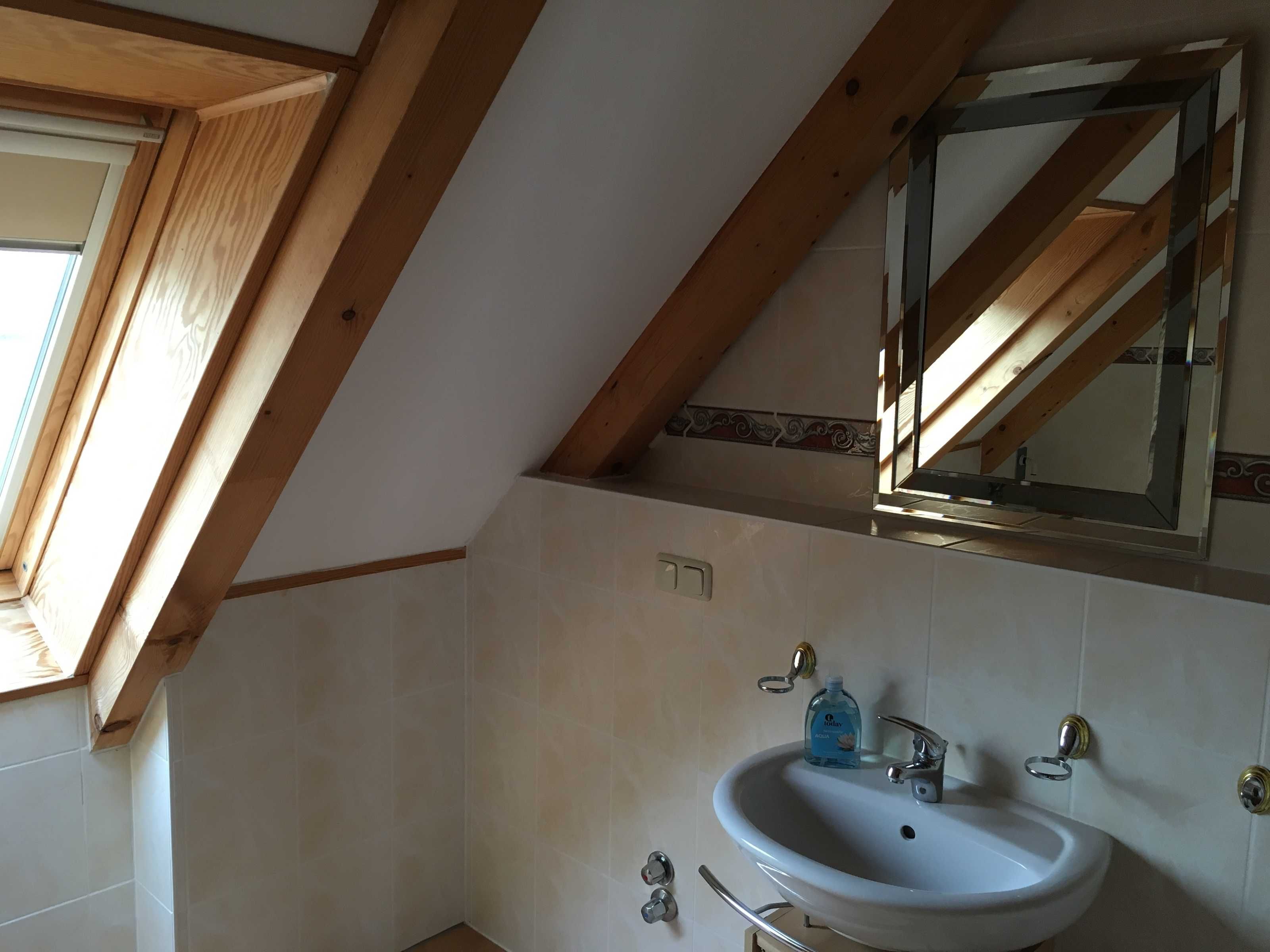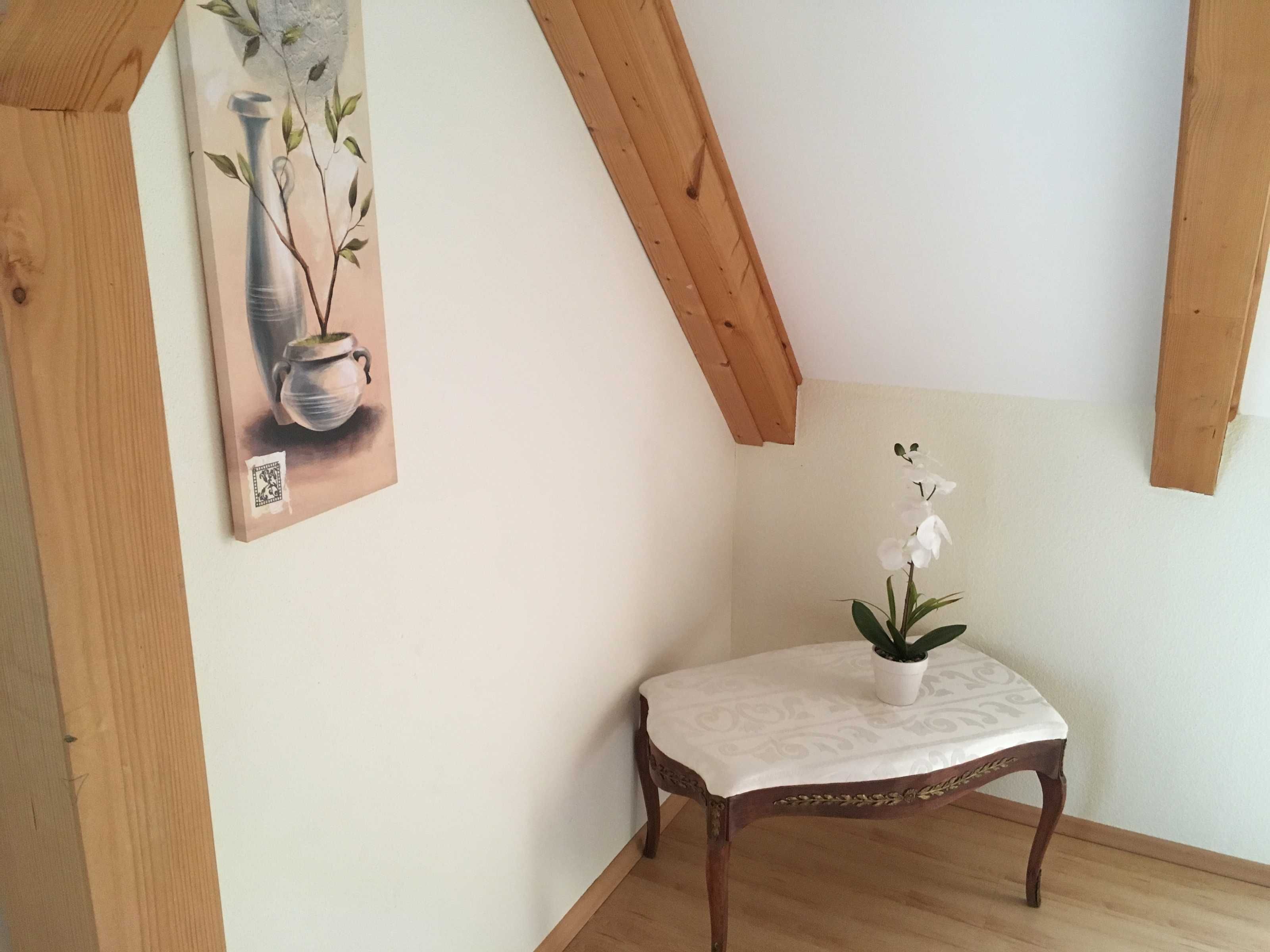Im Erdgeschoss befinden sich ein sehr großes Wohnzimmer mit großem Esstisch, eine komplett ausgestattete Küche mit Essplatz, ein Gäste-WC und ein Duschbad mit Waschmaschine. Der Flur- und Eingangabereich ist großzügig und hell.