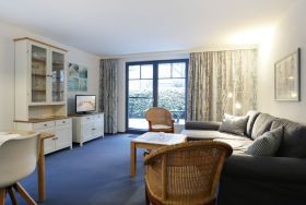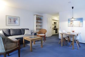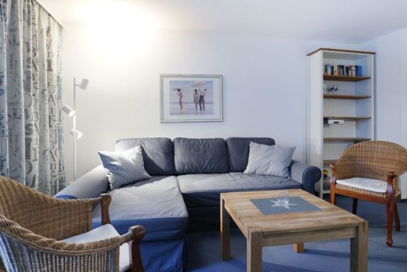 Die gut eingerichtete 2- Zimmer Ferienwohnung Papillon 12-1 besitzt eine Wohnfläche von 55qm und ist auf eine Belegung für bis zu 4 Personen eingerichtet. Der großzügige Wohn-/Essbereich ist mit einem Sofa, das auch als Schlafsofa nutzbar ist, Sessel sowie Esstisch und Schränken möbliert. Zudem sind ein Fernseher, DVD-Player, Musikanlage, kostenfreie WLAN- Nutzung vorhanden. Die saisonal möblierte Süd-Ost Terrasse lädt zum Entspannen ein. In der Wohnküche stehen Herd, Backofen, Mikrowelle, Geschirrspüler sowie Kühlschrank mit integr. Gefrierfach, Kaffeemaschine, Toaster und Wasserkocher bereit. Das separate Schlafzimmer empfängt Sie mit zwei Etagenbetten, Kleiderschrank. Im geräumigen Tageslicht Duschbad, mit Waschtisch, WC, beginnt Ihr Urlaubstag. Gegen Gebühr können Sie im Untergeschoß des Hauses Waschmaschine und Wäschetrockner nutzen. Für Kleinkinder befindet sich ein Hochstuhl im Appartement. Ihren PKW parken Sie kostenfrei auf dem wohnungseigenen Außenstellplatz parken. Bitte beachten Sie, dass es sich um eine Nichtraucherwohnung handelt. Haustiere sind nicht erlaubt. Zur Ostsee gelangen Sie in nur ca. 250 Meter.