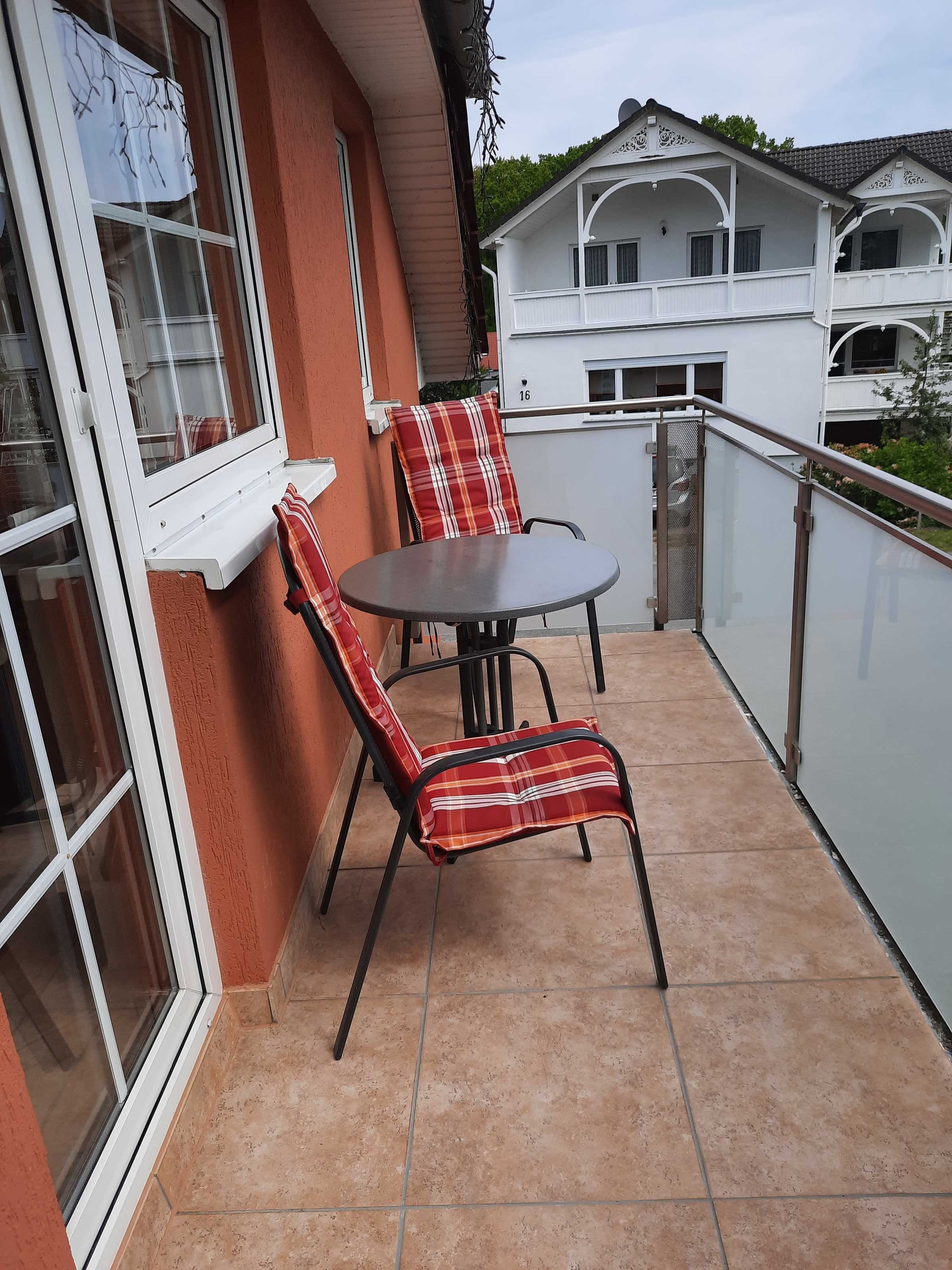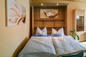 Die gemütliche 2-Raumwohnung Nr. 13 befindet sich im Erdgeschoss des Hauses mit möblierter Terrasse und einem eigenen Garten zur Nutzung. Beim Betreten der Nichtraucherwohnung gelangen Sie in einen Flur mit kompletter Garderobe und großem Wandspiegel. Von hier aus erreichen Sie den Wohnbereich mit Zugang zur Südterrasse, das Schlafzimmer, das Tageslichtbad sowie die separate Küche mit zusätzlichem Abstellraum. Das Wohnzimmer ist mit einer Sitzecke, einem komfortablen Schrankbett, welches die Schlafmöglichkeit für 2 weitere Personen bietet, Smart Flachbild-TV, WLAN und Radio ausgestattet. Im Schlafbereich befindet sich ein Doppelbett, Kleiderschrank, eine Kommode sowie ein zusätzlicher Flachbild-TV. In der separaten Küche mit komplett ausgestatteter Küchenzeile u.a. mit Geschirrspüler, Backofen, Cerankochfeld, Kühlschrank mit Gefrierschrank und weiteren Küchenhelfern befindet sich der Essbereich, welcher ausreichend Platz für 4 Personen für das gemeinsame Essen bietet. Das Tageslichtbad begrüßt Sie mit einer Badewanne, Dusche, WC und Waschtisch. Ein eigener Parkplatz steht Ihnen direkt am Haus zur Verfügung.