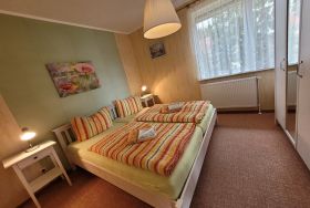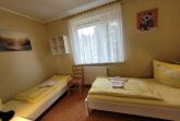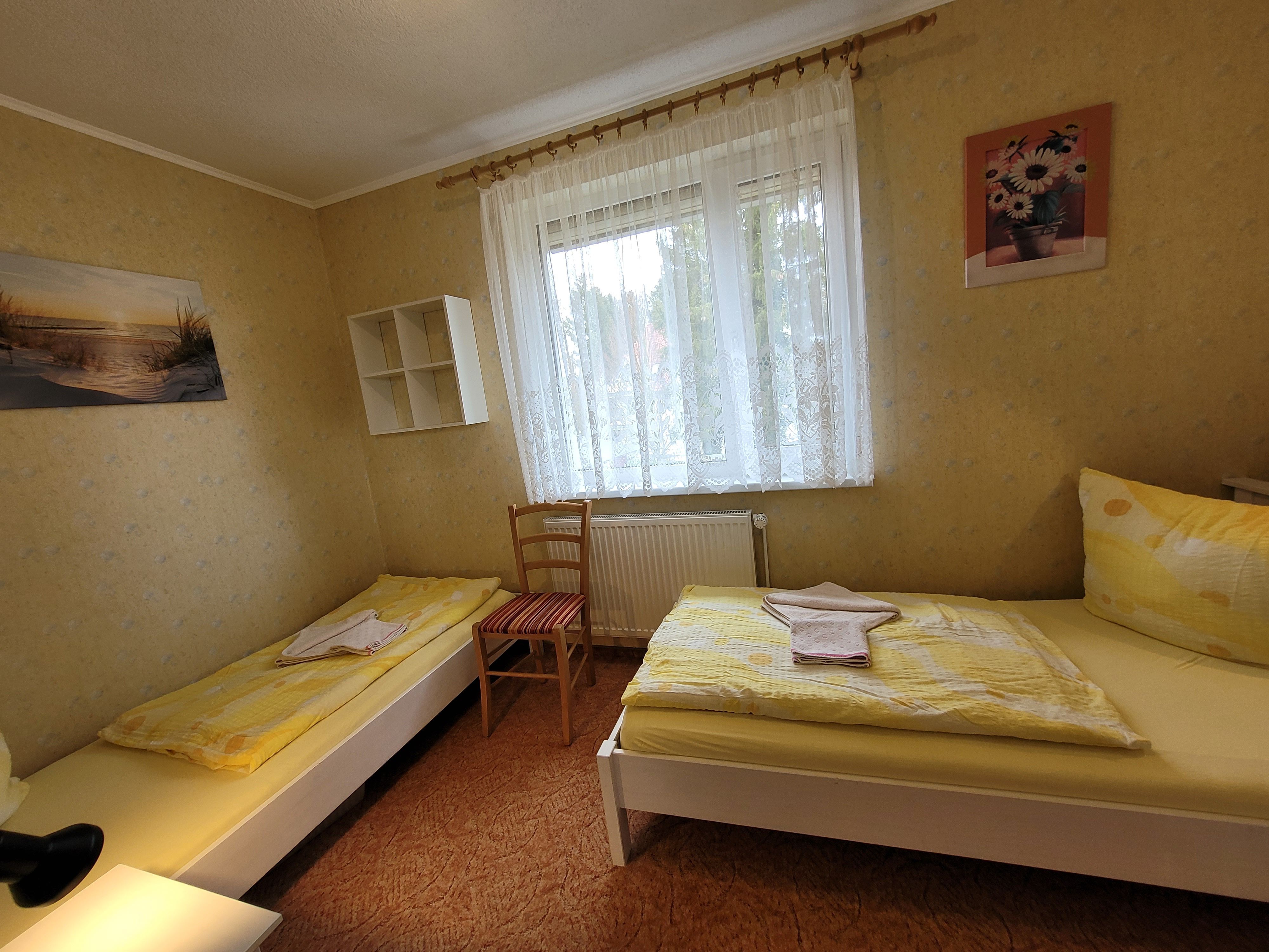 Unser Ferienhaus liegt ca.15 Geh-Minuten vom Strand entfernt in einer ruhigen Wohnlage. Die komplett eingerichtete Ferienwohnung mit Wohnzimmer, zwei Schlafzimmern mit einem Doppelbett und einmal zwei Einzelbetten, Küchenzeile, Dusche, WC, Flur und großem Balkon/Terrasse würde für Sie bereitstehen. Zur Ausstattung gehören weiter Radio, Fernseher, einmalig Bettwäsche und Handtücher. In der Küchenzeile sind Mikrowelle, Kaffeemaschine und Toaster, Eier-und Wasserkocher sowie ein 2-Platten-Kocher, Kühlschrank und Geschirr vorhanden. Eine Aufbettung ist im Wohnzimmer nach Absprache auf dem ausziehbarem Sofa möglich. Wir möchten Sie darauf hinweisen, dass es sich bei unseren Ferienwohnungen um Nichtraucherwohnungen handelt. Natürlich dürfen Sie auf dem Balkon oder der Terrasse rauchen.