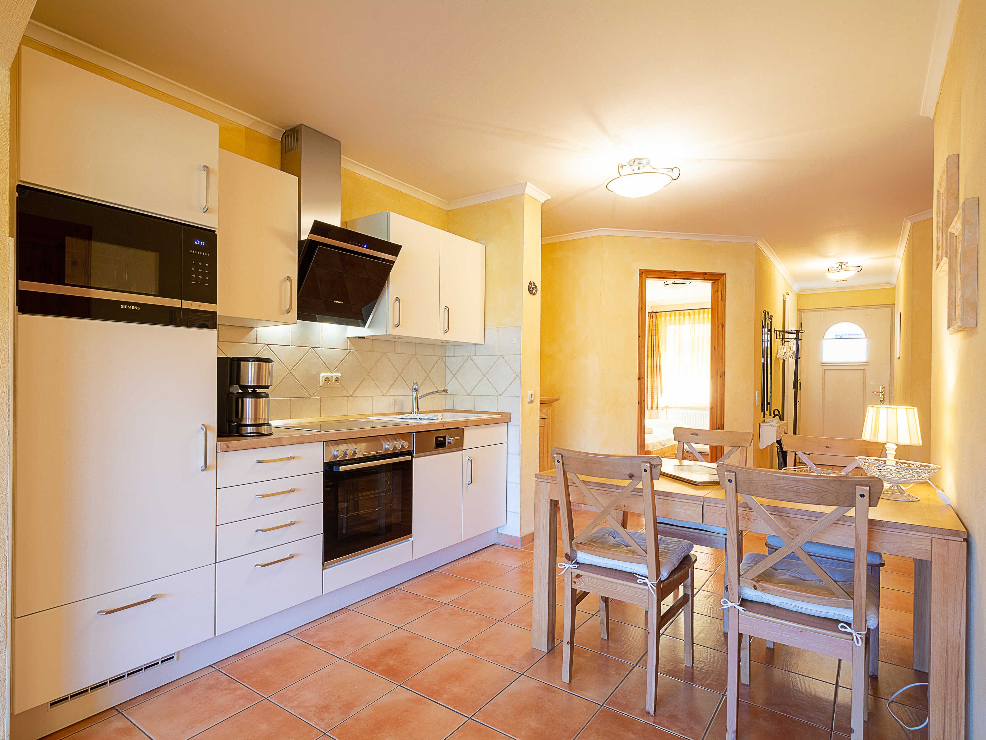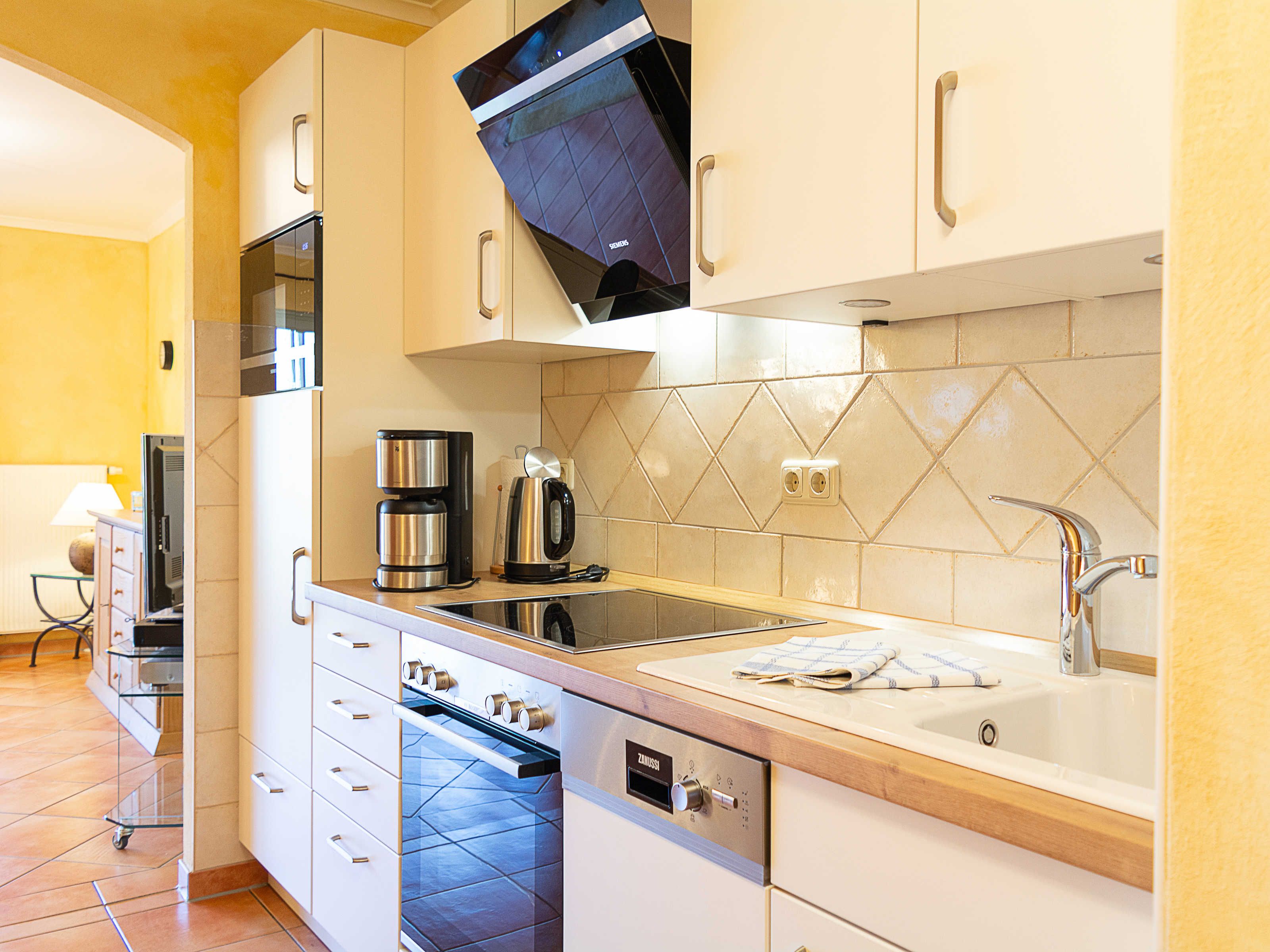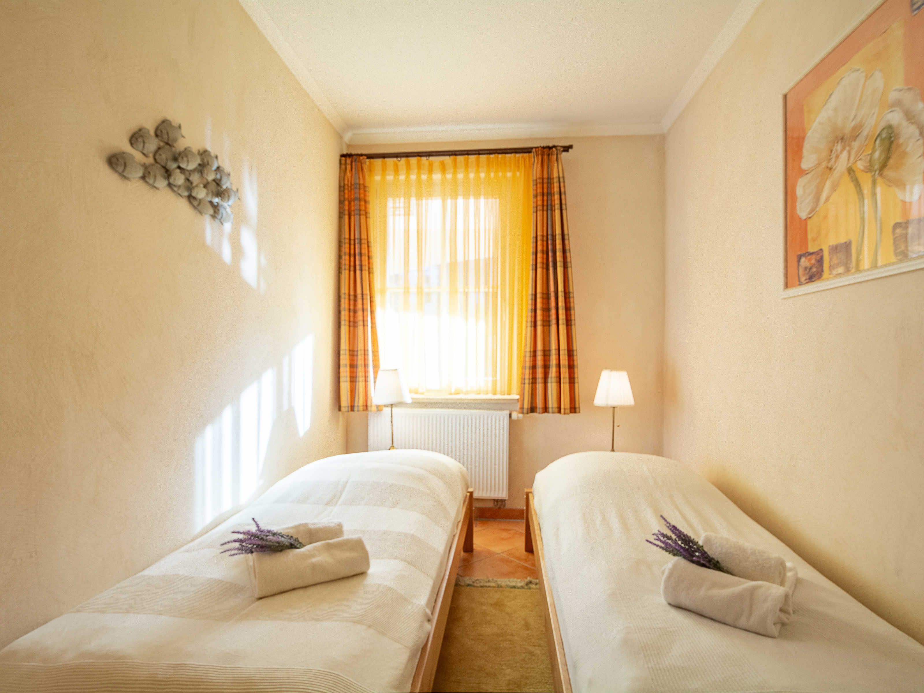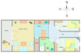 Herzlich willkommen in der Wohnung Nr. 35 in der Appartementanlage der Residenz Laguna. Die liebevoll eingerichtete 3-Raum-Ferienwohnung befindet sich im hinteren Haus der Anlage im ersten Obergeschoss und ist über den Treppenflur oder den Fahrstuhl erreichbar. Sie wohnen in einer 72 m² großen Ferienwohnung, die für 2-4 Personen geeignet ist. Es empfängt Sie ein freundlicher mediterran gestalteter Wohnraum mit hochwertiger Couchgarnitur und Möbeln, Flachbild-TV, Stereoanlage und Zugang zum möblierten Balkon. Der nach Westen ausgerichtete Balkon bietet einen Blick auf den Kühlungsborner Stadtwald und Ruhe sowie Entspannung vom Trubel im Sommer. Dem Wohnraum schließt sich der Ess- und Küchenbereich an. Die voll ausgestattete Küchenzeile bietet alle wichtigen Küchengeräte und -utensilien, die Sie für Ihr „perfektes Dinner“ benötigen: Geschirrspüler, 4-Platten-Cerankochfeld mit Backofen und Dunstabzug, Geschirrspüler, Mikrowelle Kühlschrank, Kaffeemaschine etc. sind vorhanden. Ein Schlafzimmer mit Doppelbett und großzügigem Kleiderschrank, ein Schlafraum mit zwei Einzelbetten sowie das geflieste Bad mit Dusche und WC vervollständigen das Gesamtbild dieser Wohnung.
