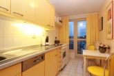 • komplett eingerichtete Einbauküche mit Herd, Spülmaschine, Kühlschrank ohne Gefrierfach, Toaster, Kaffeemaschine, Wasserkocher, Eierkocher, reichlich Geschirr und Essplatz