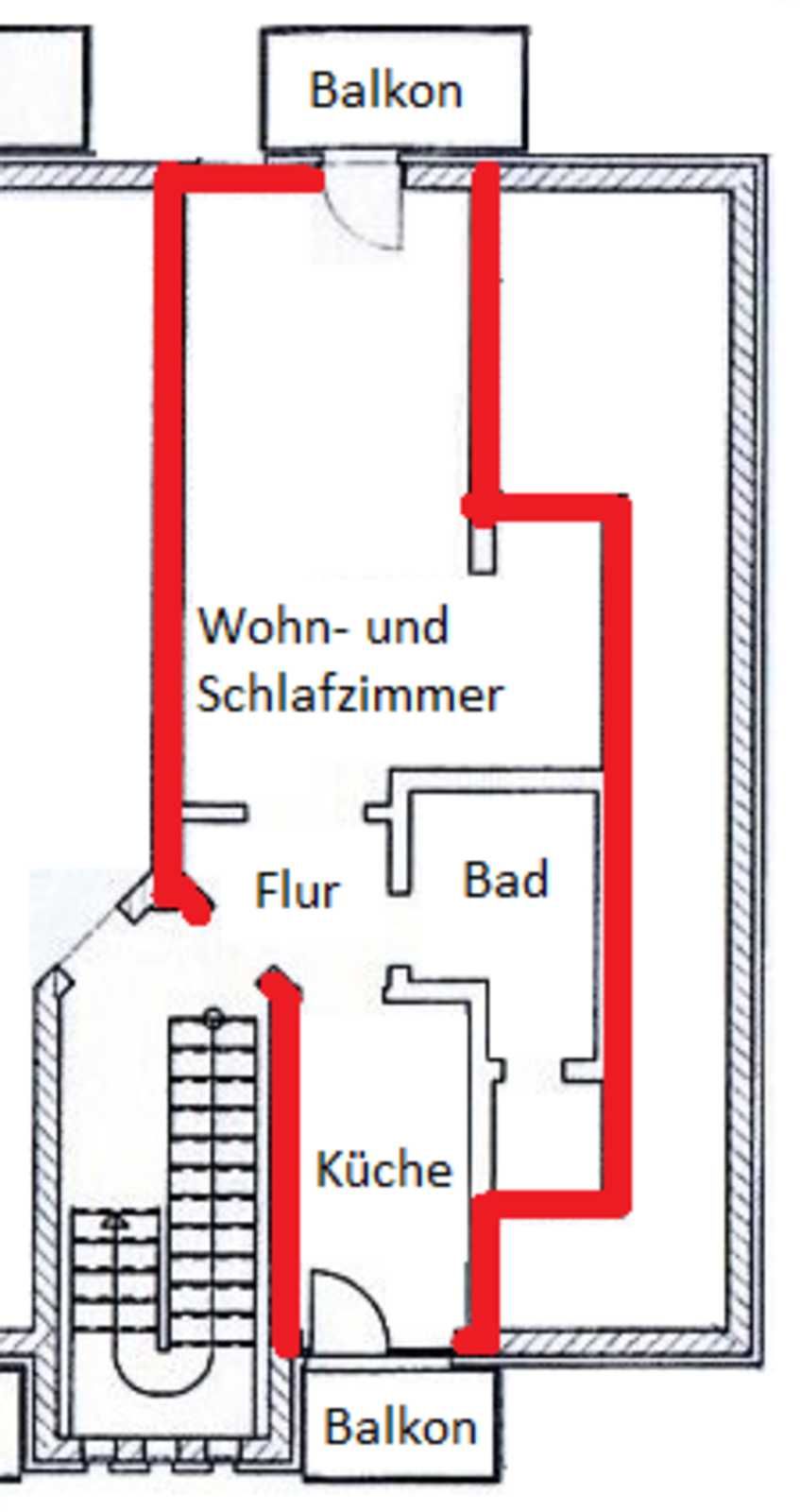 • Bad und Küche haben einen Fliesenfußboden. Wohnzimmer und Flur und haben einen Laminatbelag.