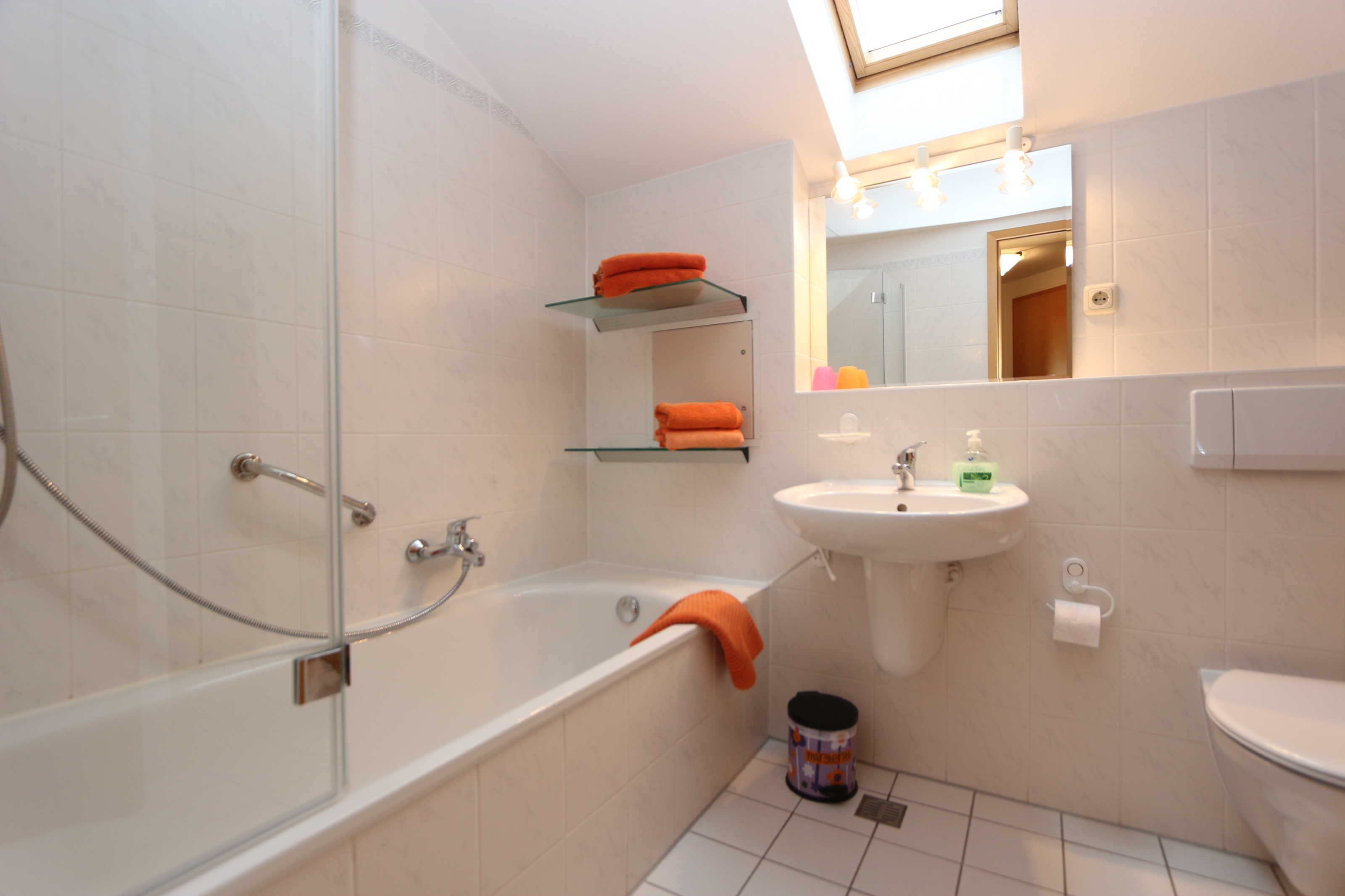 • Bad mit Fenster, WC, Badewanne und Handtuchtrocknerheizkörper.