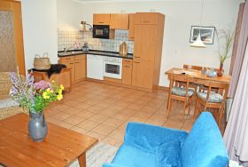 Wir bieten Ihnen in der Iris eine modern eingerichte 2-Raum-Ferienwohnungen (53 qm, 1 Wohnzimmer, 1 Schlafzimmer mit Doppelbett sowie einem Bad mit WC und Dusche, WLAN). Unsere Wohnung bietet Platz für max. 2 Erwachsene.