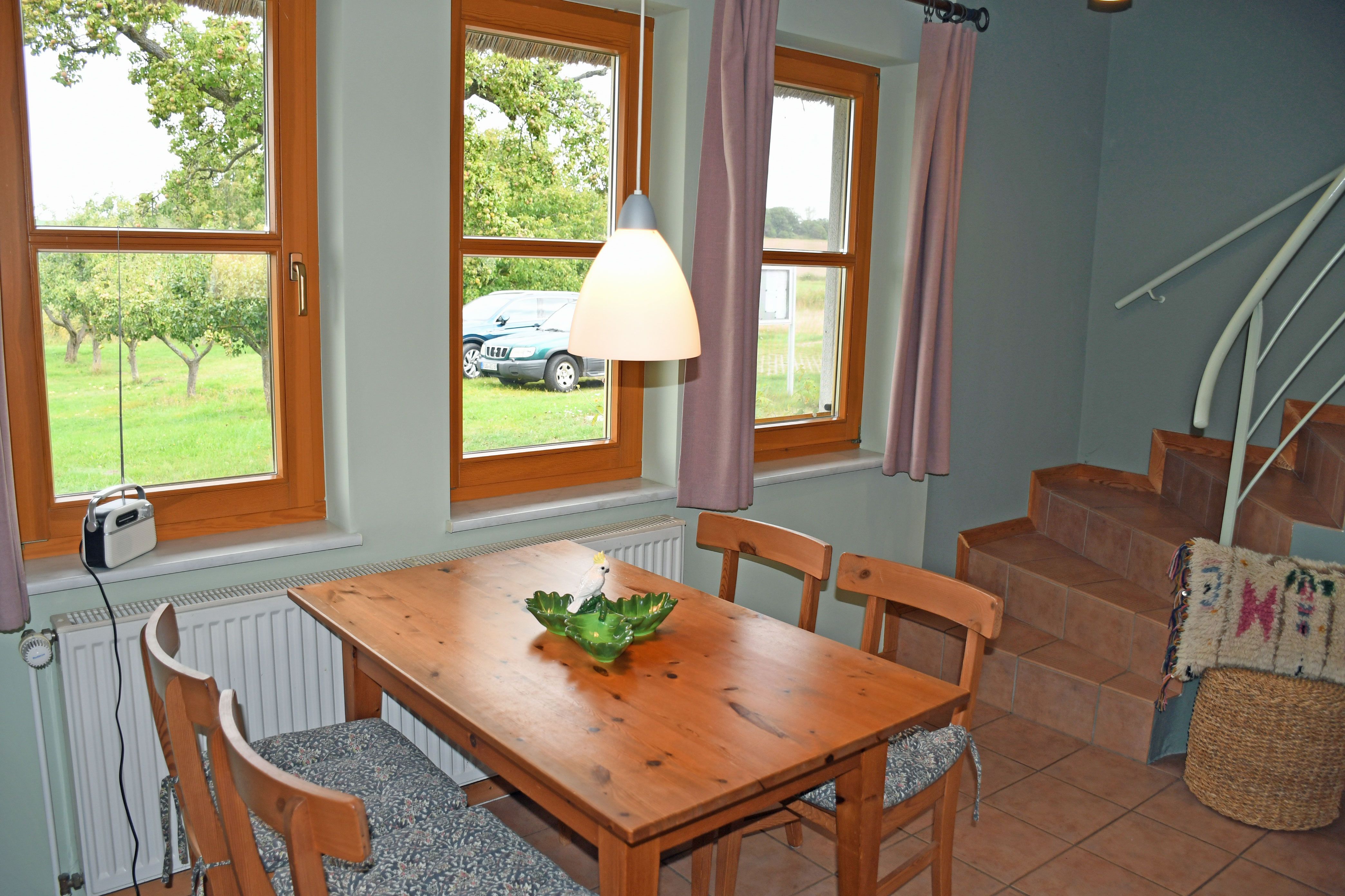 Die offene Küche ist komplett eingerichtet mit Mikrowelle, Geschirrspüler, Toaster, Wasserkocher, Kaffeemaschine sowie einem Herd. Ihre Terrasse zum Garten können Sie vom Zugang / Wohnzimmer betreten. Grillen ist auf dem Grundstück nicht gestattet.