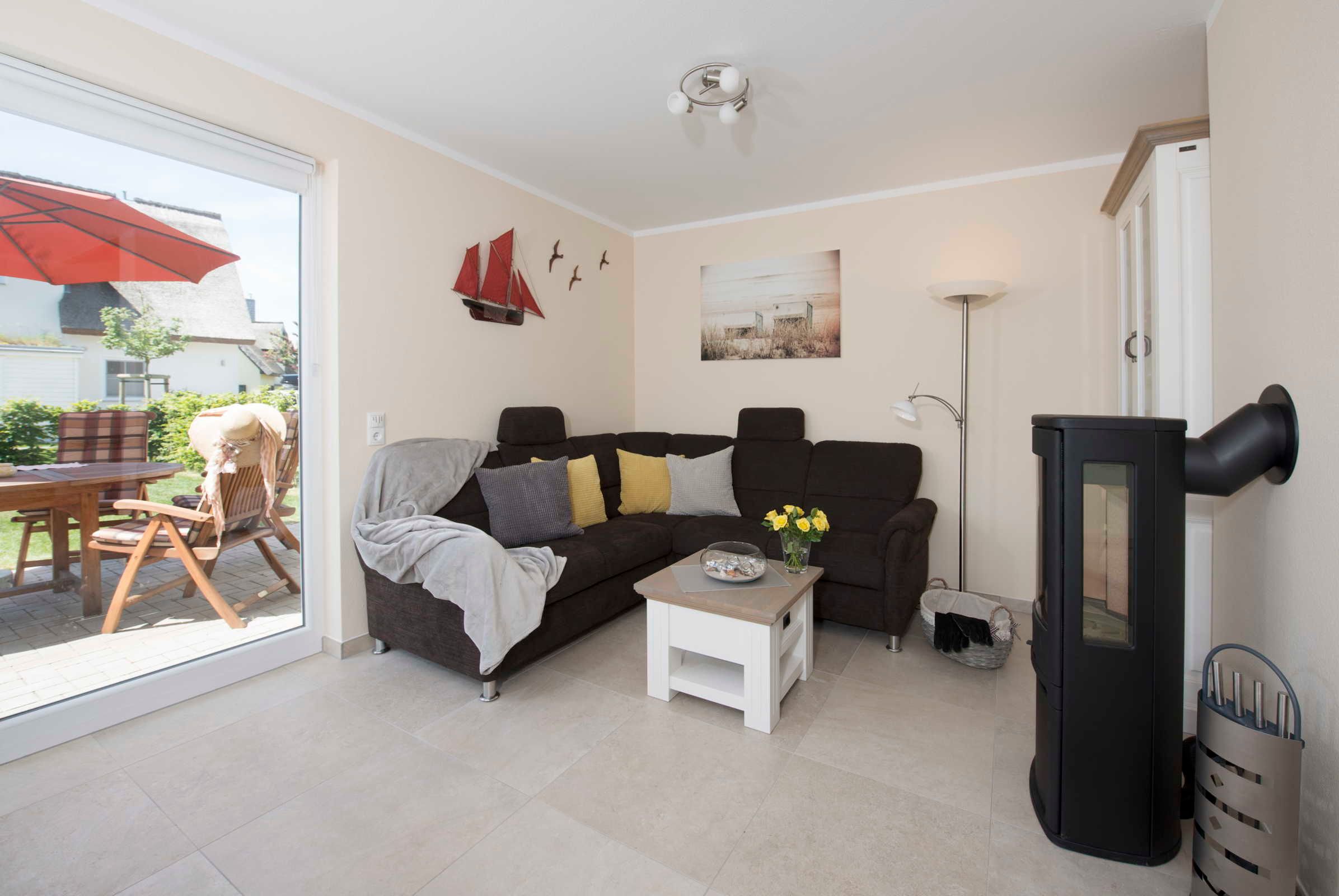Das Domizil liegt zwischen Bodden und Ostsee und ist mit einem Kamin im Wohnbereich, einer Sauna und einer großen Terrasse mit Garten sehr komfortabel ausgestattet.
