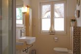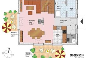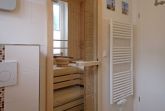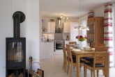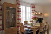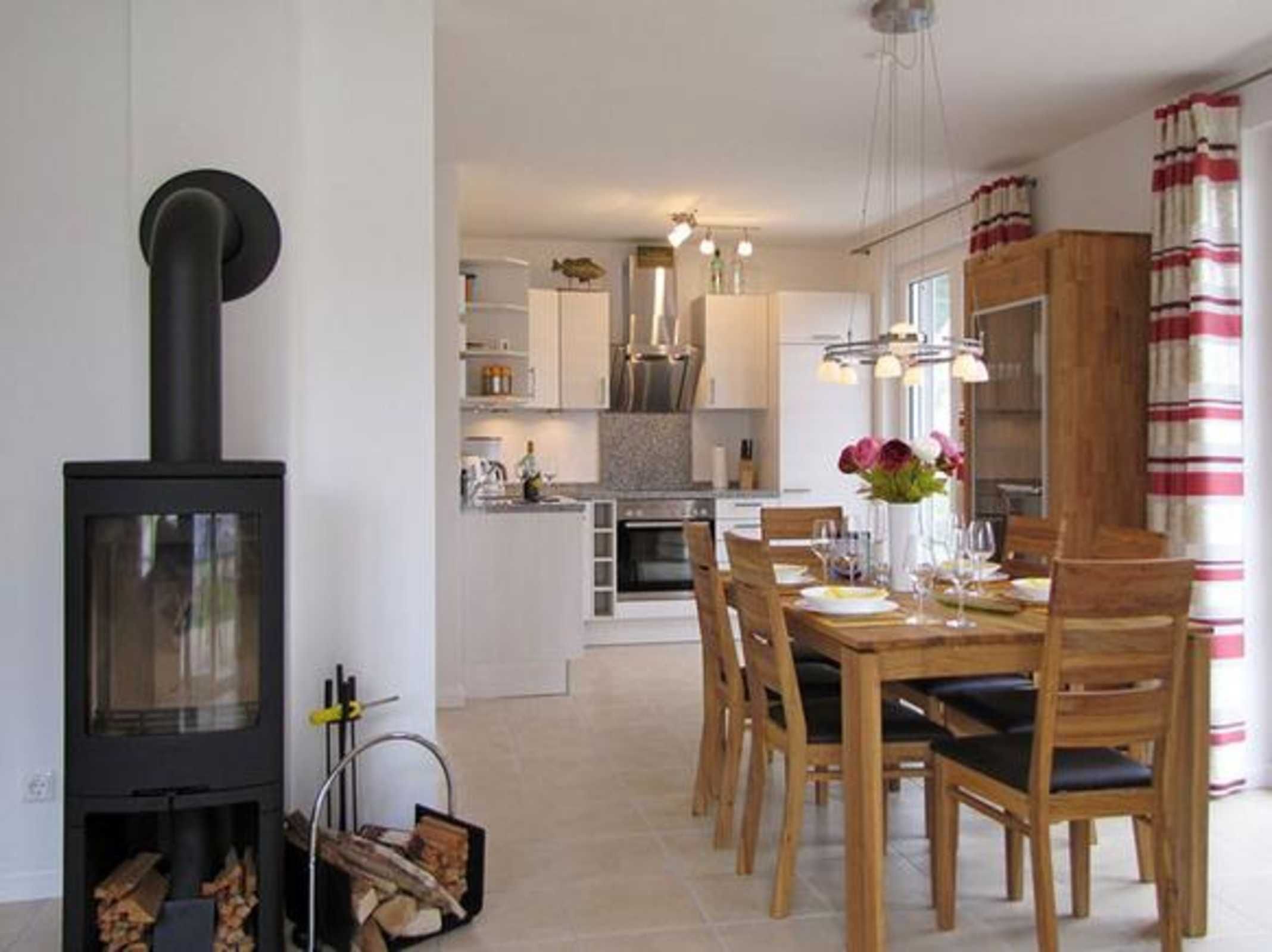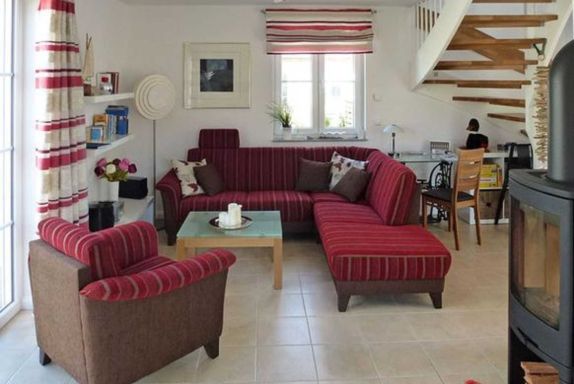 Ein gemütlicher Kaminofen und die geschmackvolle Einrichtung des lichtdurchfluteten Wohnbereichs mit offener Küche und Essbereich im Erdgeschoss heißt Sie herzlich willkommen. Zur hochwertigen Ausstattung gehören selbstverständlich auch eine Stereoanlage, LCD Fernseher, DVD Player und kostenloser Internetzugang per WLAN. Bücher und Spiele für Groß und Klein sorgen für Abwechslung, selbst wenn das Wetter einmal nicht so schön sein sollte. Im Erdgeschoß befindet sich auch ein Duschbad mit angrenzender Sauna und im Hauswirtschaftsraum eine Waschmaschine. Das Obergeschoss verfügt über drei Schlafzimmer mit insgesamt sechs Betten - 1 Doppelbett 180x200 cm, 1 Doppelbett 160x200cm, 2 Einzelbetten 90x200cm - für Erwachsene und eine zusätzliche Aufbettung für ein Kleinkind (Reisekinderbett, Kinderhochstuhl vorhanden). Ergänzt wird der Bereich durch ein großzügiges Bad mit Badewanne, Doppelwaschtisch und reichlich Ablagemöglichkeiten.