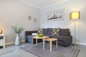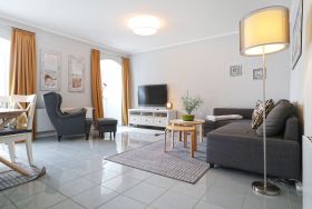 Das 2-Zimmer-Appartement befindet sich in der 1.Etage. Bis zu 4 Personen können hier auf 60 m² Wohnfläche einen unbeschwerten Urlaub verbringen. Die Villa Sonnengarten befindet sich zentrumsnah nur 50 m vom Sandstrand entfernt. Das Appartement verfügt über einen hellen Wohn-/ Essbereich mit Eck-Couch, Fernseher und eine Musikanlage. Von hier aus haben Sie direkten Zugang zum Ost-Balkon. Die integrierte Küche ist modern und unter anderem mit Geschirrspüler, Mikrowelle, Kaffeemaschine, Toaster und diversen Kleingeräten komplett ausgestattet. Das Schlafzimmer ist mit einem Doppelbett und einem großen Kleiderschrank eingerichtet. Des Weiteren steht für Sie ein Duschbad mit Waschmaschine bereit. Insgesamt besticht das Appartement durch liebevoll gewählte Details und der durchdachten stilvollen Einrichtung. Eine Kaution in Höhe von 500 Euro ist am Anreisetag in bar zu hinterlegen.