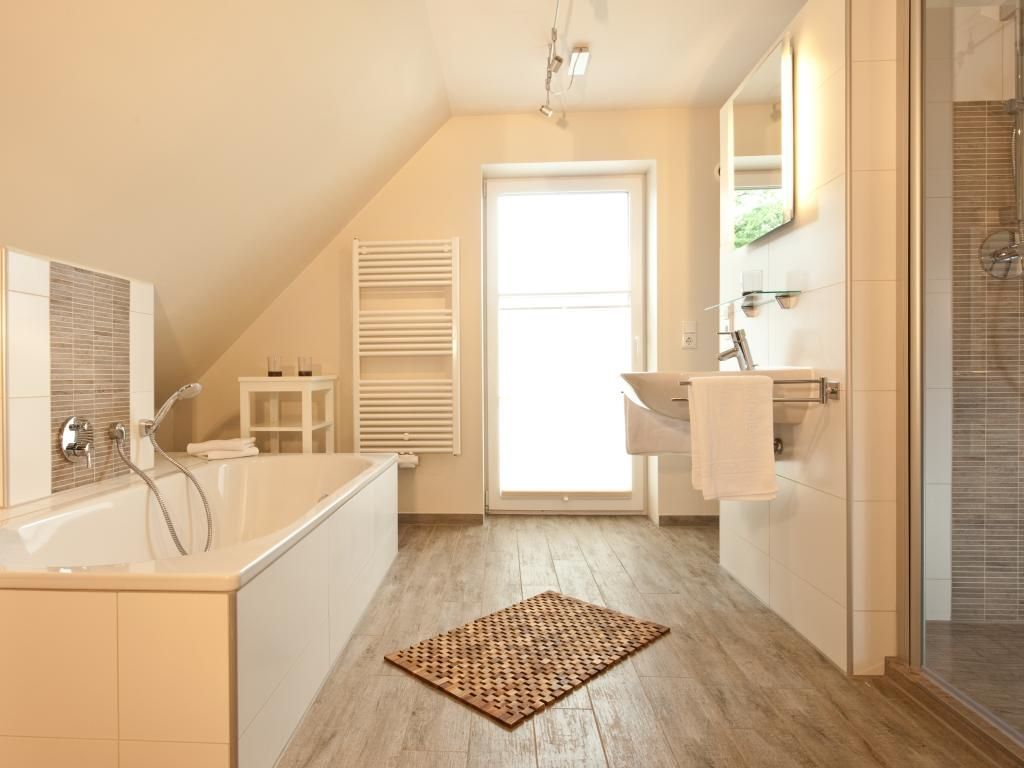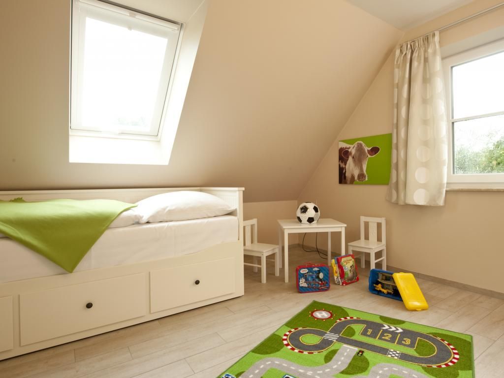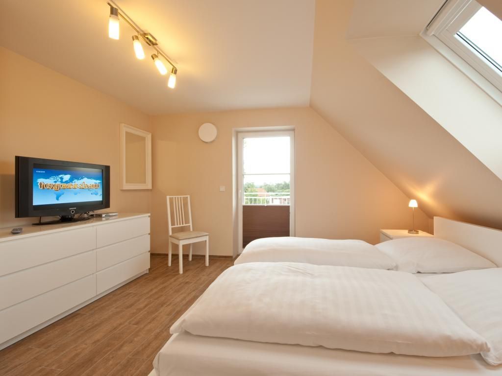 Drei Schlafzimmer sind im Obergeschoss des Hauses davon 1x mit Doppelbett, Ankleidezimmer, Fernseher und Zugang zur Dachterrasse, sowie 2 weitere Schlafzimmer mit jeweils 2 Einzelbetten, die zum Doppelbetten ausziehbar sind. Auch das Komfort-Wellnessbad mit Saunakabine und ebenfalls Dachterrassenzugang befindet sich auf der oberen Ebene. Im Spitzboden ? Treppenschutzgitter- des Ferienobjektes ist ein Kinderspielzimmer eingerichtet. Der Hauswirtschaftsraum bietet eine Waschmaschine sowie Kühl-/Gefrierkombination. Für kleine Kinder stehen Kinderhochstuhl, Kindergitterbett und Bollerwagen kostenfrei bereit. Ein PKW-Stellplatz befindet sich am Haus. Bei Anreise wird eine Kaution i.H.v. 200,00 Euro erhoben. Es handelt sich um ein Nichtraucherhaus indem Haustiere nicht gestattet sind. Groß-Schwansee ist ein kleiner Küstenort in direkter Lage zum Ostseefernradweg, der entlang der Ostsee bis nach Priwall-Travemünde, Lübeck wie auch zum Ostseebad Boltenhagen führt.