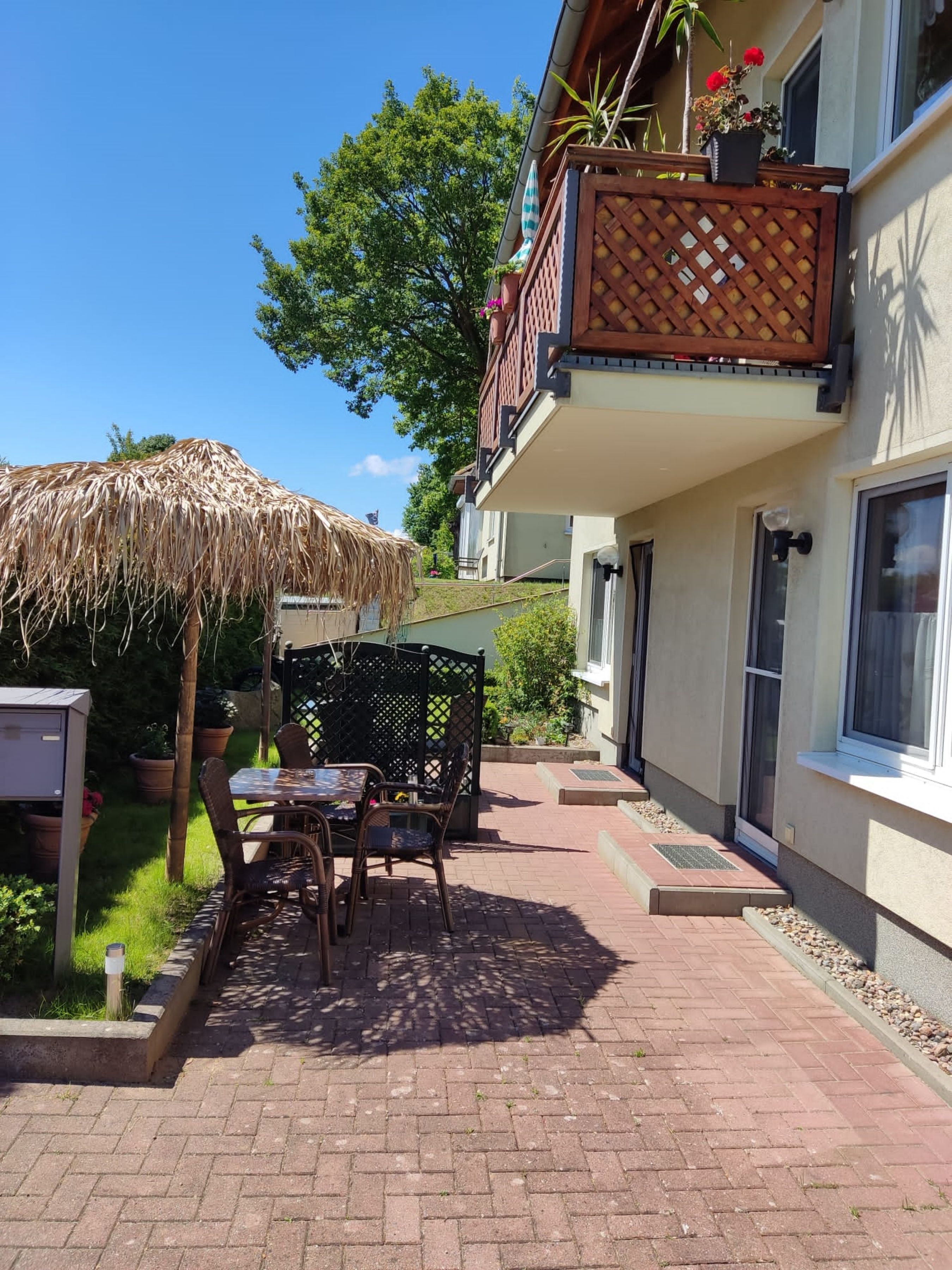 Die kleine und feine 1-Raum-Ferienwohnung im Erdgeschoss bietet mit seinen 35 qm einen idealen Rückzugsort für bis zu 4 Erwachsenen. Der helle Wohn-/Schlafbereich verfügt über ein bequemes Doppelbett, Kleiderschrank, Flachbild-TV und eine gemütliche Couch (ausziehbar, kann als Aufbettungsmöglichkeit für 2 Personen genutzt werden). Mit einer Pantry-Küche mit 2 Kochfeldern, Kühlschrank, Mini-Backofen, Kaffeemaschine, Wasserkocher, Geschirr sowie einem Essplatz für 4 Personen bietet diese Wohnung gute Voraussetzungen für das gemütliche Frühstück oder das kleine Abendessen. Das Badezimmer ist funktional gestaltet: mit Dusche und WC. Eine Terrasse direkt vor der Wohnung lädt schon morgens dazu ein Ihren Kaffee zu genießen oder den Abend bei einem Glas Wein ausklingen zu lassen.