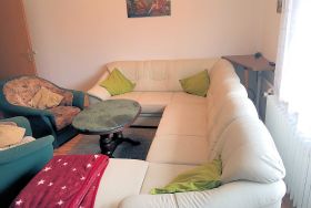 • 1 Wohnraum mit Anbauwand, Eckcouch, Sessel, Couchtisch