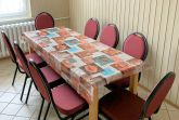 • vollwertige Küche mit Esstisch, Sitzecke und Stühlen