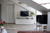 Der Wohnraum ist hell und freundlich und geht in eine offene moderne Küche über.