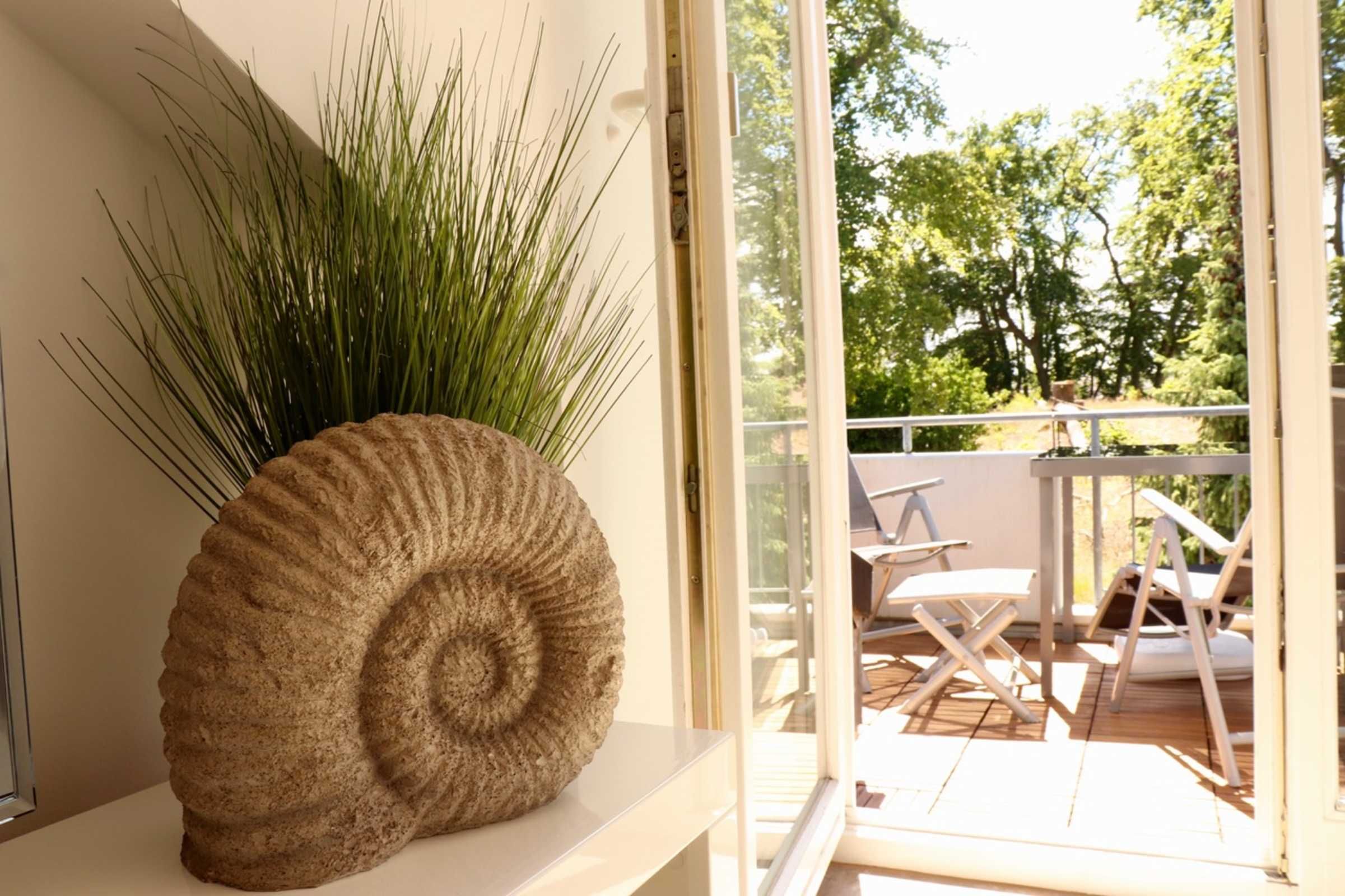 Die liebevoll und hochwertig eingerichtete Ferienwohnung Dünennest mit separater Schlafzimmer, voll ausgestatteter moderner Einbauküche, einem großzügigen Bad sowie einem attraktiven Wohnbereich liegt nur 100 Meter vom wunderschönen Strand von Zinnowitz, unmittelbar an der Seebrücke, entfernt.Durch die zentrale Lage erreichen Sie in wenigen Fußschritten neben Strand und Promenade viele Restaurants, Cafés und Einkaufsmöglichkeiten. Die Ferienwohnung bietet Ihnen eine wunderbare Ausgangslage für alle Aktivitäten in Zinnowitz und Umgebung. Zugleich lockt die Ferienwohnung auch Ruhesuchende an. Der Blick aus den Fenstern und vom Balkon geht ins Grüne. Der großzügige Südbalkon mit einem Esstisch, 3 verstellbaren Aluminiumstühlen und einem Fußhocker lädt zum Genießen eines ausgiebiges Frühstück, einem Glas Wein beim Sonnenuntergang oder einem angenehmen Sonnenbad ein.