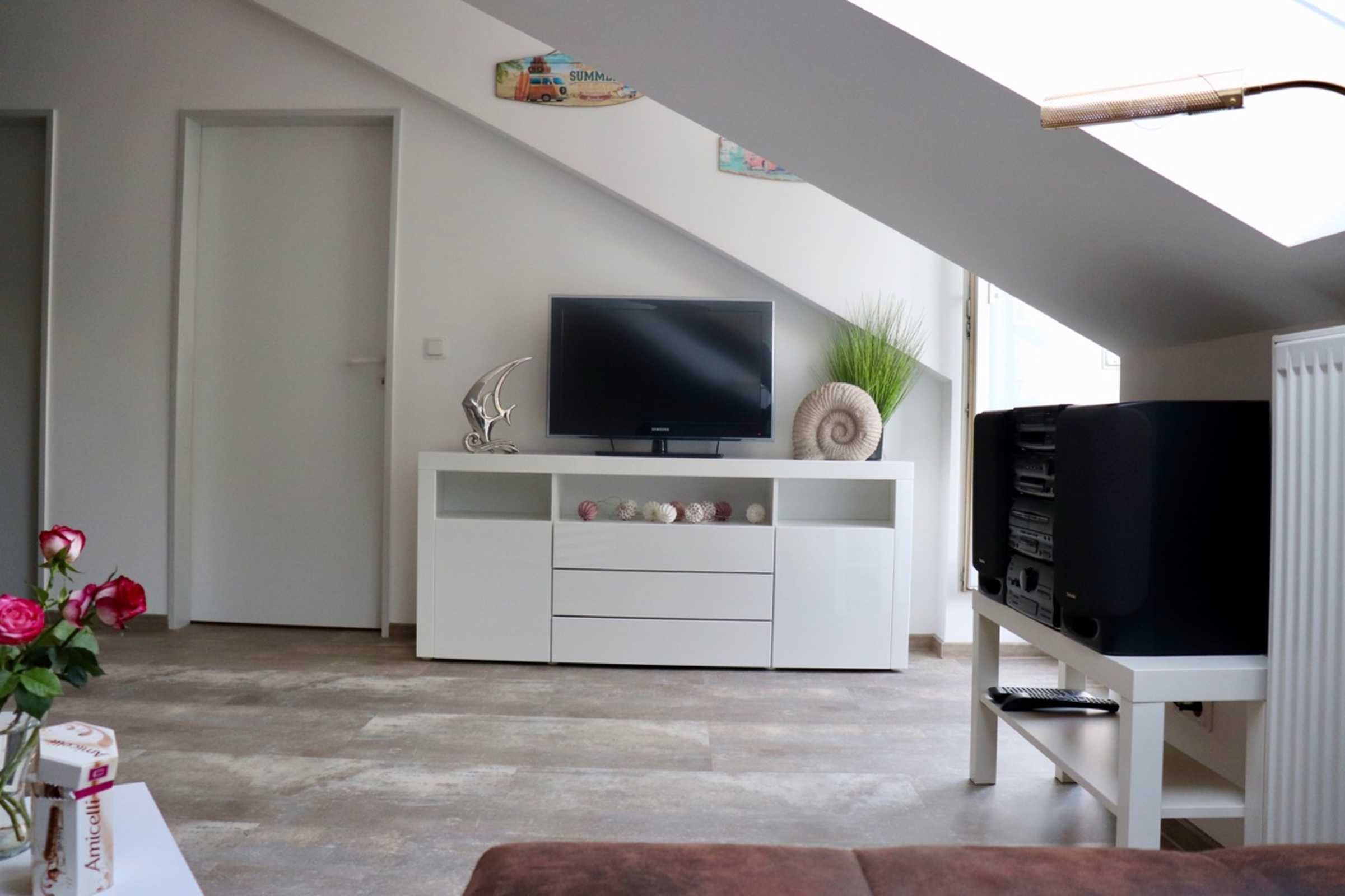 Die Dachgeschosswohnung (3. Obergeschloss) Dünennest bietet Ihnen auf 50 Quadratmetern viel maritime Gemütlichkeit, in der Sie nach einem Strandtag oder einem langen Spaziergang so richtig die Seele baumeln lassen können und ist perfekt für 2 Personen sowie Familien mit max. einem Kind geeignet.