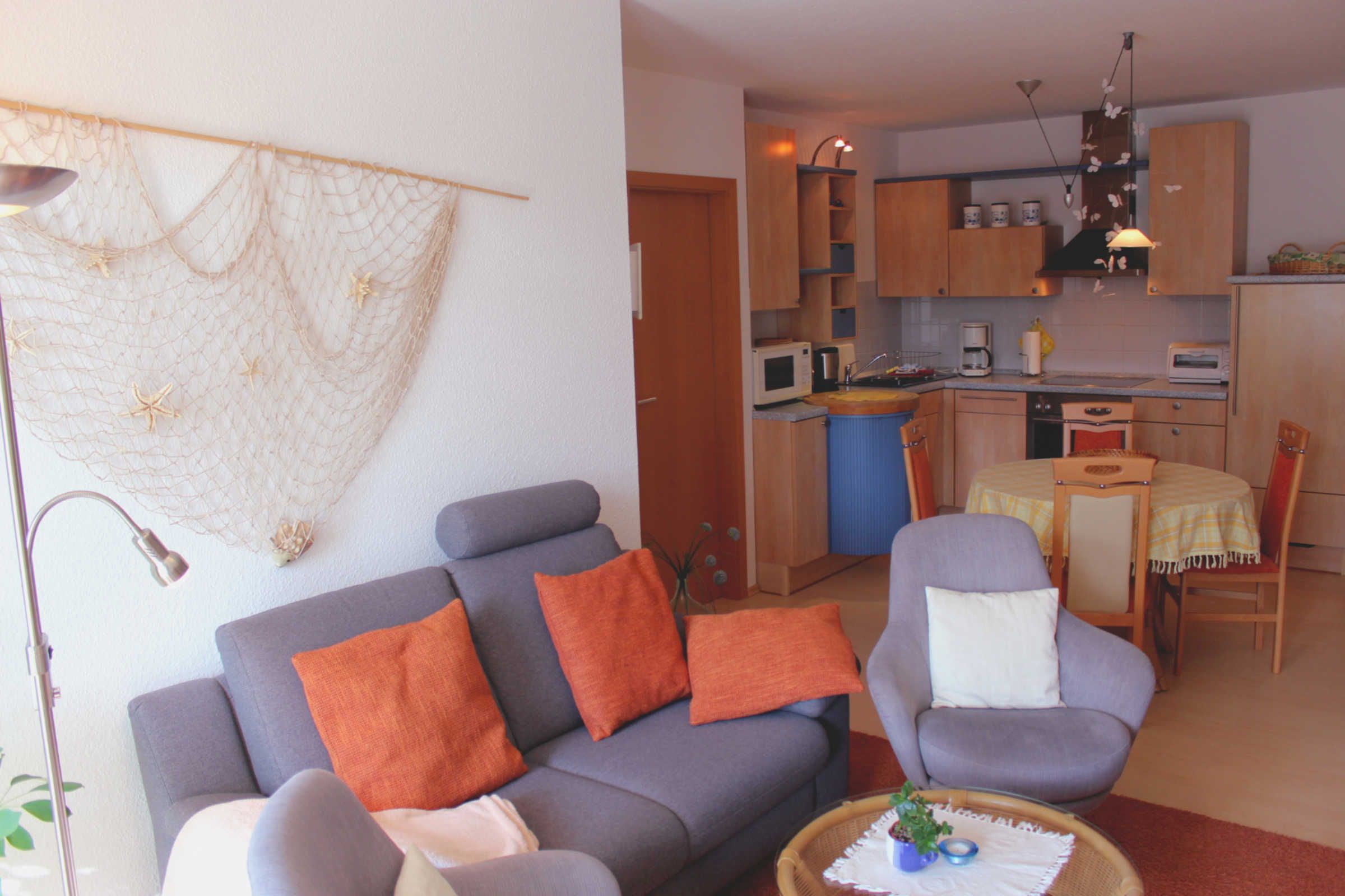Unsere Wohnung ist komfortabel und ansprechend eingerichtet. Die Wohnung bietet Ihnen Ruhe und Behaglichkeit. Ausgestattet mit 2 Schlafräumen , Bad (DU/WC), Satelliten - TV, Radio ,Wohnzimmer mit offener Küche (Kühlschrank, E-Herd, Geschirrspüler).Balkon ; Handtücher und Bettwäsche sind nicht im Preis enthalten.- keine Haustiere-Nichtraucher-