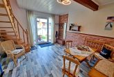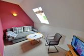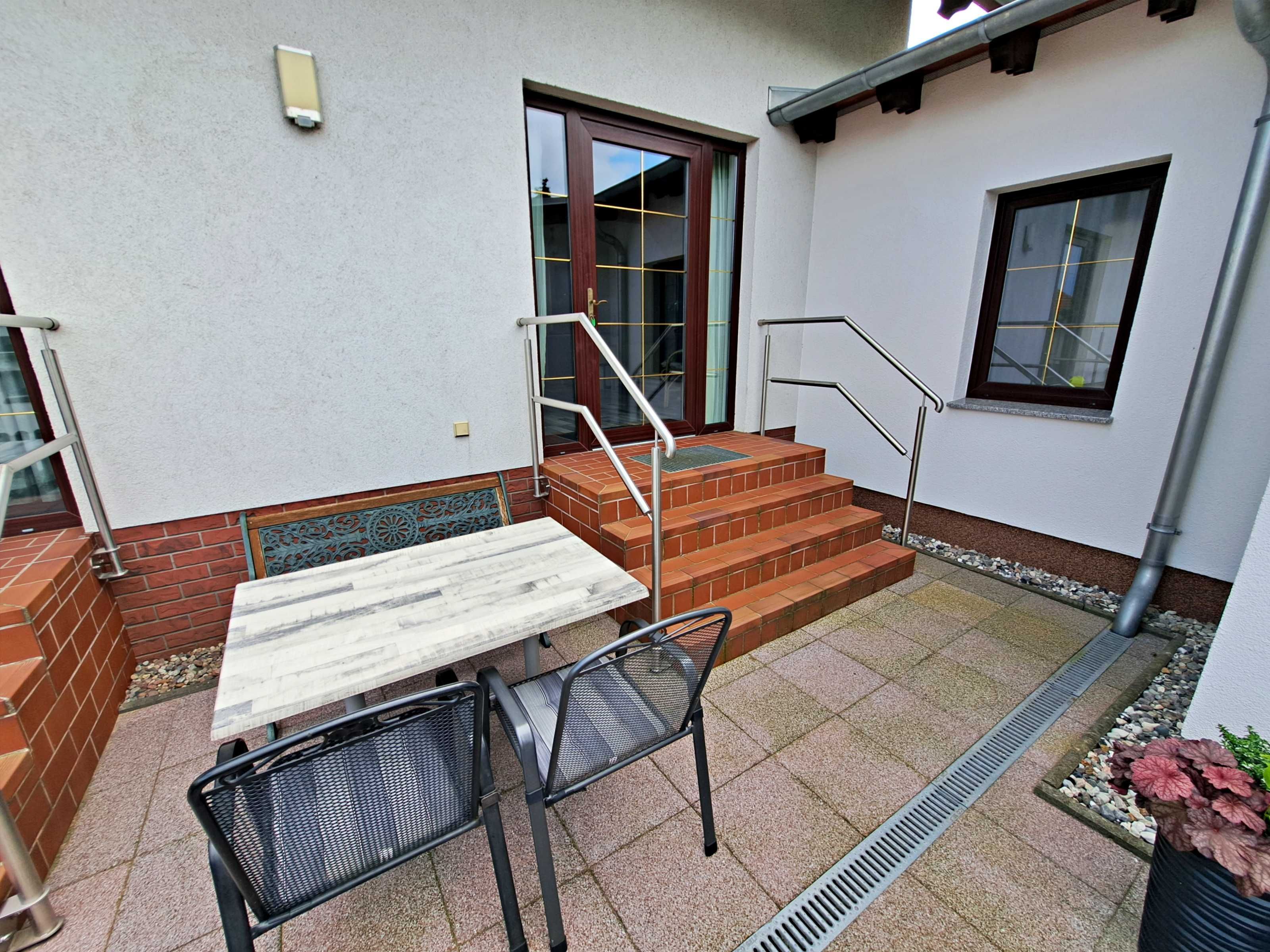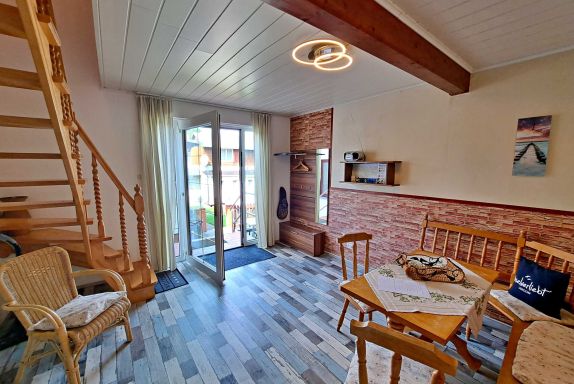 Über eine Treppe gelangen Sie ins 1. Obergeschoss, wo ein einladendes Wohnzimmer mit einer bequemen Couch, die auch als Schlafgelegenheit für zwei weitere Personen dient, auf Sie wartet. Außerdem gibt es ein separates Schlafzimmer mit einem komfortablen Doppelbett und Kleiderschrank. Genießen Sie die frische Luft auf der möblierten Terrasse direkt am Eingang, die perfekt ist um bei schönem Wetter Ihr Frühstück zu genießen oder den Abend mit einem Glas Wein ausklingen zu lassen. Ein Pkw-Stellplatz direkt am Haus sowie kostenfreies W-LAN stehen Ihnen ebenfalls zur Verfügung. Falls Sie gerne grillen möchten, können Sie auf Anfrage eine Grillmöglichkeit direkt beim Vermieter ausleihen. Zudem besteht die Möglichkeit gegen eine Kaution von 50 € eine Mikrowelle zur Verfügung gestellt zu bekommen.