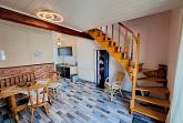 Diese großzügige 40 qm große Unterkunft erstreckt sich über zwei Etagen und bietet Ihnen alles, was Sie für einen angenehmen Aufenthalt benötigen. Im Erdgeschoss erwartet Sie ein offener Essbereich mit einer gemütlichen Essecke und einer praktischen Pantryküche. Zudem finden Sie hier auch ein Bad mit Dusche und WC.