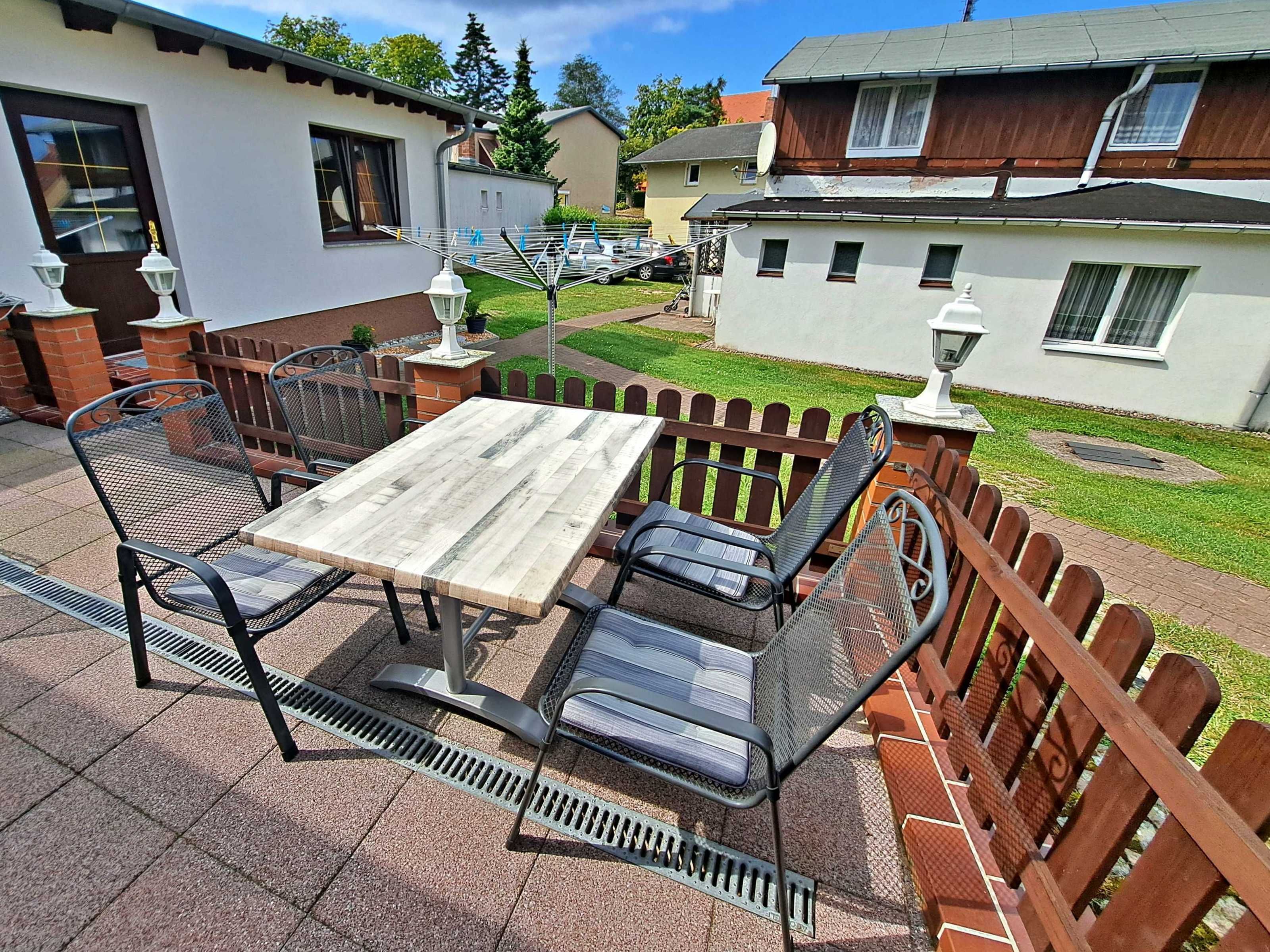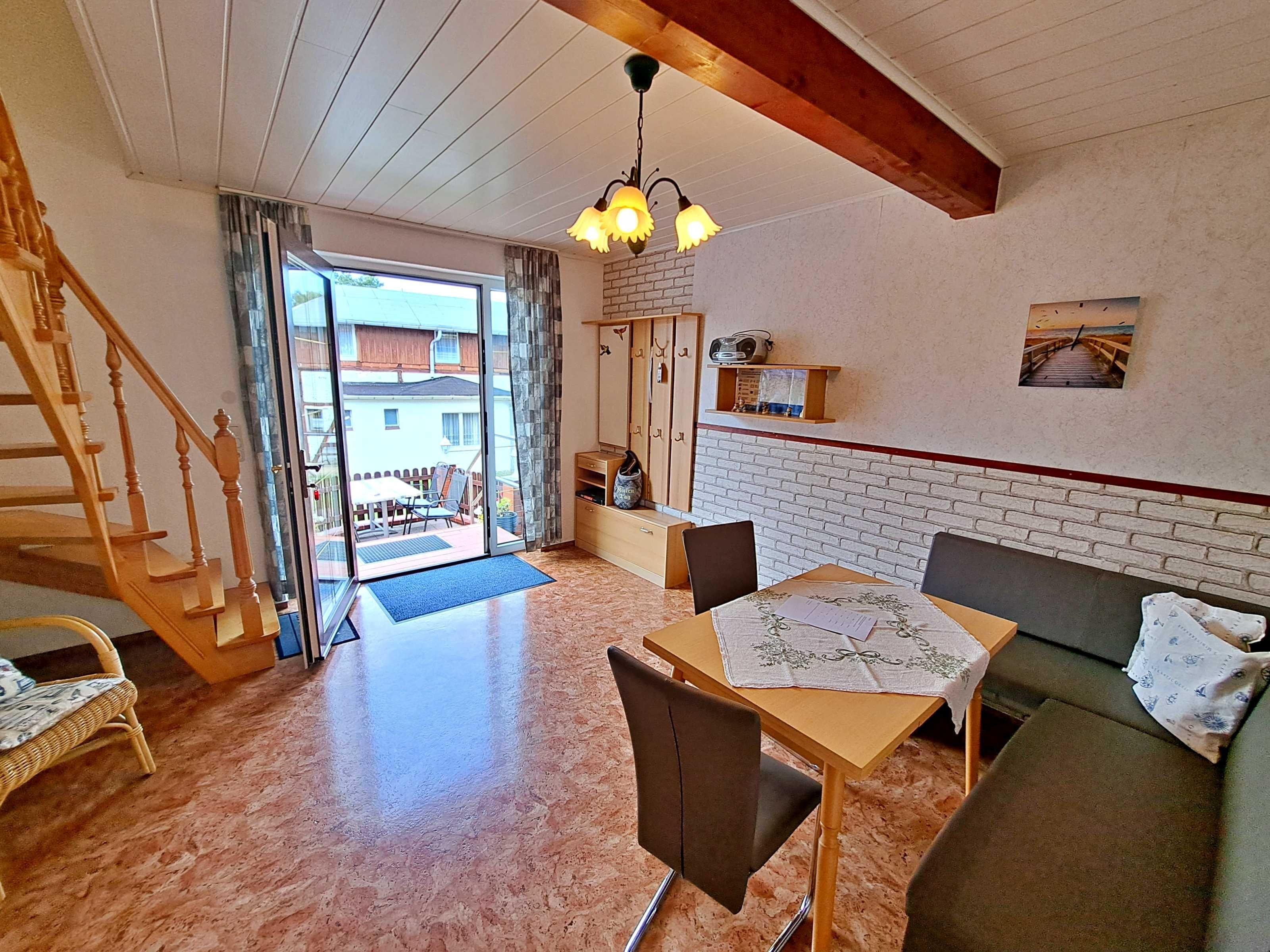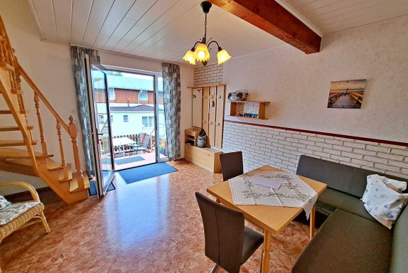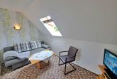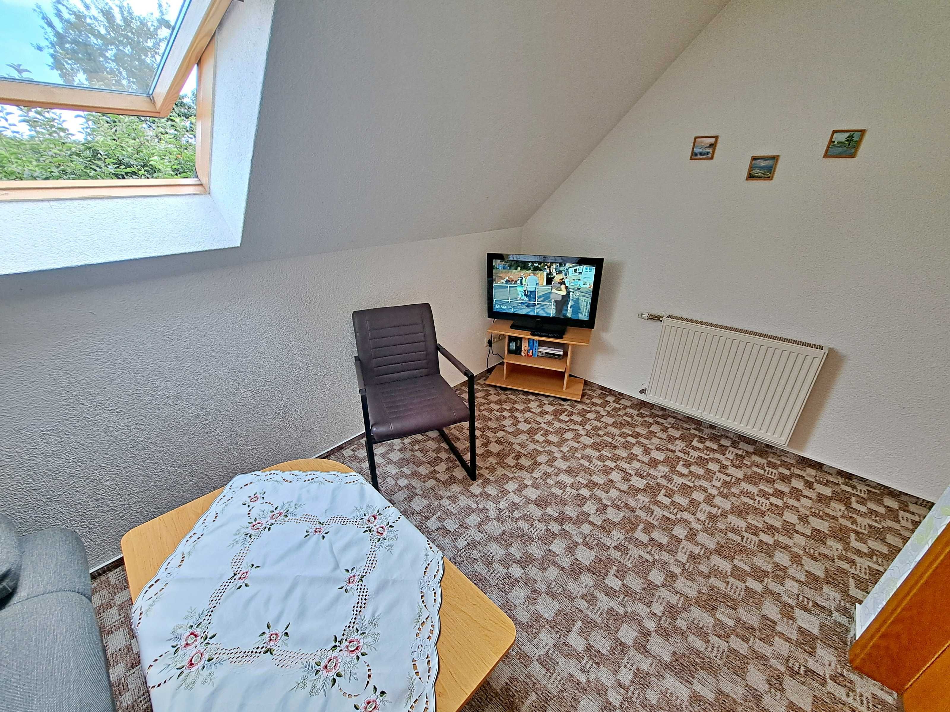 Über eine Treppe gelangen Sie ins 1. Obergeschoss, wo ein einladendes Wohnzimmer mit einer bequemen Couch, die auch als Schlafgelegenheit für zwei weitere Personen dient, auf Sie wartet. Außerdem gibt es ein separates Schlafzimmer mit einem komfortablen Doppelbett und Kleiderschrank. Genießen Sie die frische Luft auf der möblierten Terrasse direkt am Eingang, die perfekt ist um bei schönem Wetter Ihr Frühstück zu genießen oder den Abend mit einem Glas Wein ausklingen zu lassen. Ein Pkw-Stellplatz direkt am Haus sowie kostenfreies W-LAN stehen Ihnen ebenfalls zur Verfügung. Falls Sie gerne grillen möchten, können Sie auf Anfrage eine Grillmöglichkeit direkt beim Vermieter ausleihen. Zudem besteht die Möglichkeit gegen eine Kaution von 50 € eine Mikrowelle zur Verfügung gestellt zu bekommen.