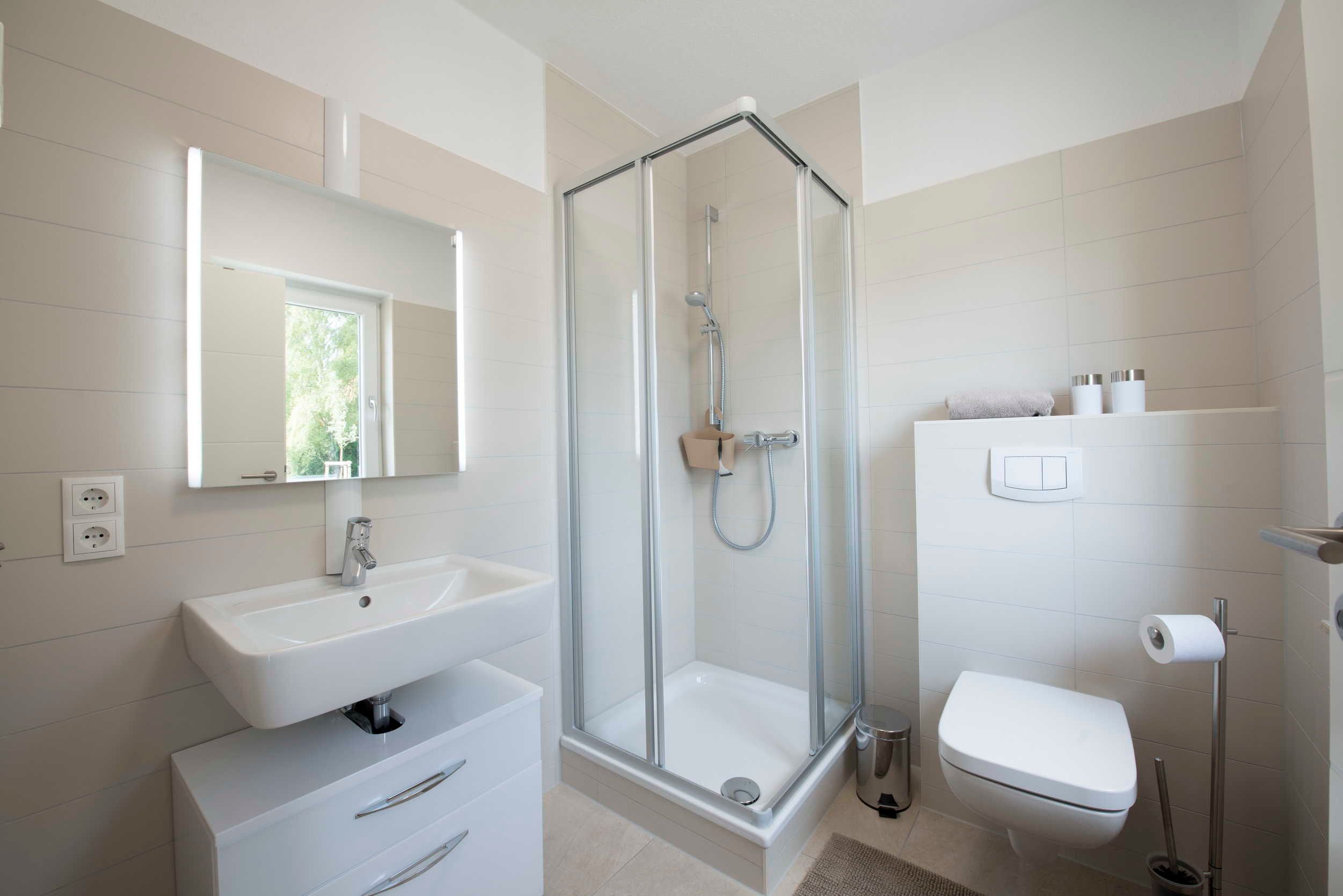 Die hochwertige Ausstattung wird komplementiert durch eine Sauna, in der 4 Person bequem Platz finden. Außerdem sind zwei Bäder mit Dusche vorhanden.