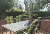 Aus dem Wohnbereich blicken Sie direkt auf Ihre Terrasse mit angrenzendem Garten.