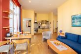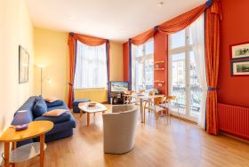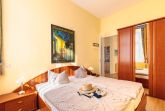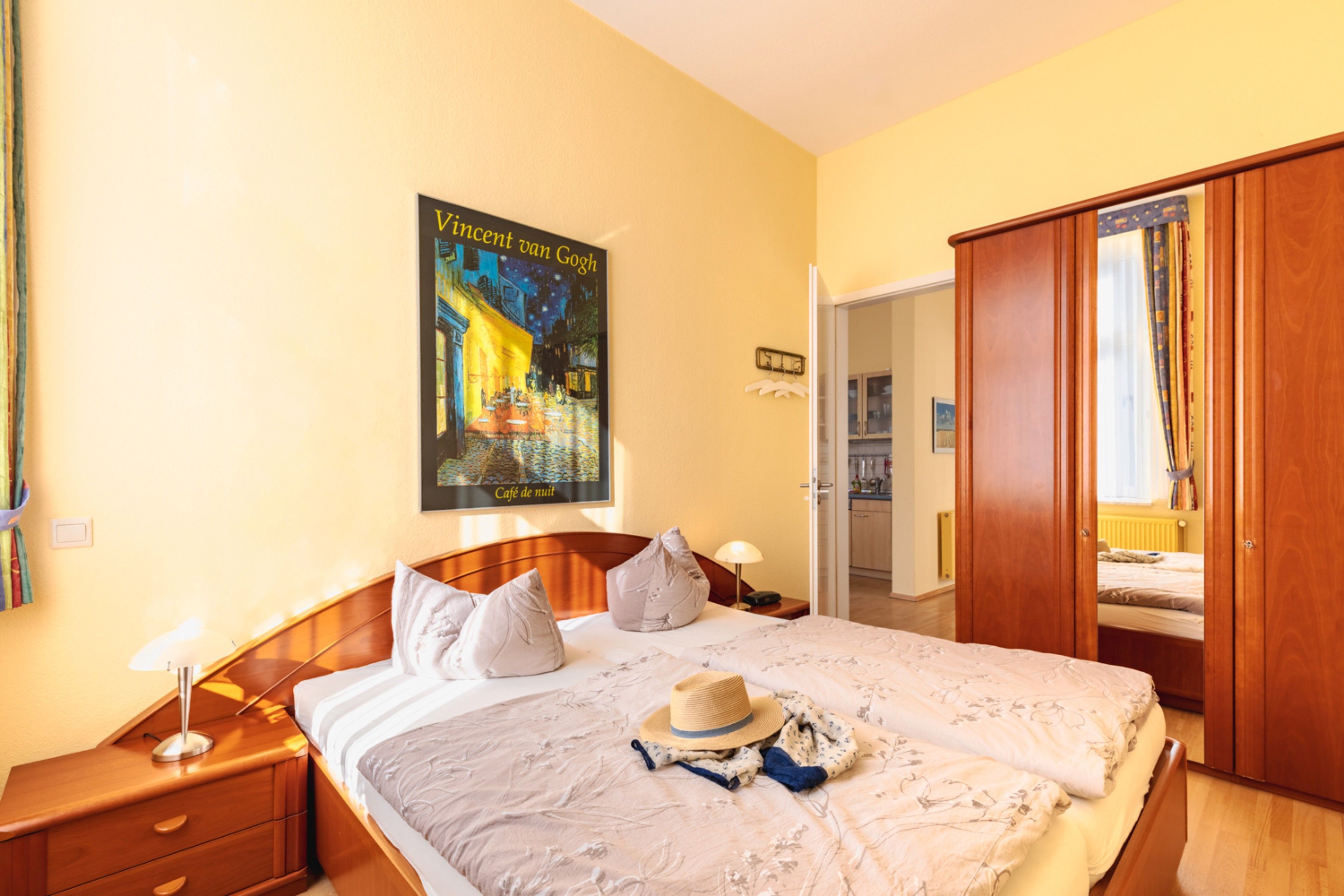 Die komfortable 2-Raum-Ferienwohnung mit 46 qm befindet sich in der zweiten Etage der Dependance und verfügt über einen Balkon und eine Terrasse mit eingeschränktem Seeblick. Die Wohnung besteht aus einem Schlafraum mit Doppelbett, einem kombinierten Wohn- und Schlafraum mit Doppelbettschlafcouch und einer kompletten Küchenzeile mit Geschirrspüler, Herd, Backofen, Kaffeemaschine. Bad mit Dusche und WC.
