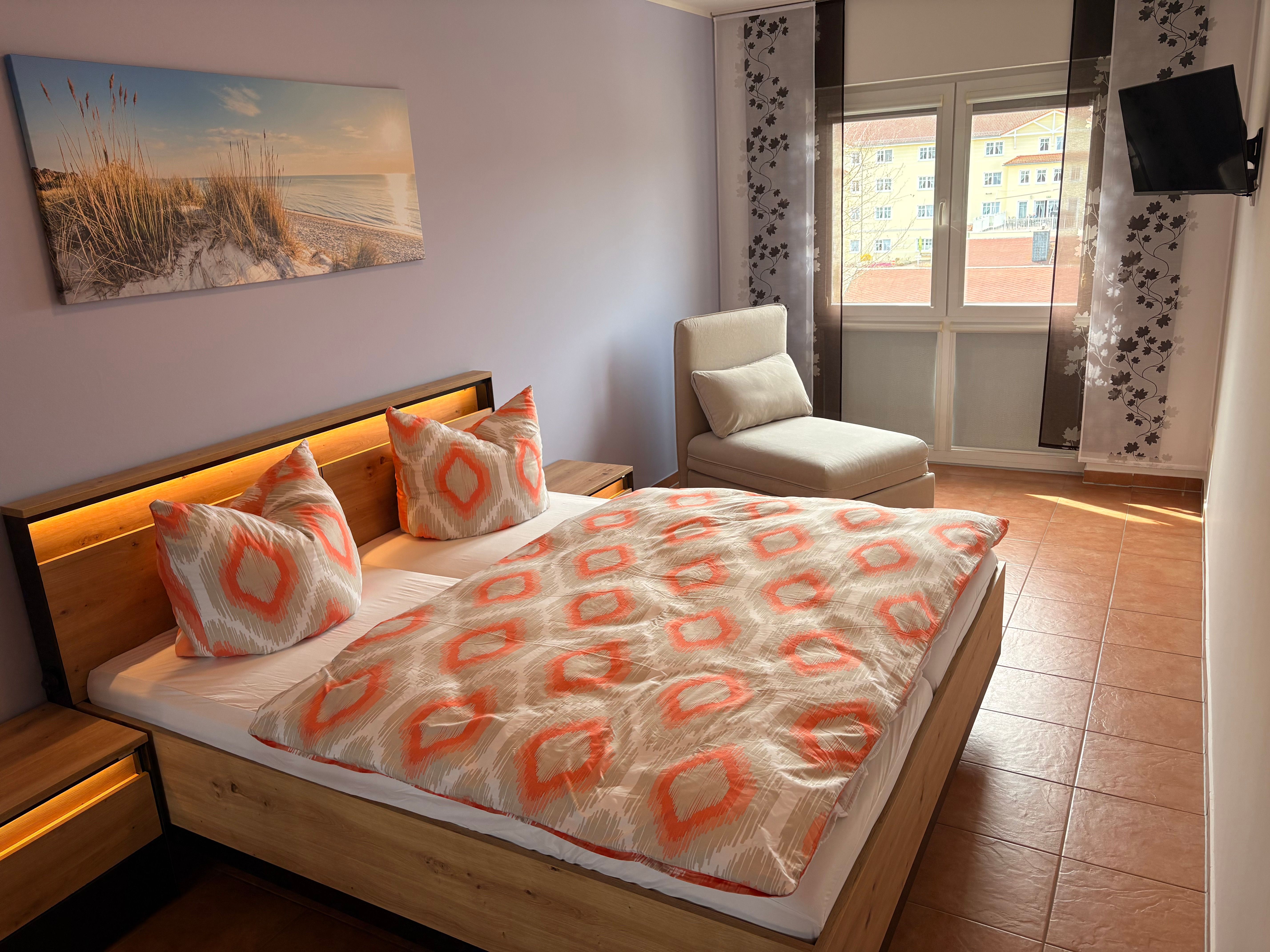 1 Schlafzimmer mit Doppelbett 180x200cm & Schlafsessel zum ausklappen 80x180cm