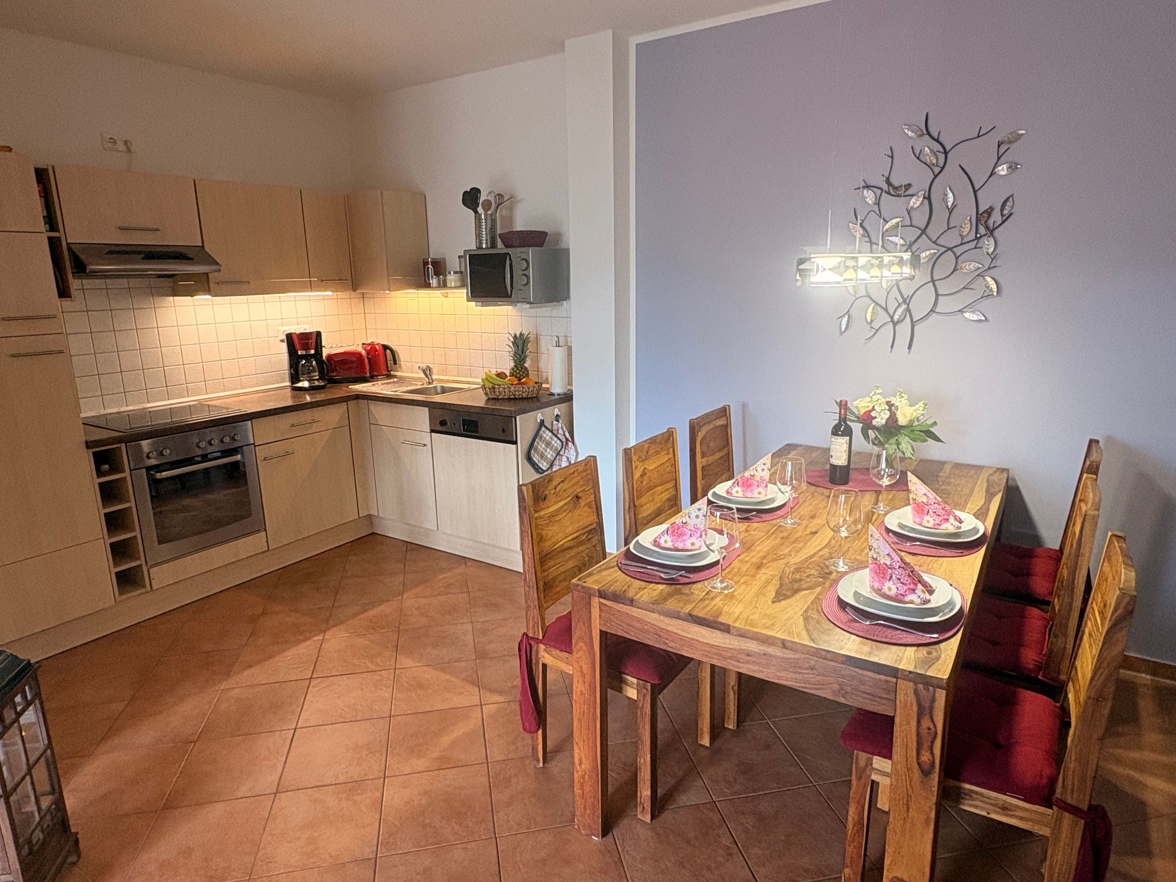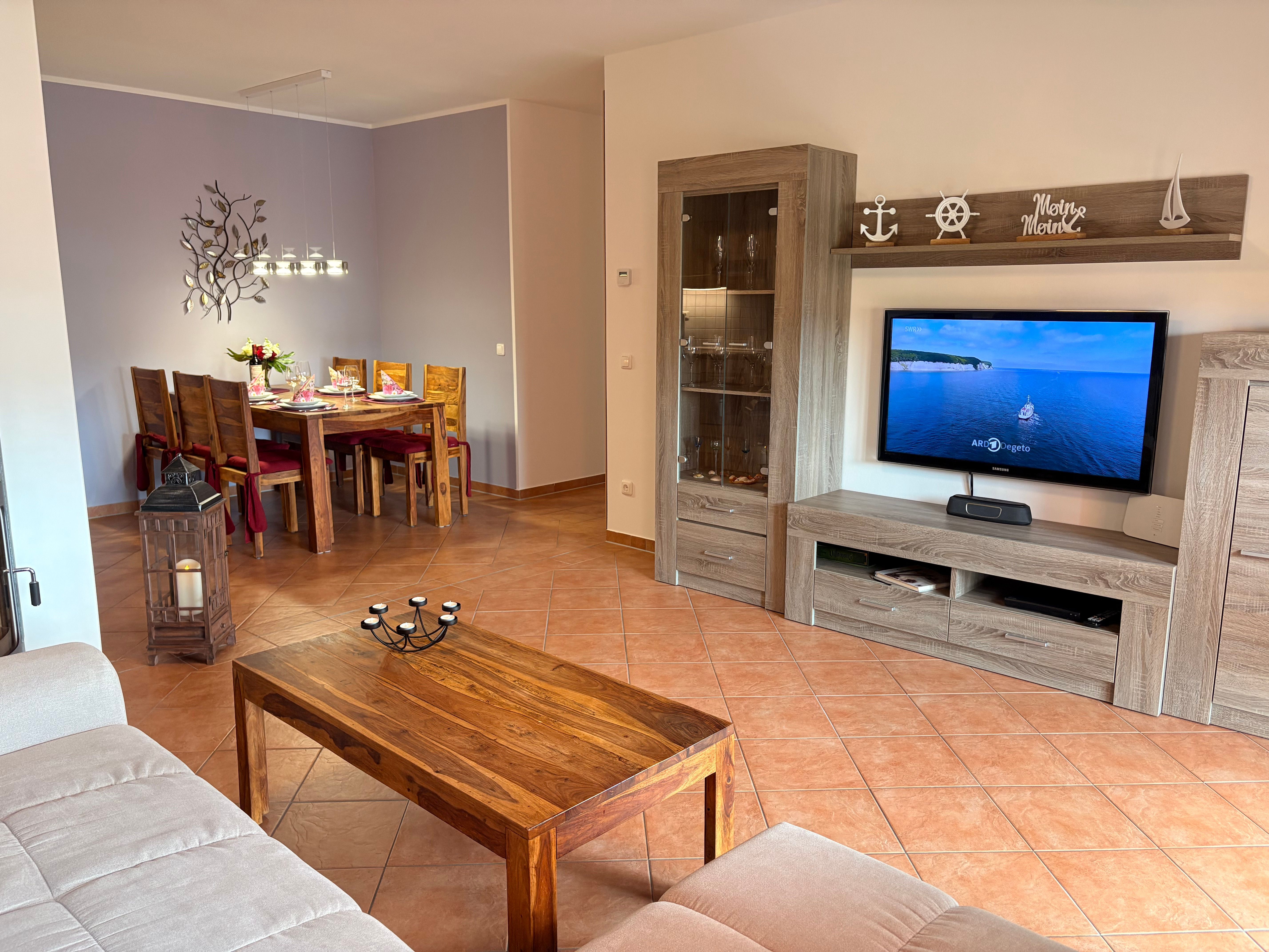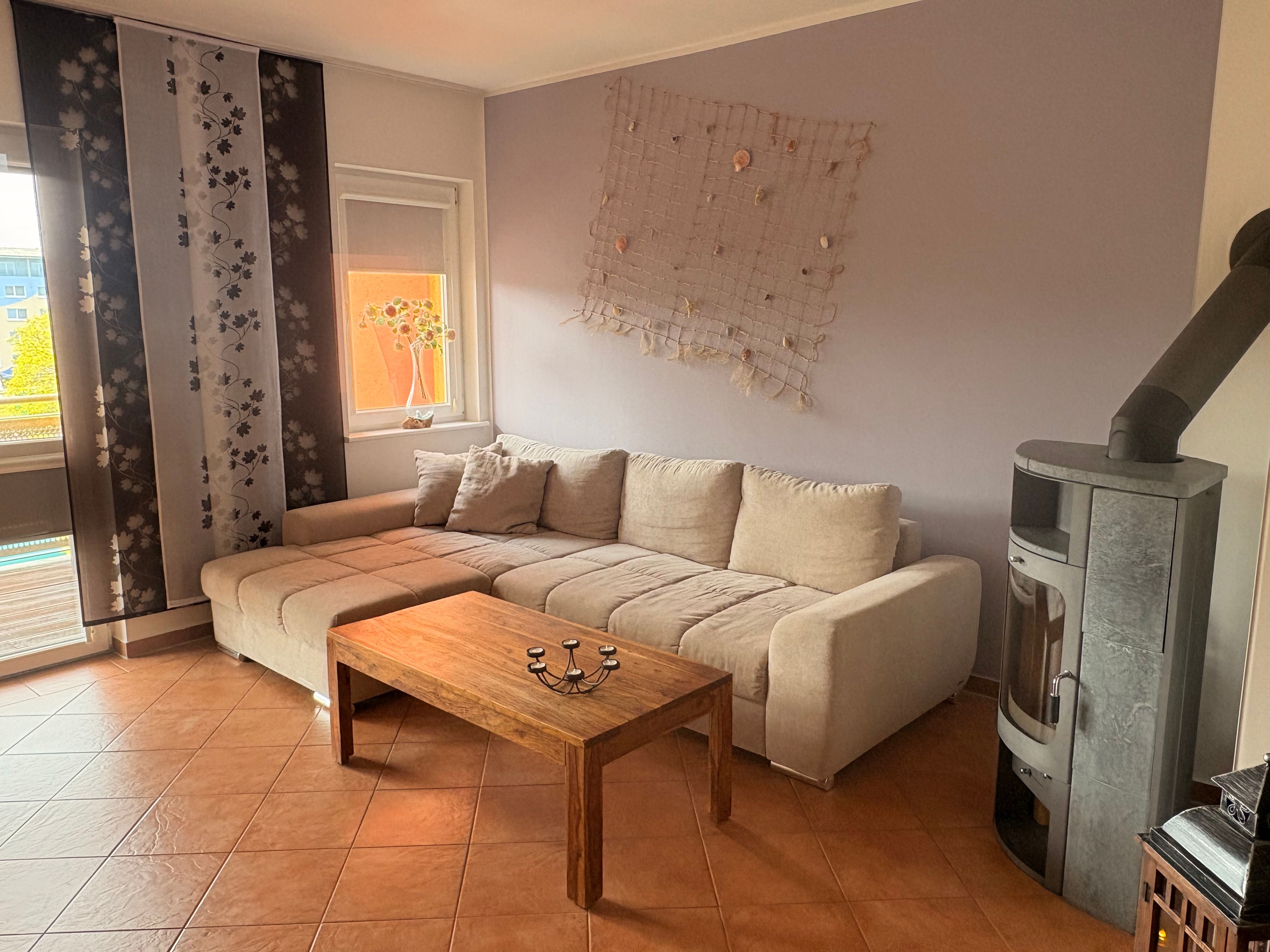 Die 3-Zimmerwohnung ist ausgestattet mit Fußbodenheizung, einer schönen Küche und LCD-TV mit HD-Sendern, DVD Recorder und WLAN.