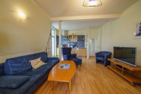 Die komfortable 45 qm große 2-Raum-Ferienwohnung befindet sich in der zweiten Etage der Villa Henriette. Die Wohnung verfügt über eine Veranda mit herrlichem Meerblick mit Essplatz, einen Schlafraum mit Doppelbett, eine kombinierten Wohn- und Schlafraum mit Doppelbettschlafcouch sowie über eine komplette Küchenzeile mit Geschirrspüler, Herd, Backofen, Kaffeemaschine, Geschirr etc.. Zur weiteren Ausstattung der Wohnung gehöhren TV, Radio + CD-Player, Telefon, Schranktresor. Bad mit Dusche und WC sowie Haarfön.