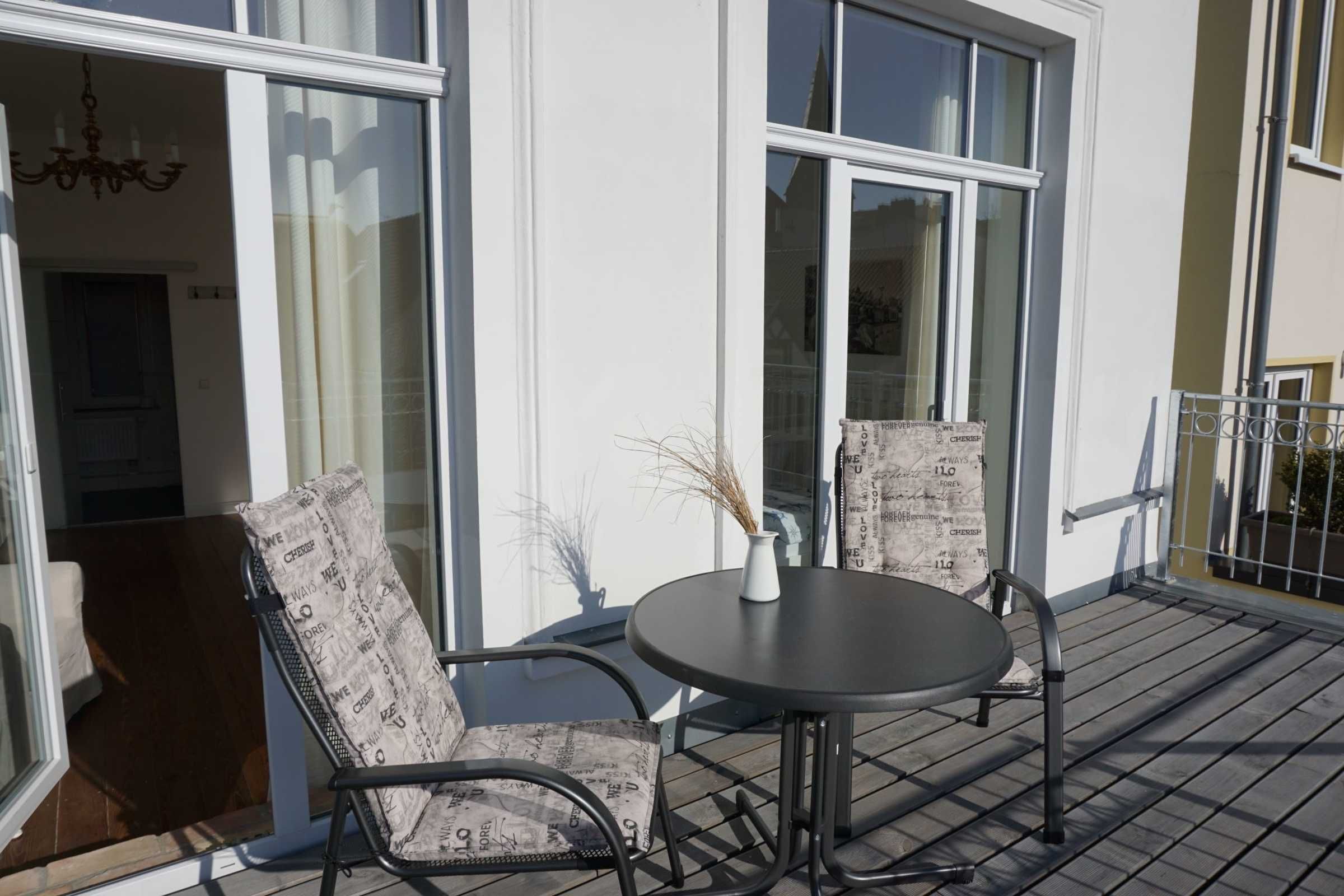 Unsere Villa in herrlicher Bäderachitektur bietet Ihnen alle Möglichkeiten für einen erholsamen Urlaub. Die liebevoll und maritim eingerichteten Ferienwohnungen bieten Ihnen Platz für bis zu 4 Personen. Unsere Wohnungen sind ausschließlich Nichtrauchern vorbehalten. Gerne stellen wir Eltern mit Kleinkindern einen Hochstuhl und ein Reisebett gegen Aufpreis zur Verfügung. Die Fahrräder können Sie im Hofgang (abgeschlossen) oder im Keller unterbringen. Vor dem Haus steht ein Fahrradständer zur Verfügung.