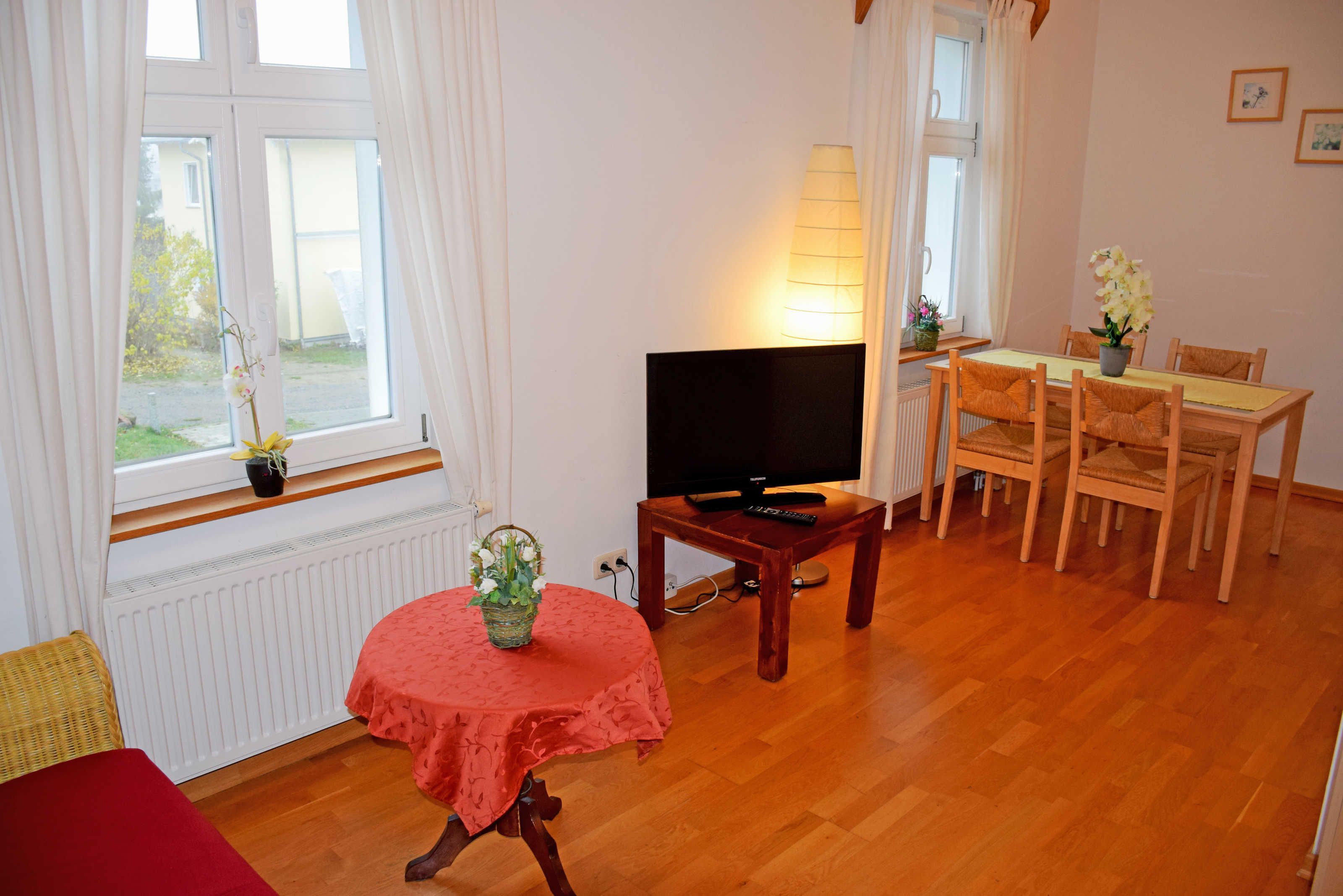 Wohnfläche ca. 35 m² für max. 2 Personen sowie einem Kleinkind bis 3 Jahren. Sollten Sie ein KInderreisebett wünschen, bitten wir Sie dieses bei Buchung mit anzugeben. Der Wohnraum ist ausgestattet mit ausziehbarer Couch, Couchtisch, Flat-TV 32, Esstisch mit 4 Stühlen.