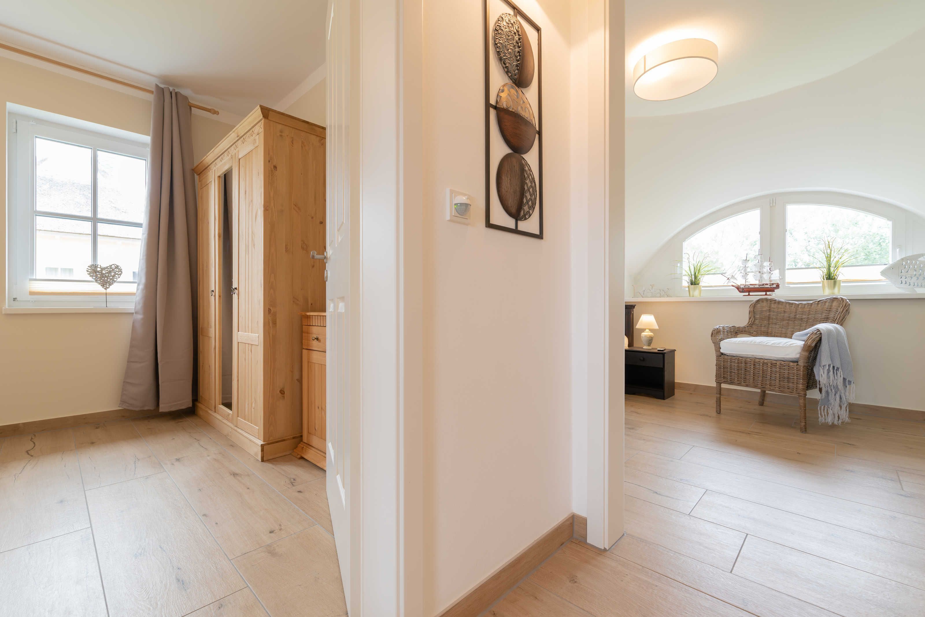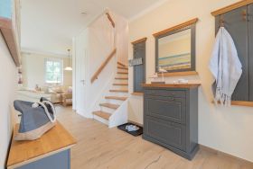 In dieser idyllischen Landschaft ca. 300 m Luftlinie zum Ostseestrand befindet sich das „Hus Strandweg“, angelehnt an die alte Bauweise wurde das Haus 2016 mit einem klassischen Reetdach fertiggestellt. Die familienfreundliche Doppelhaushälfte bietet alles was man sich für einen gemütlichen Urlaub wünscht. Die angelegte Rasenfläche bietet genug Platz zum Sonnen oder div. Ballspiele. Angrenzend an die Rasenfläche lädt die Terrasse inkl. Gartenmöbel zu einem ausgedehnten Frühstück ein. Das Reetdachhaus erstreckt sich über zwei Etagen inkl. Fußbodenheizung in allen Räumen. Die hell und freundlich eingerichtete Doppelhaushälfte bietet Platz für max. vier Erwachsene und zwei Kinder bis max. 3 Jahre.