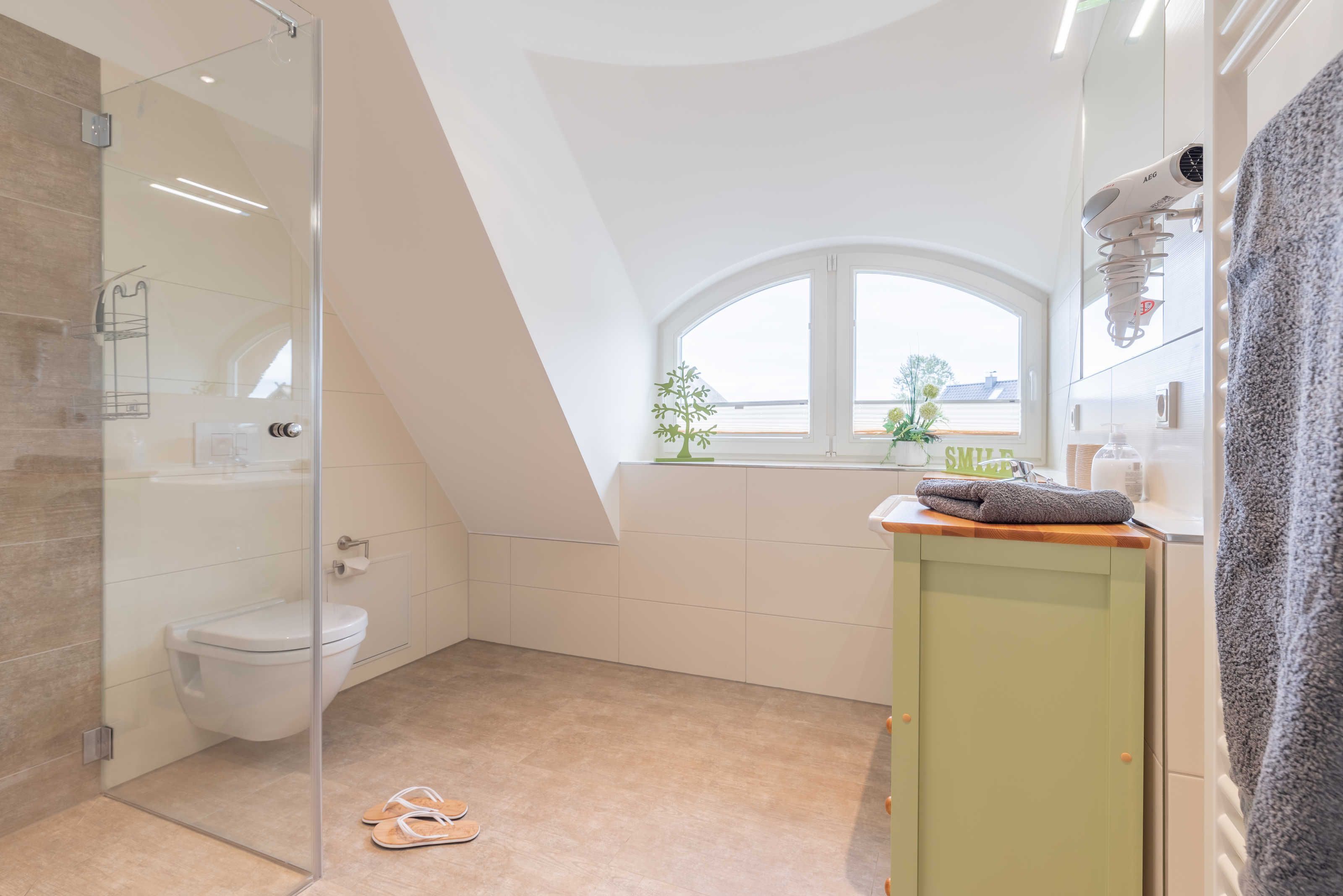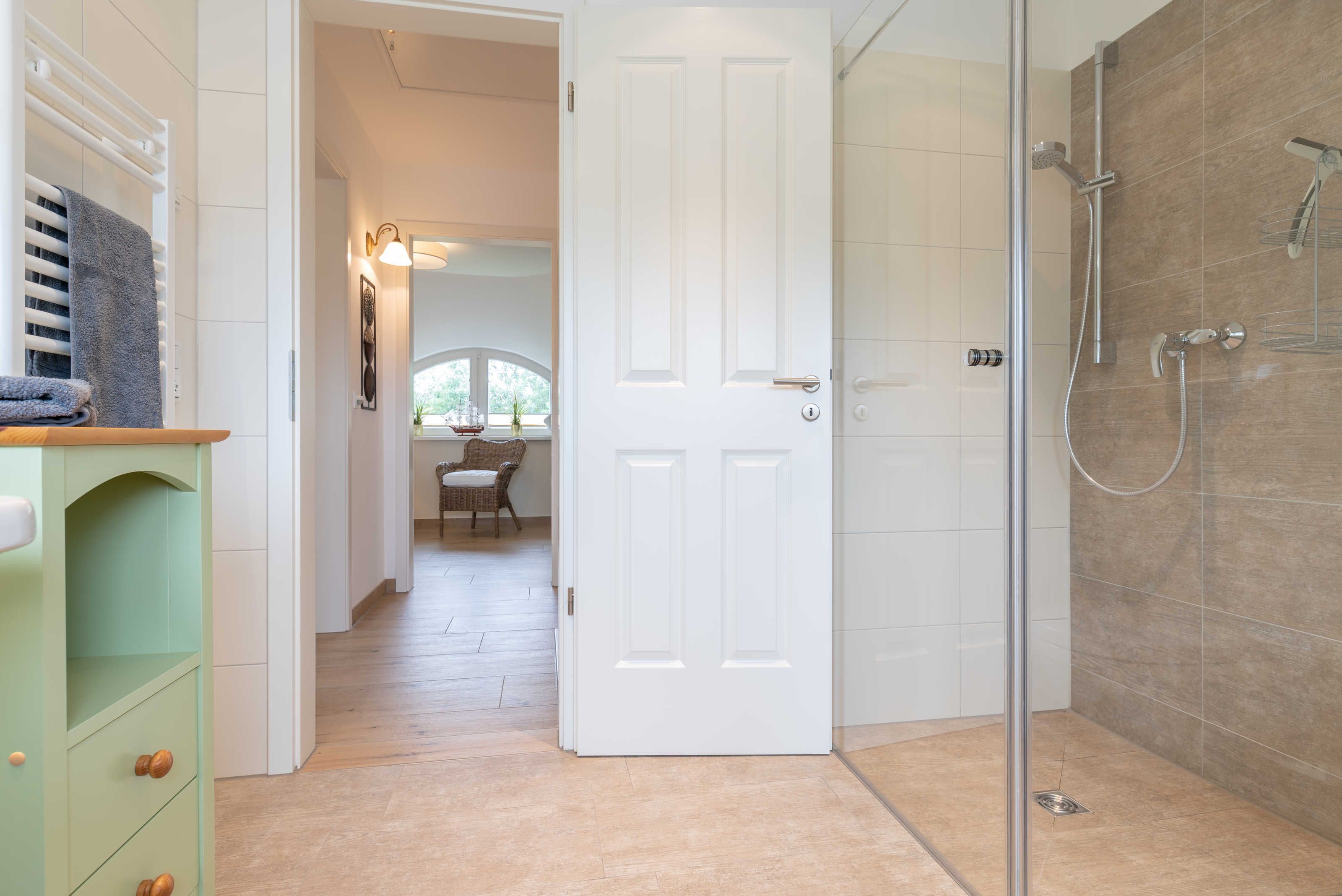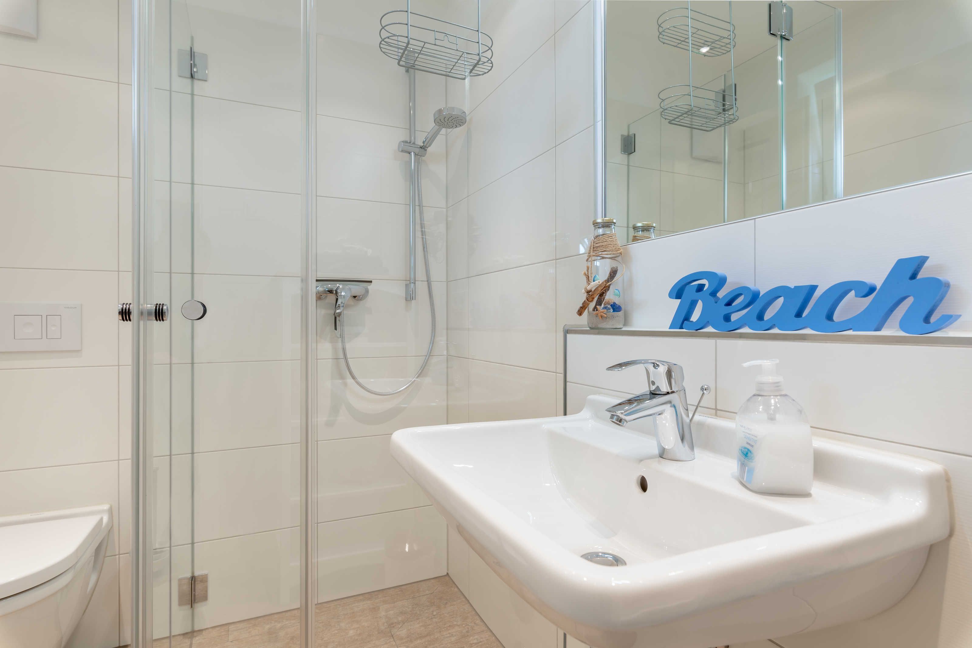 Im Erdgeschoss befindet sich das erste Bad inkl. Dusche, Föhn und Handtuchtrockner.