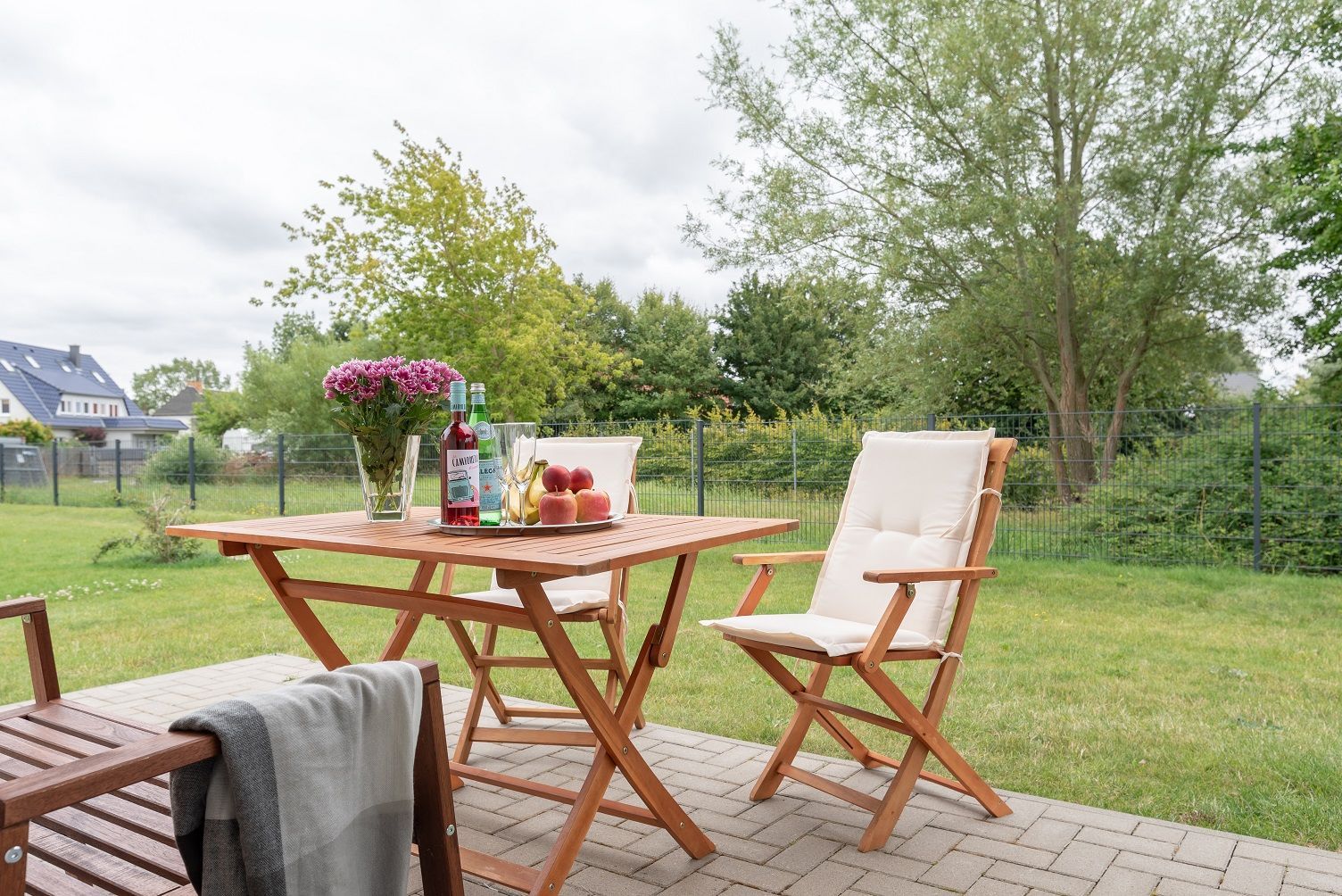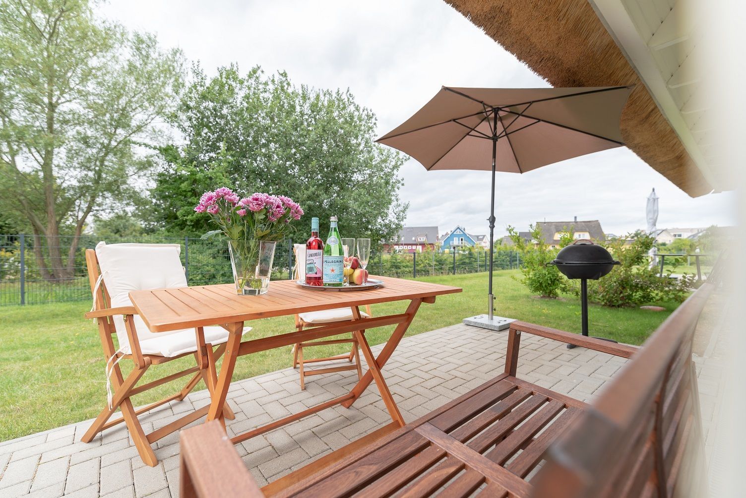 In dieser idyllischen Landschaft ca. 300 m Luftlinie zum Ostseestrand befindet sich das Hus Strandweg, angelehnt an die alte Bauweise wurde das Haus 2016 mit einem klassischen Reetdach fertiggestellt. Die familienfreundliche Doppelhaushälfte bietet alles was man sich für einen gemütlichen Urlaub wünscht. Die angelegte Rasenfläche bietet genug Platz zum Sonnen oder div. Ballspiele. Angrenzend an die Rasenfläche lädt die Terrasse inkl. Gartenmöbel zu einem ausgedehnten Frühstück ein. Das Reetdachhaus erstreckt sich über zwei Etagen inkl. Fußbodenheizung in allen Räumen. Die hell und freundlich eingerichtete Doppelhaushälfte bietet Platz für max. vier Erwachsene und zwei Kinder bis max. 3 Jahre.