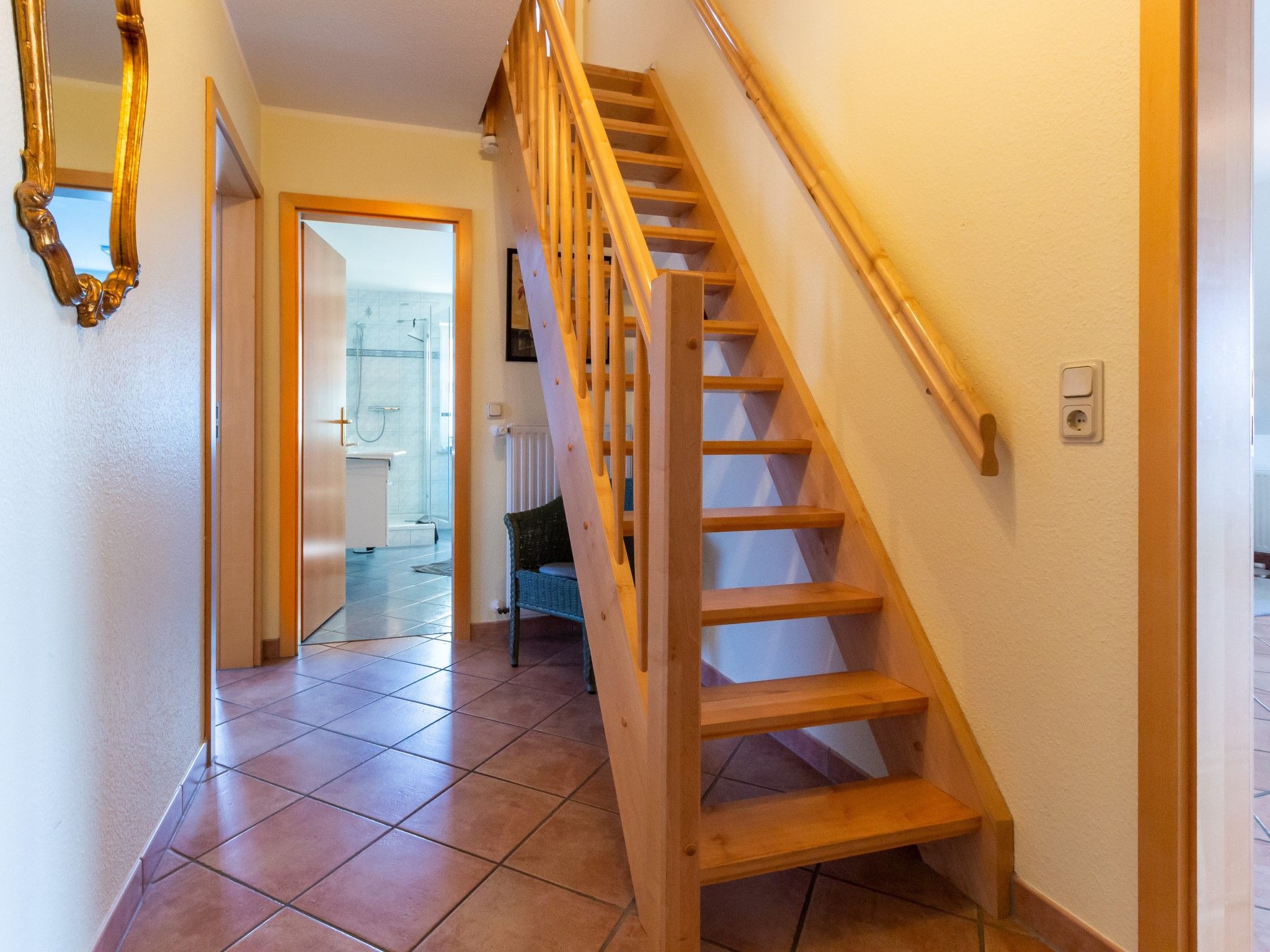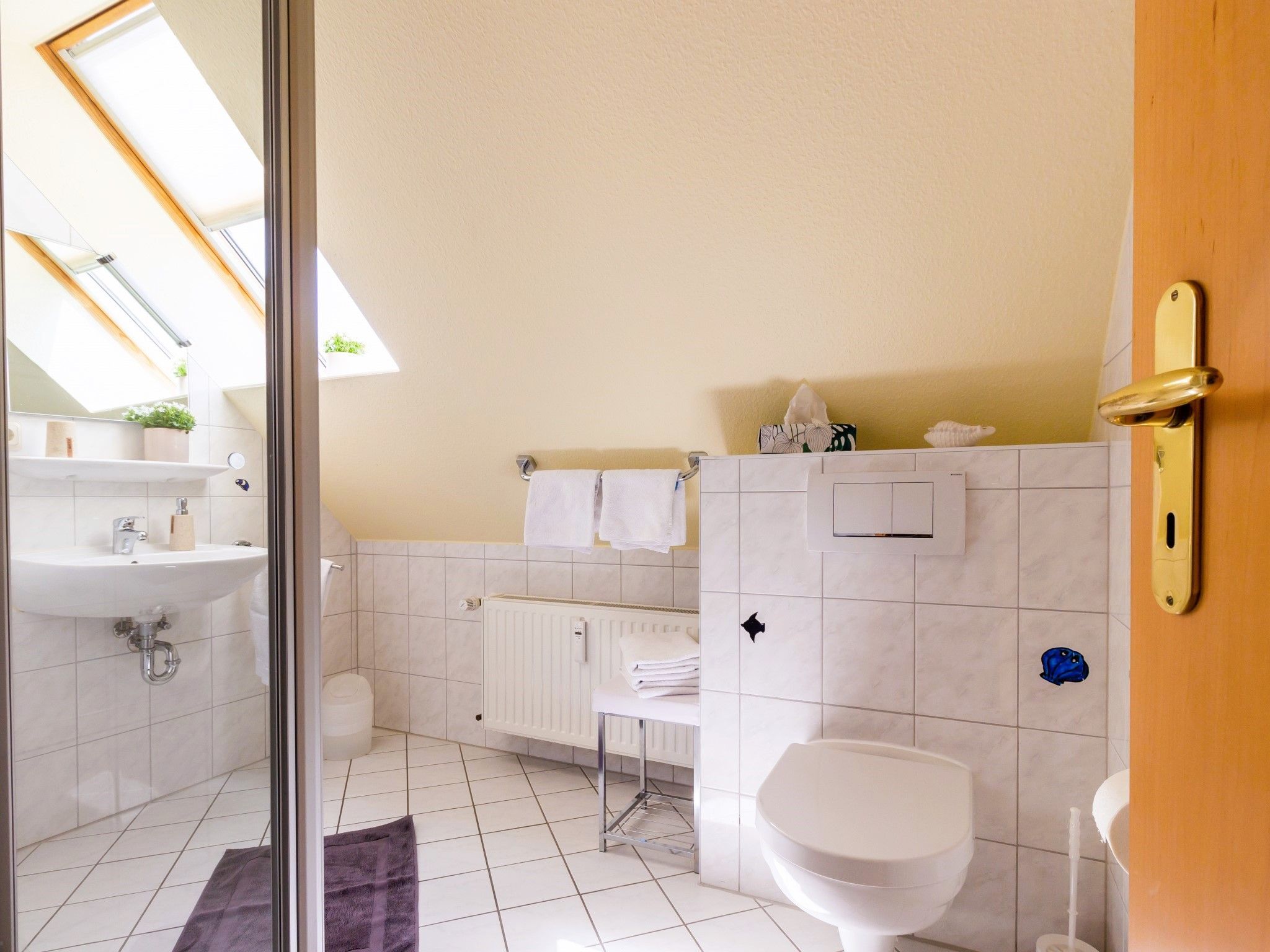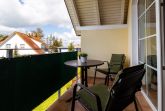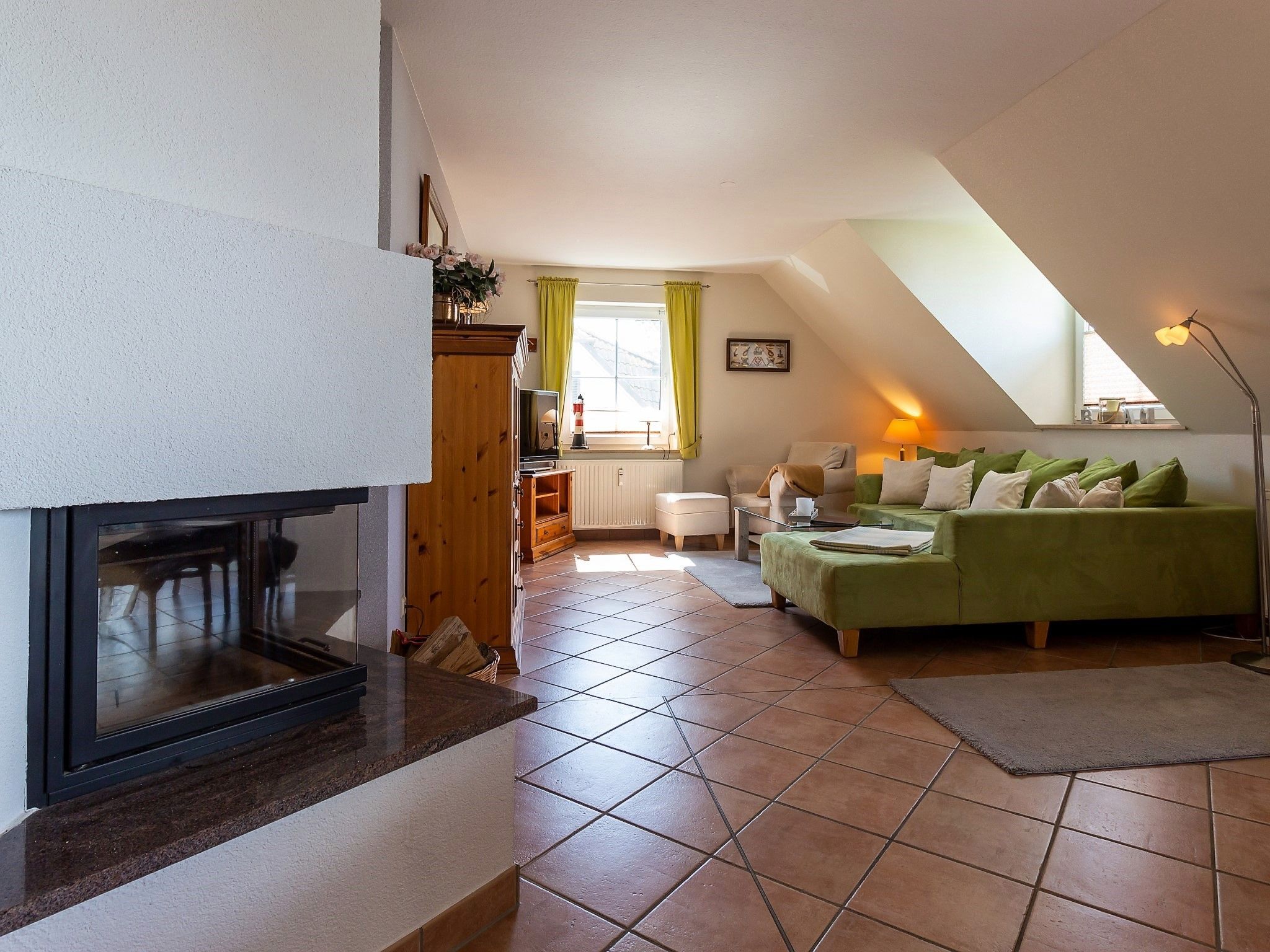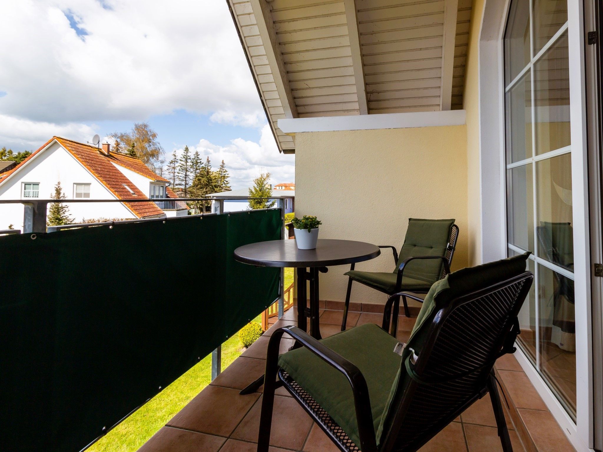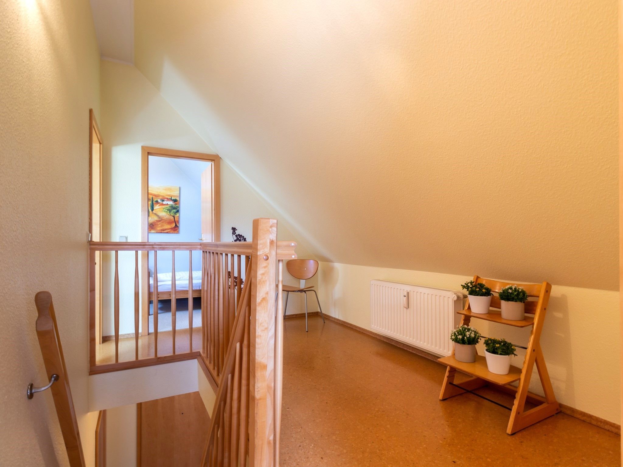 Die Wohnung ist eine Maisonette-Wohnung und besitzt 3 Schlafzimmer (2xDoppelbett, 2 Einzelbetten) und 2 komfortable Duschbäder und hat eine Größe von 115 qm. Ein Wohnzimmer und eine Küche in offener Bauweise mit offenem Kamin. Auf dem windgeschützten Südwestbalkon mit Blick zum Bodden können Sie den Tag genießen. Ausgestattet ist der Balkon mit einem Tisch, 4 Stühlen, Markise sowie einen Hochlehnstuhl mit Liegemöglichkeit. Auf der ersten Ebene sind alle Räume gefliest bis auf das Schlafzimmer, dort liegt Korkboden. In der zweiten Ebene ist das Bad gefliest, ein Schlafzimmer hat Teppichboden, der Flur und das größere Schlafzimmer haben ebenfalls Korkböden. Alle Schlafzimmer können verdunkelt werden. Fliegengitter sind zur Giebelseite an allen Fenstern vorhanden. Die Wohnung hat eine Zentralheizung und im Bad in der ersten Ebene ist ein großer Handtuchheizkörper sowie eine Fußbodenheizung. Einen Kfz-Stellplatz befindet sich unter dem Carport.