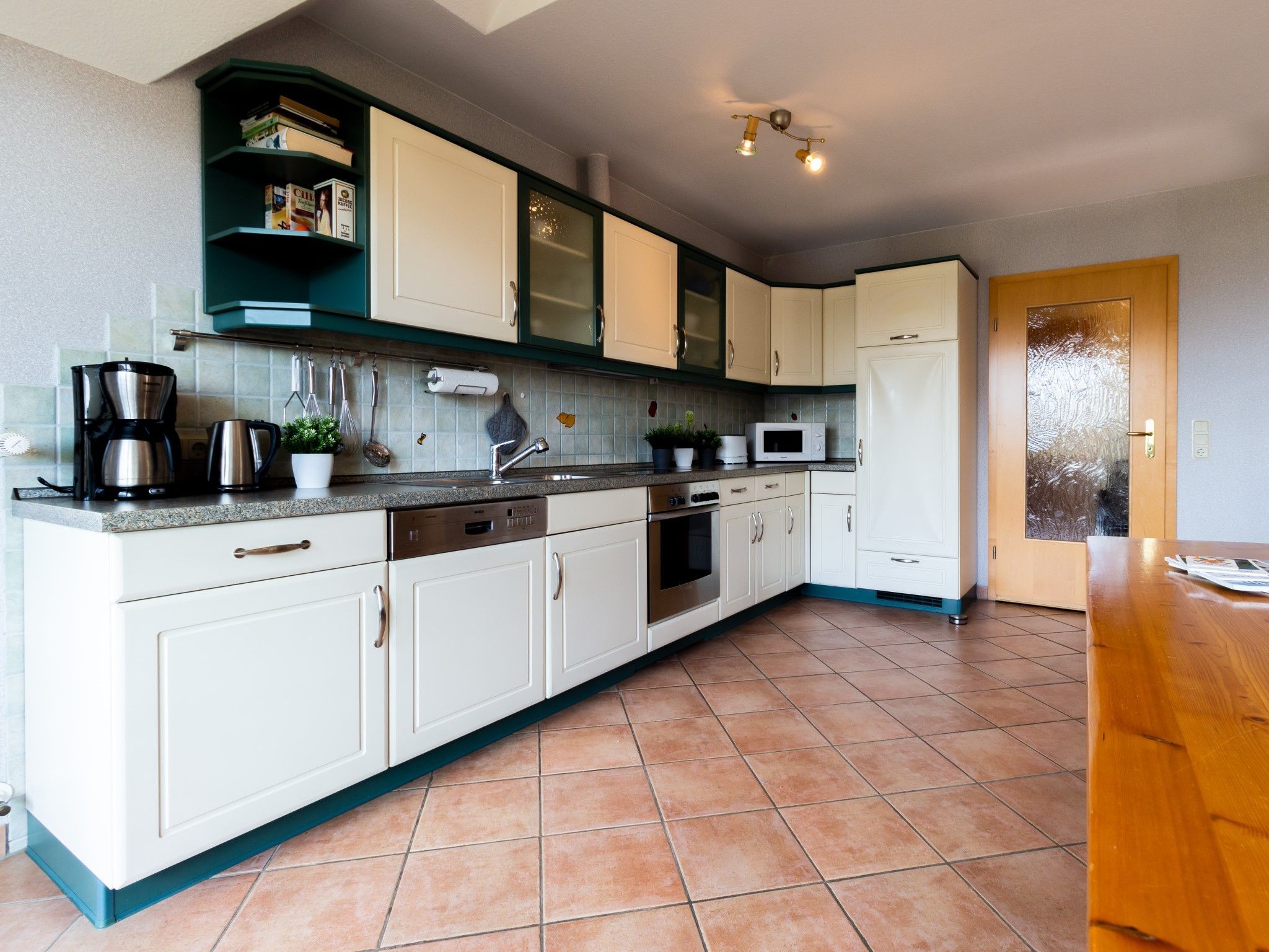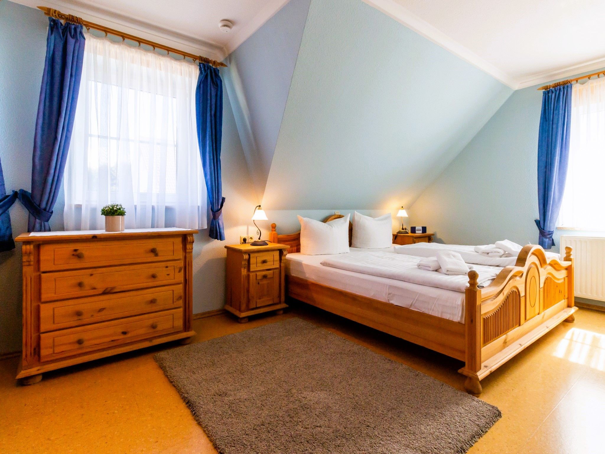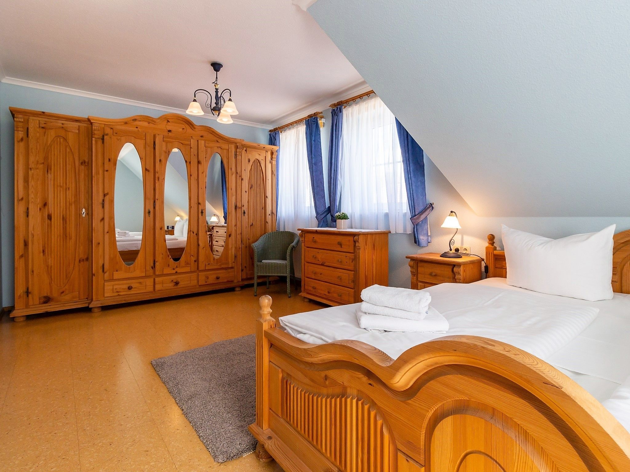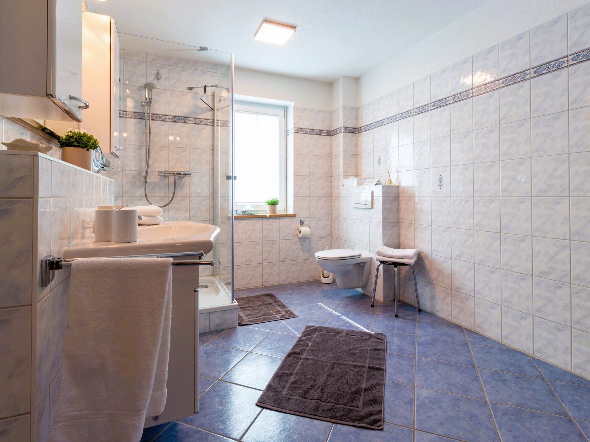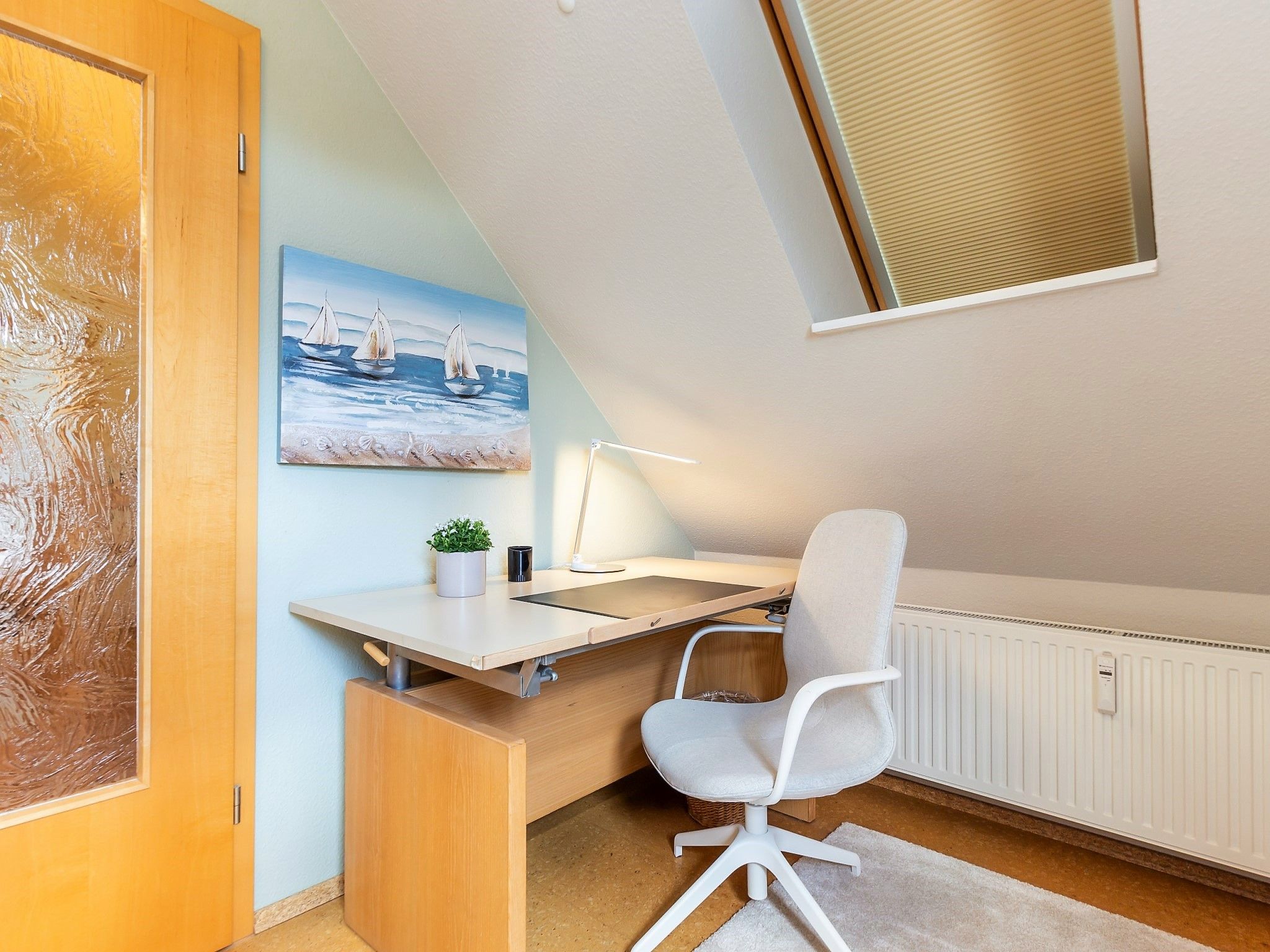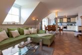 Die Wohnung ist eine Maisonette-Wohnung und besitzt 3 Schlafzimmer (2xDoppelbett, 2 Einzelbetten) und 2 komfortable Duschbäder und hat eine Größe von 115 qm. Ein Wohnzimmer und eine Küche in offener Bauweise mit offenem Kamin. Auf dem windgeschützten Südwestbalkon mit Blick zum Bodden können Sie den Tag genießen. Ausgestattet ist der Balkon mit einem Tisch, 4 Stühlen, Markise sowie einen Hochlehnstuhl mit Liegemöglichkeit. Auf der ersten Ebene sind alle Räume gefliest bis auf das Schlafzimmer, dort liegt Korkboden. In der zweiten Ebene ist das Bad gefliest, ein Schlafzimmer hat Teppichboden, der Flur und das größere Schlafzimmer haben ebenfalls Korkböden. Alle Schlafzimmer können verdunkelt werden. Fliegengitter sind zur Giebelseite an allen Fenstern vorhanden. Die Wohnung hat eine Zentralheizung und im Bad in der ersten Ebene ist ein großer Handtuchheizkörper sowie eine Fußbodenheizung. Einen Kfz-Stellplatz befindet sich unter dem Carport.