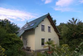 Das gemütliche Nichtraucher-Ferienhaus befindet sich auf dem abgeschlossenen Grundstück des Vermieters am Rande einer Kleingartengelände sowie am Waldrand des Seebad Ahlbeck. Es ist ca. 80 qm groß und erstreckt sich über zwei Etagen. Vor dem Ferienhaus befindet sich ein Pavillon (zur alleinigen Nutzung), der Eingangsbereich ist gepflastert. Dort können Sonnenliegen aufgestellt werden. Eine Grillmöglichkeit ist vorhanden.