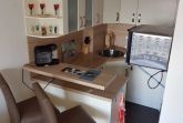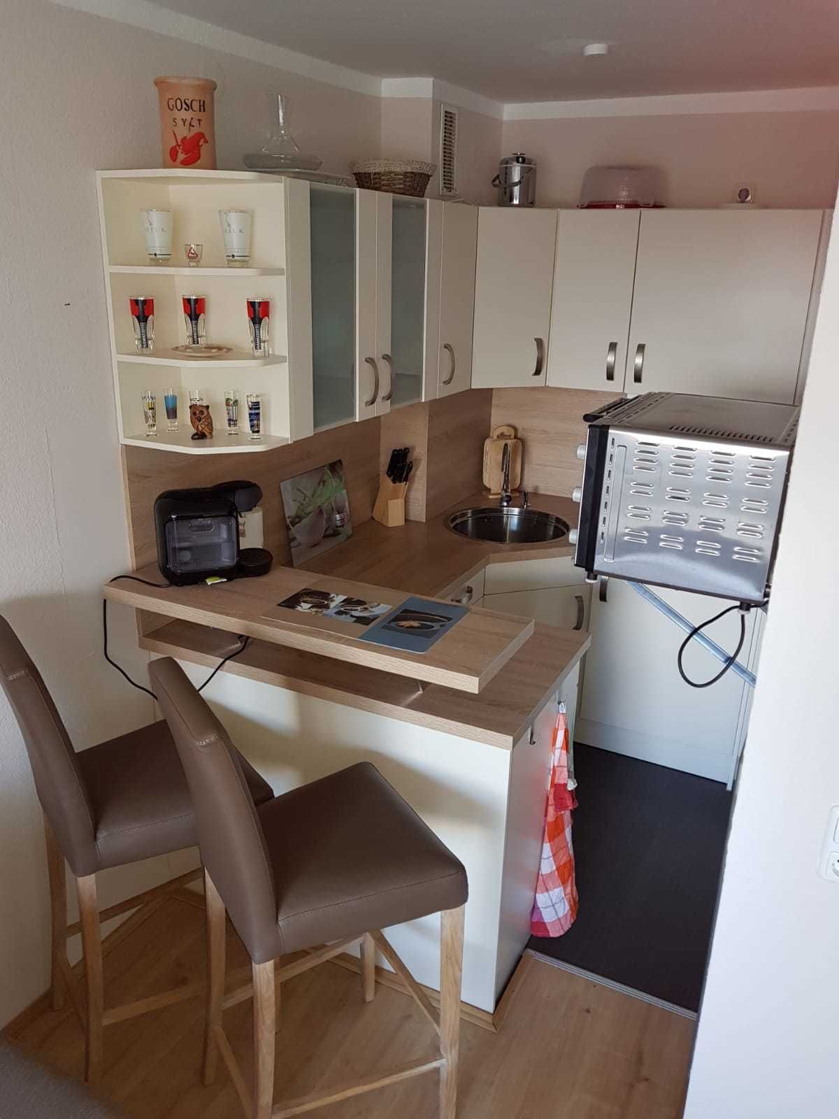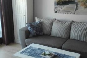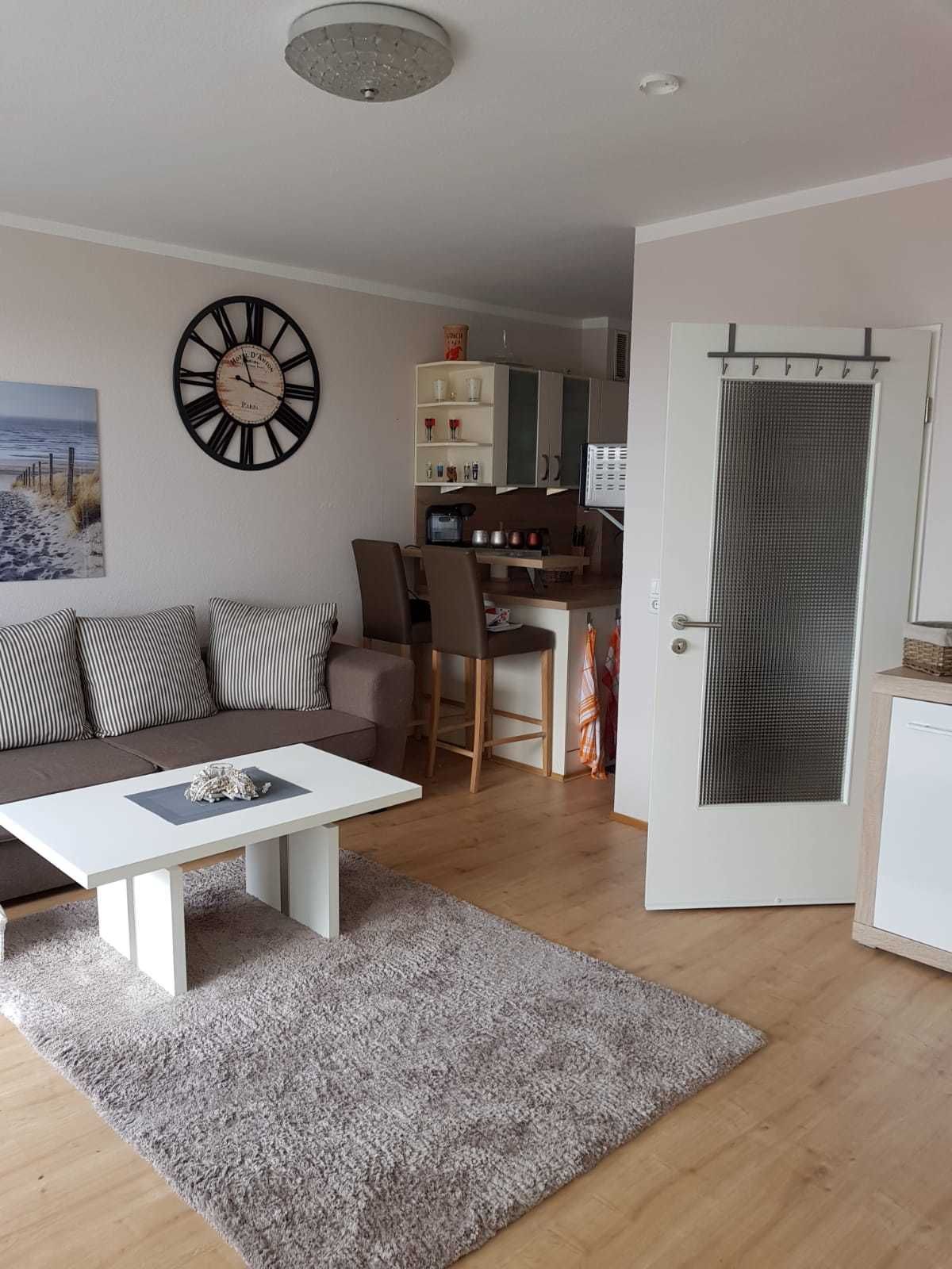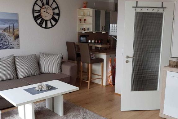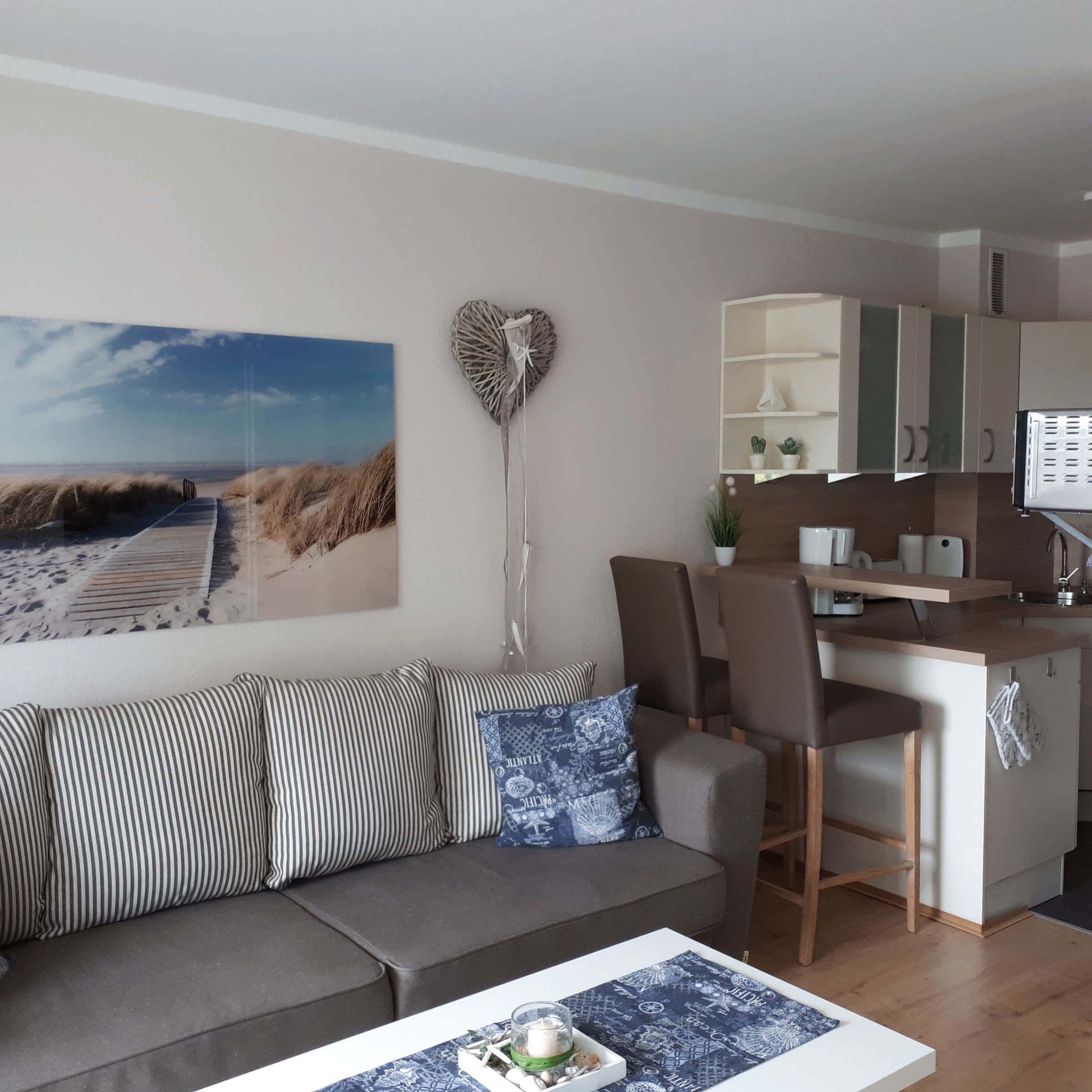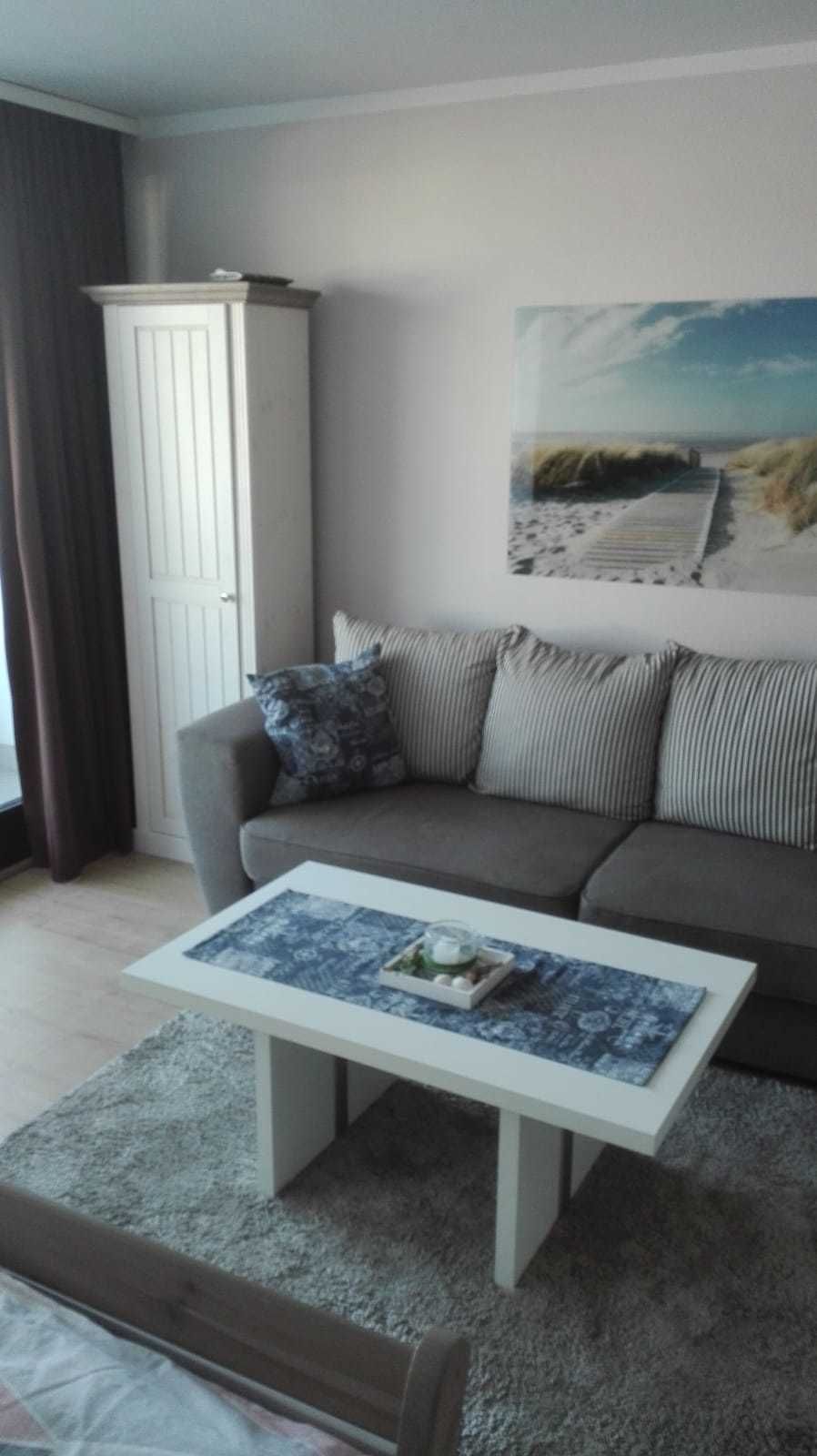 Die maritim eingerichtete 1-Zimmer-Wohnung bietet auf 34 m² alles, was für einen entspannten Urlaub zu Zweit an der Lübecker Bucht benötigt wird. Das kombinierte Wohn-/Schlafzimmer verfügt über ein französiches Bett (160 x 200 cm), ein Schlafsofa (160 x 200 cm), Flachbild-TV und eine kleine Küchenzeile mit Backofen. Die Morgensonne kann auf dem nach Nord-Osten ausgerichteten Balkon genossen werden. Wlan steht kostenlos zur Verfügung.