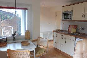 Die Ferienwohnung Düne befindet sich in einer ruhigen Nebenstraße auf einem gepflegten Privatgrundstück. In gemütlich eingerichteten 35m² können Sie Ihre Privatsphäre genießen.