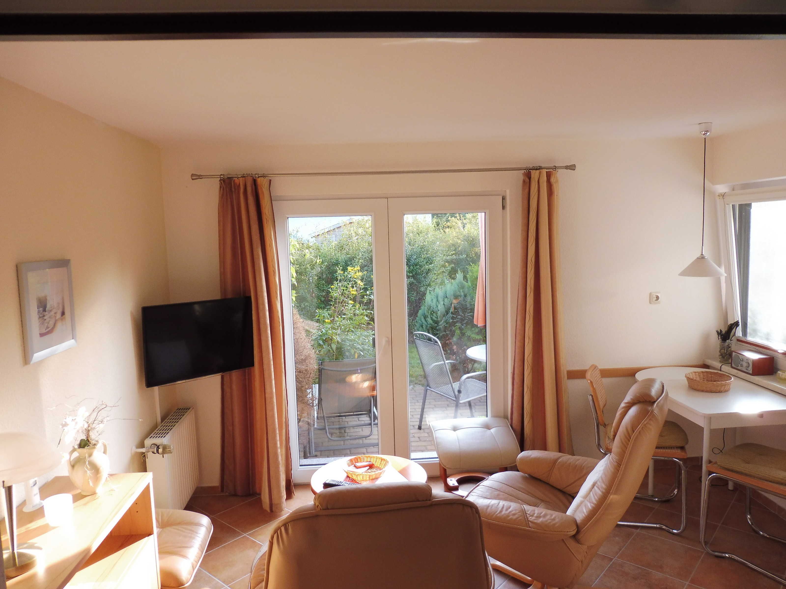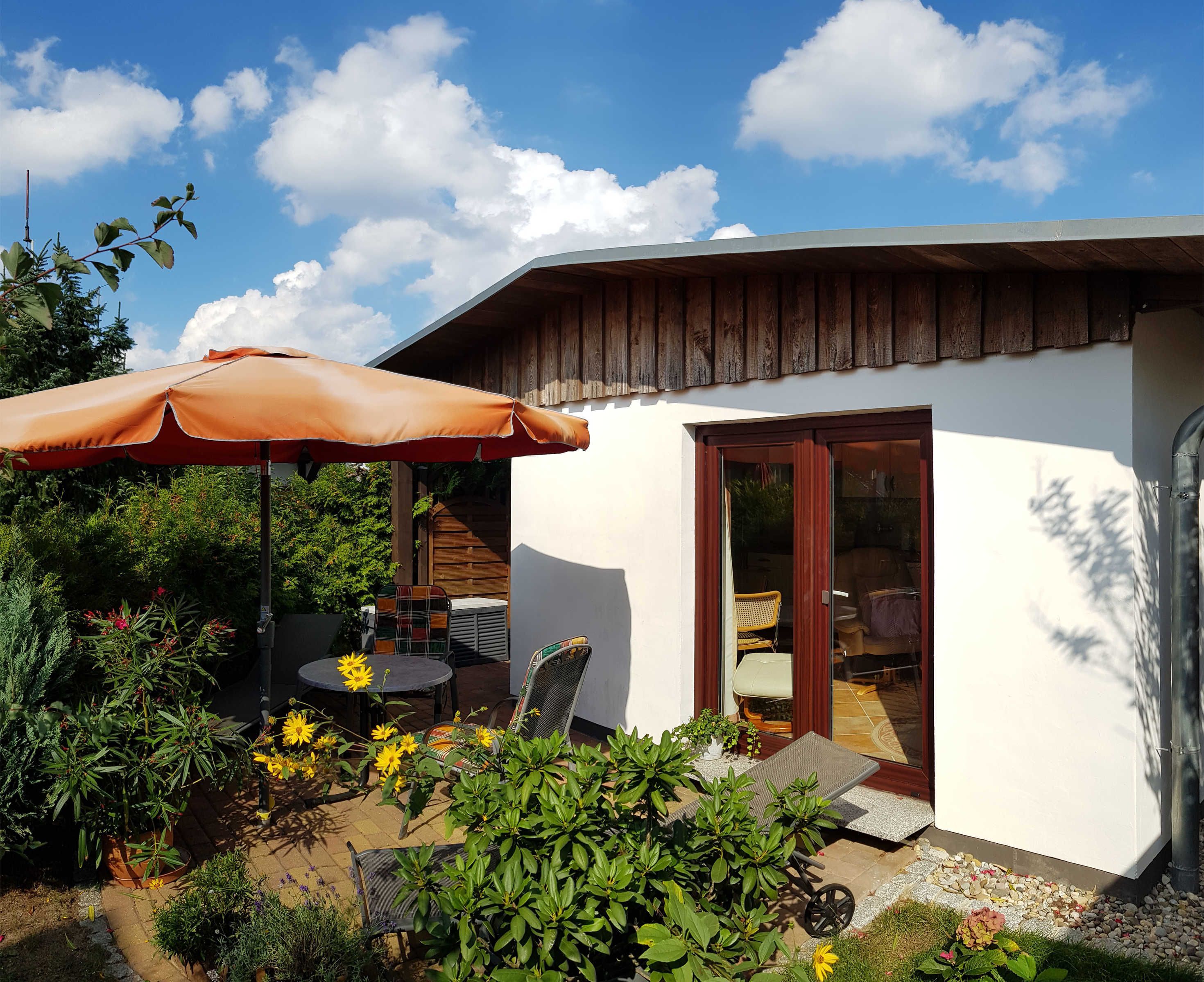 Es erwartet Sie eine harmonievoll gestaltete Ferienwohnung in ruhiger Lage. Für max. 2 Personen finden Sie bei uns einen Ort der Erholung. Der gemütliche Wohnraum mit Küchenzeile, Radio, TV und Wlan lädt zum Verweilen ein. Das Tageslichtbad ist mit Dusche, WC und Fön ausgestattet. Die Ruhe-Oase der Ferienwohnung ist das geräumige Schlafzimmer. Zum 35m² großen Objekt gehört eine sonnige von Blumen und Pflanzen umgebene Terrasse mit Gartenliegen. Für PKW und Fahrräder sind kostenfreie Stellplätze vorhanden.